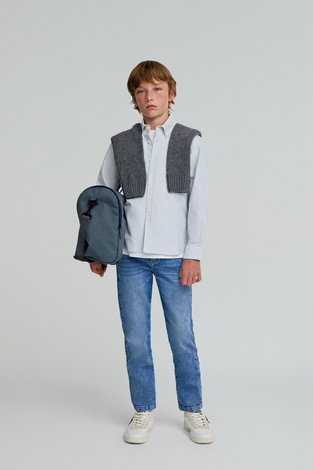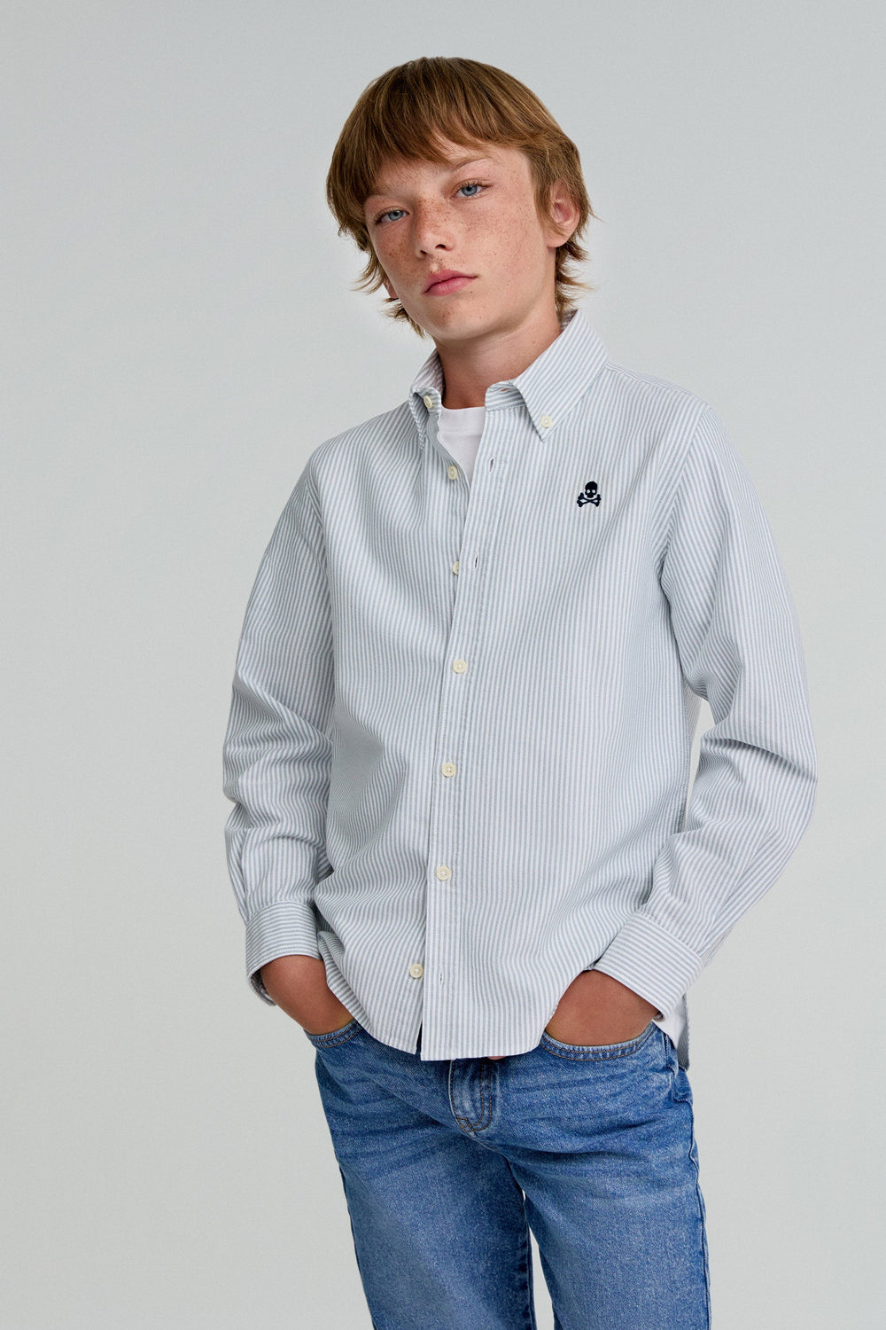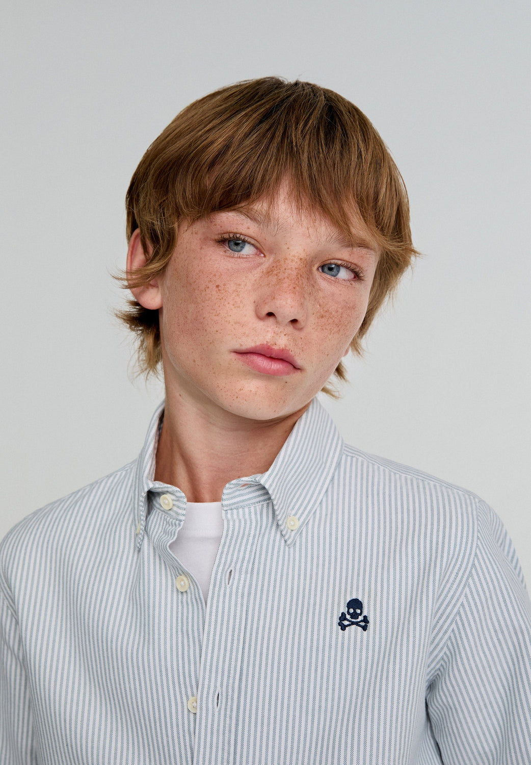 Oxford shirt with stripe print. Made of 100% cotton. Regular fit. Buttoned collar. Long sleeves with cuffs. Contrast embroidered skull.