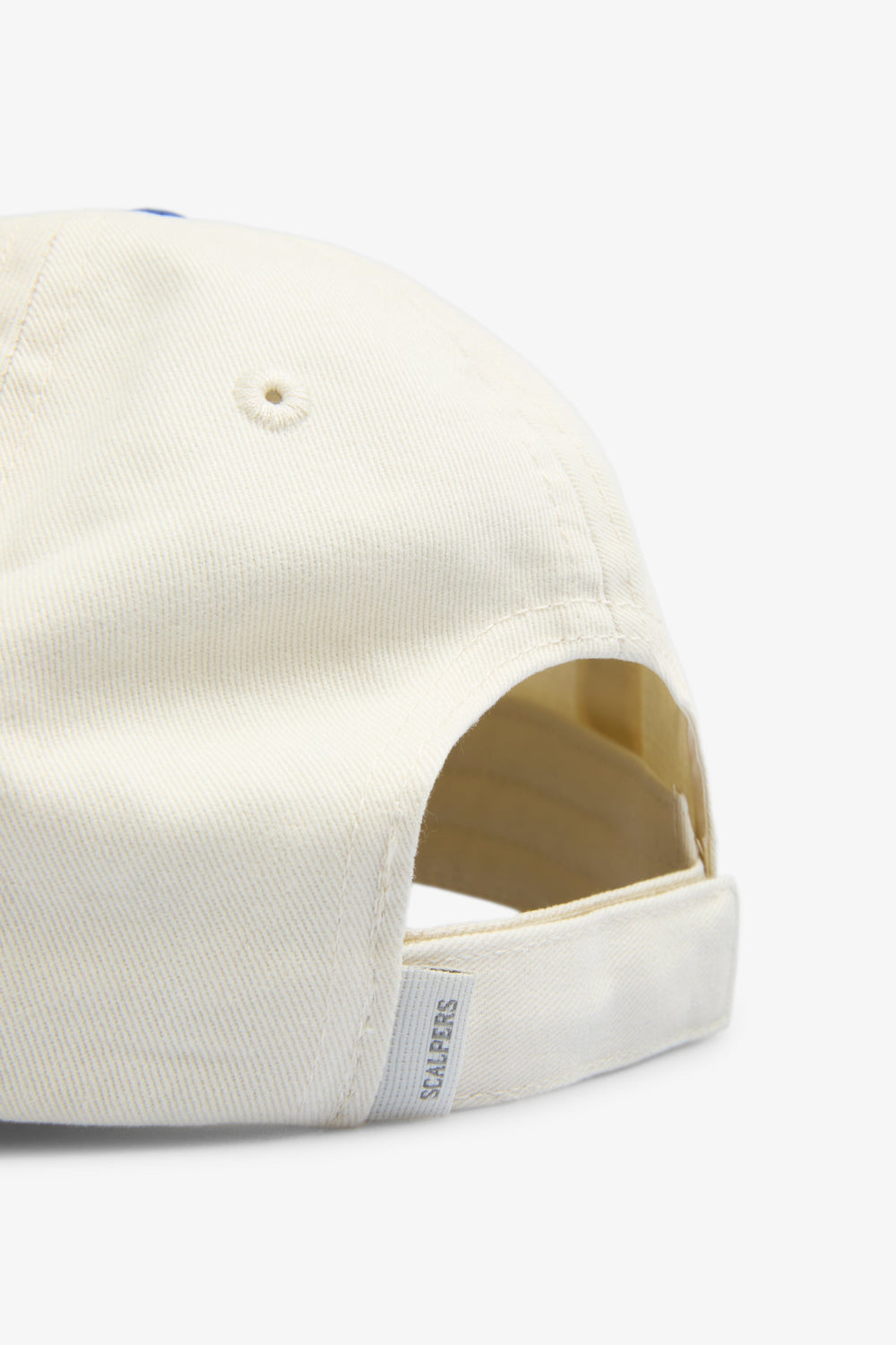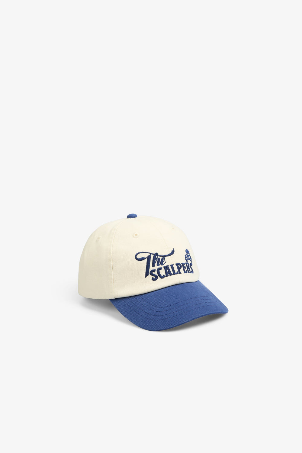 Two-tone cap made of a cotton blend. Adjustable back fastening and front embroidery.
