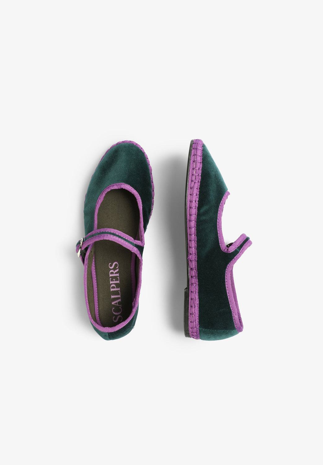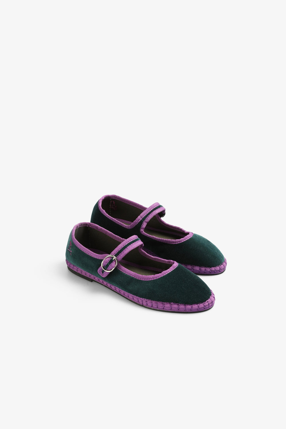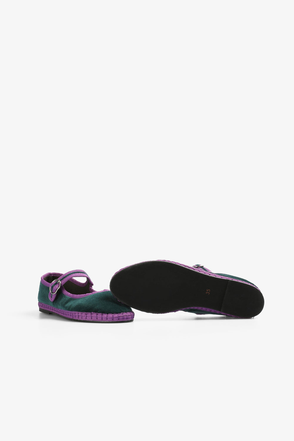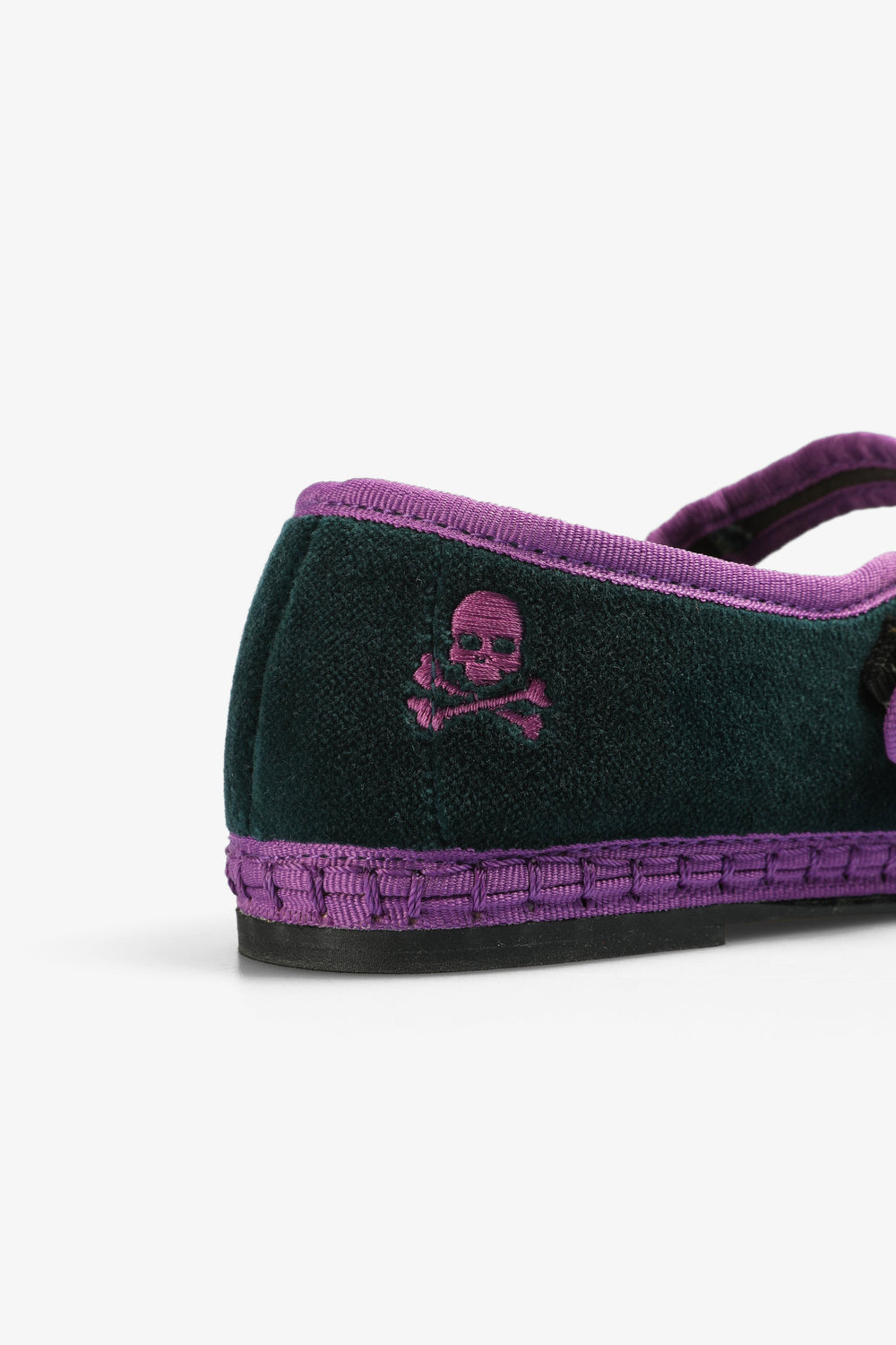 Ballet flats with skull detail. Made of 100% cotton. Strap and metal buckle fastening. Rubber sole