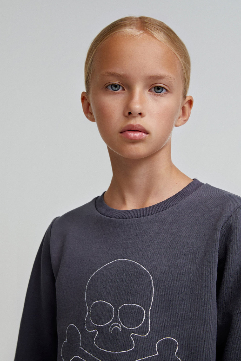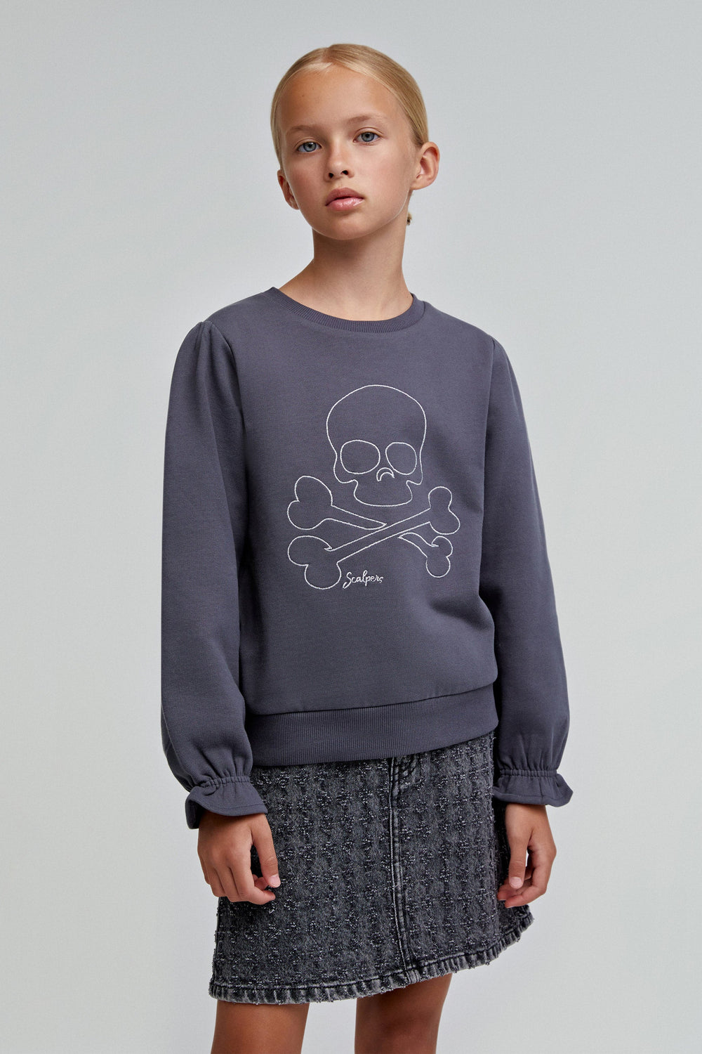 Sweatshirt with a skull print on the front. Made of 100% BCI cotton. Regular fit. Ribbed round neck. Long puff sleeves with gathered trim.