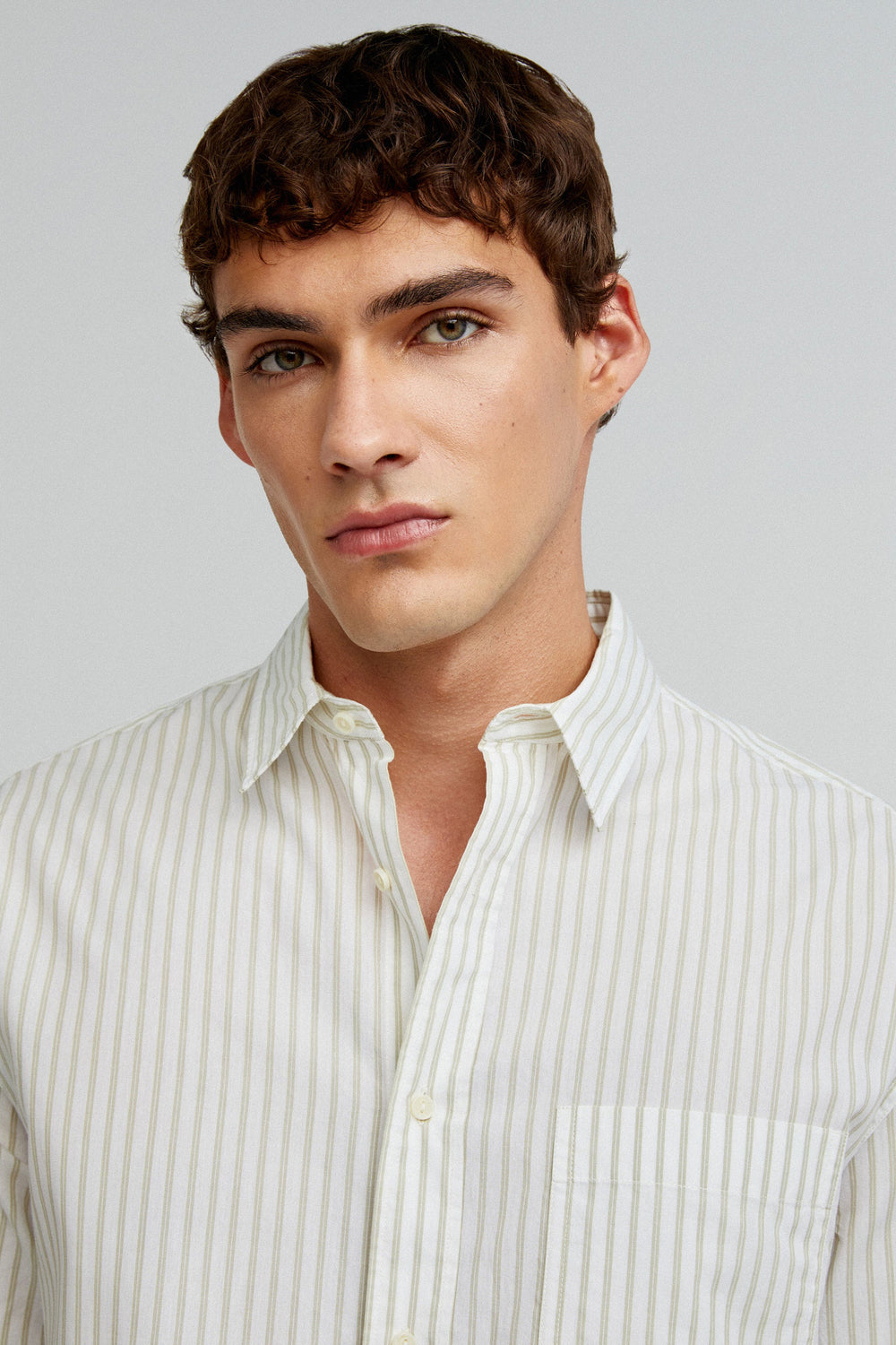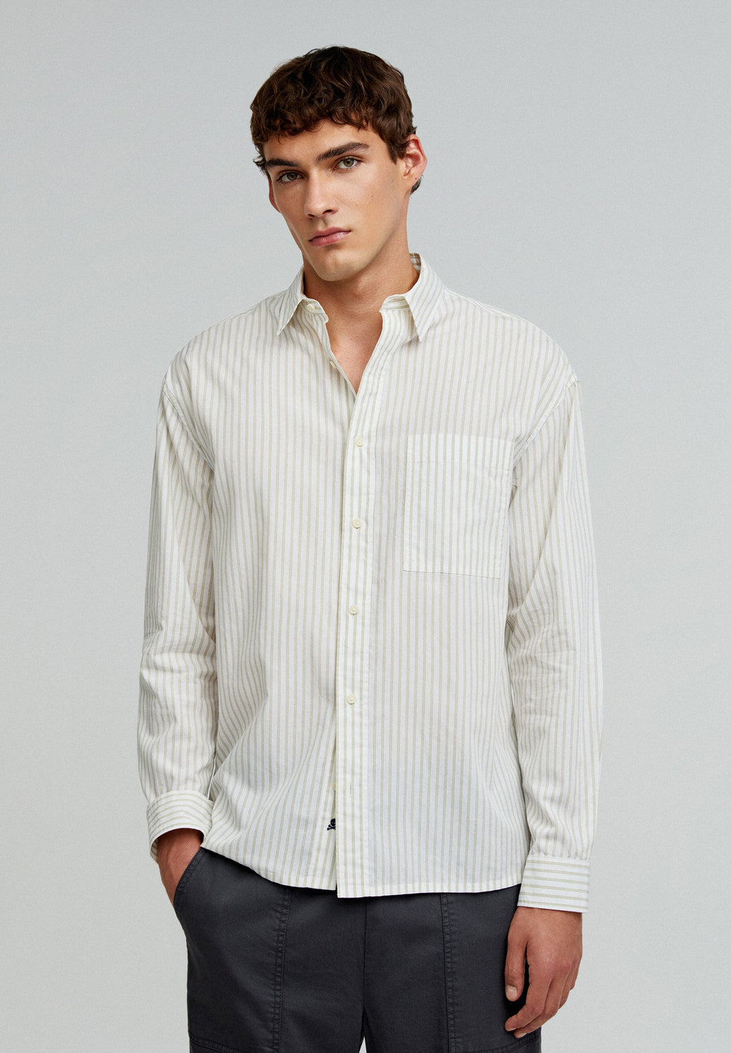 Shirt with double stripes made of 100% BCI cotton. Regular fit, classic collar and button fastening. Long sleeves with buttoned cuffs. Chest pocket and embroidered skull on hem.
