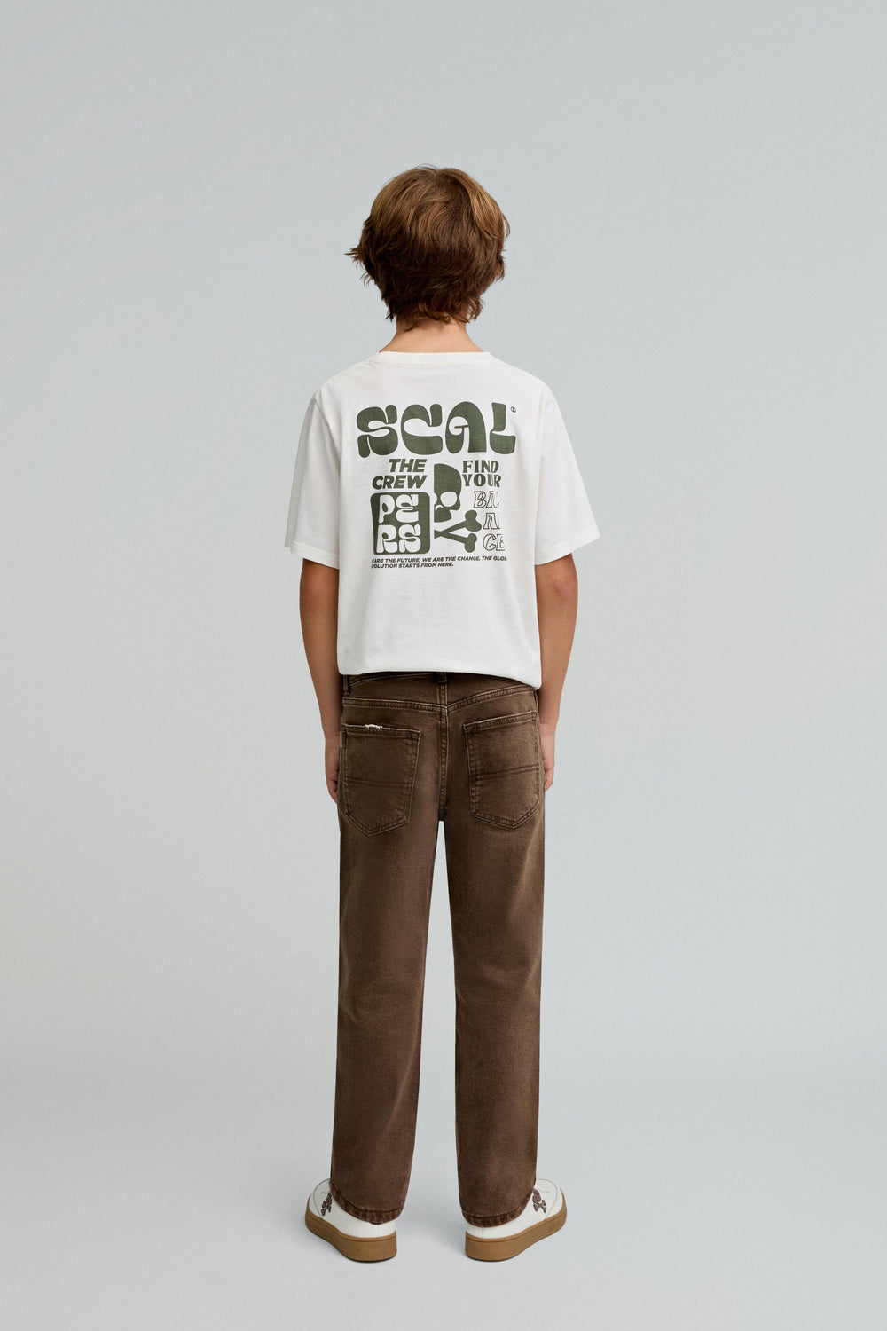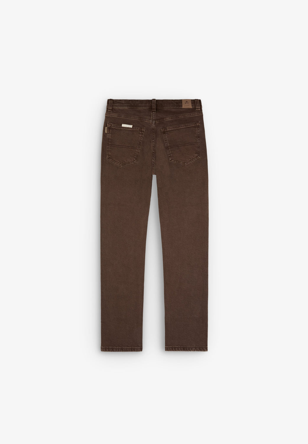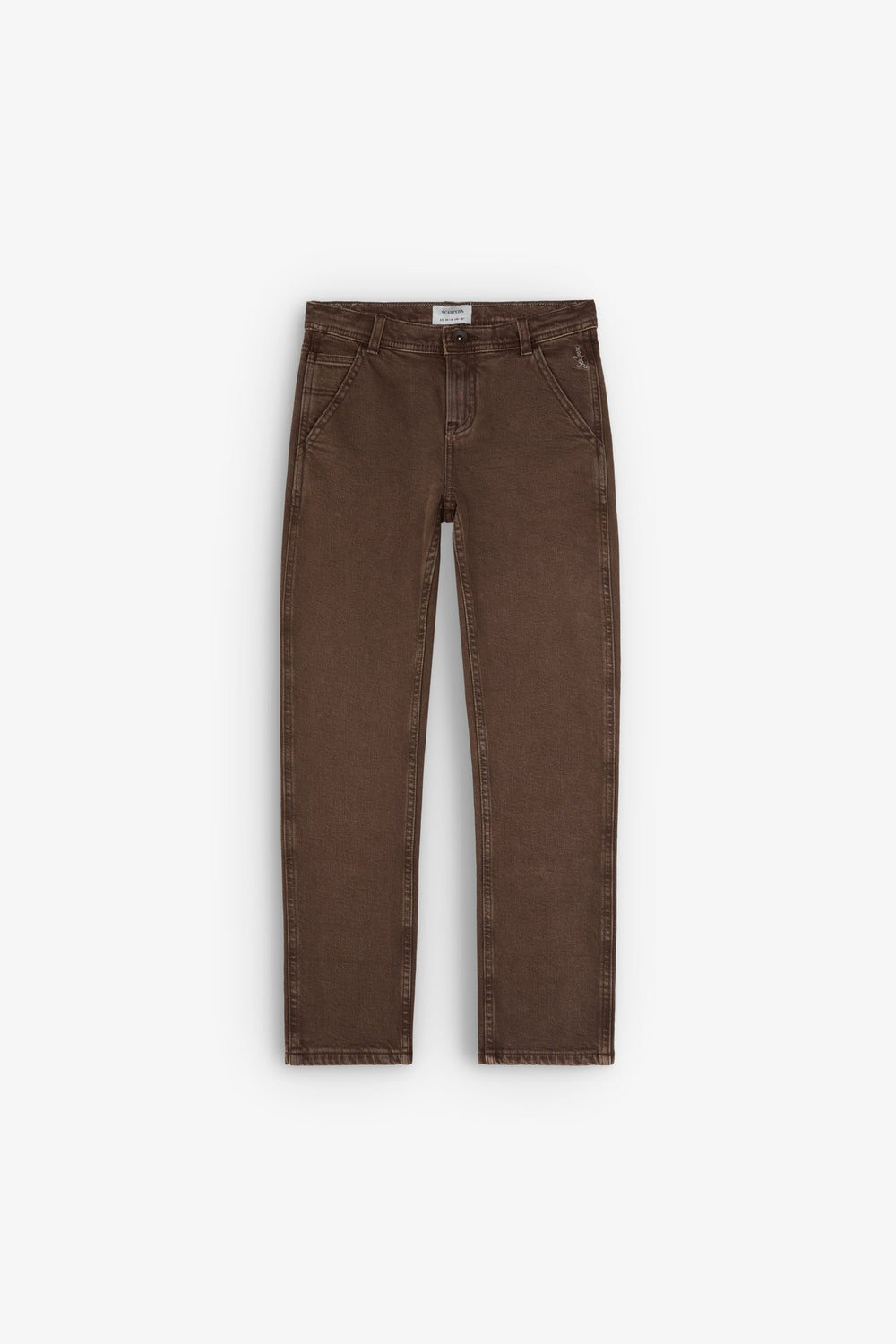 Straight faded trousers made of slightly stretch cotton fabric. Straight fit, button and zip fastening and front and back pockets.
