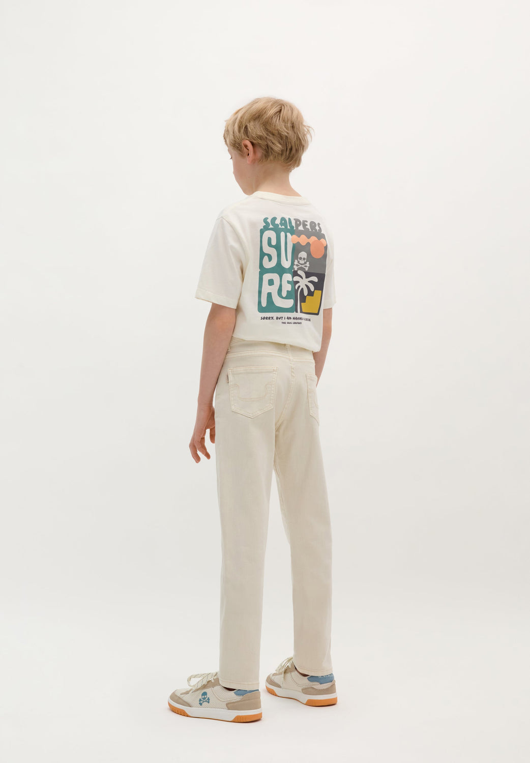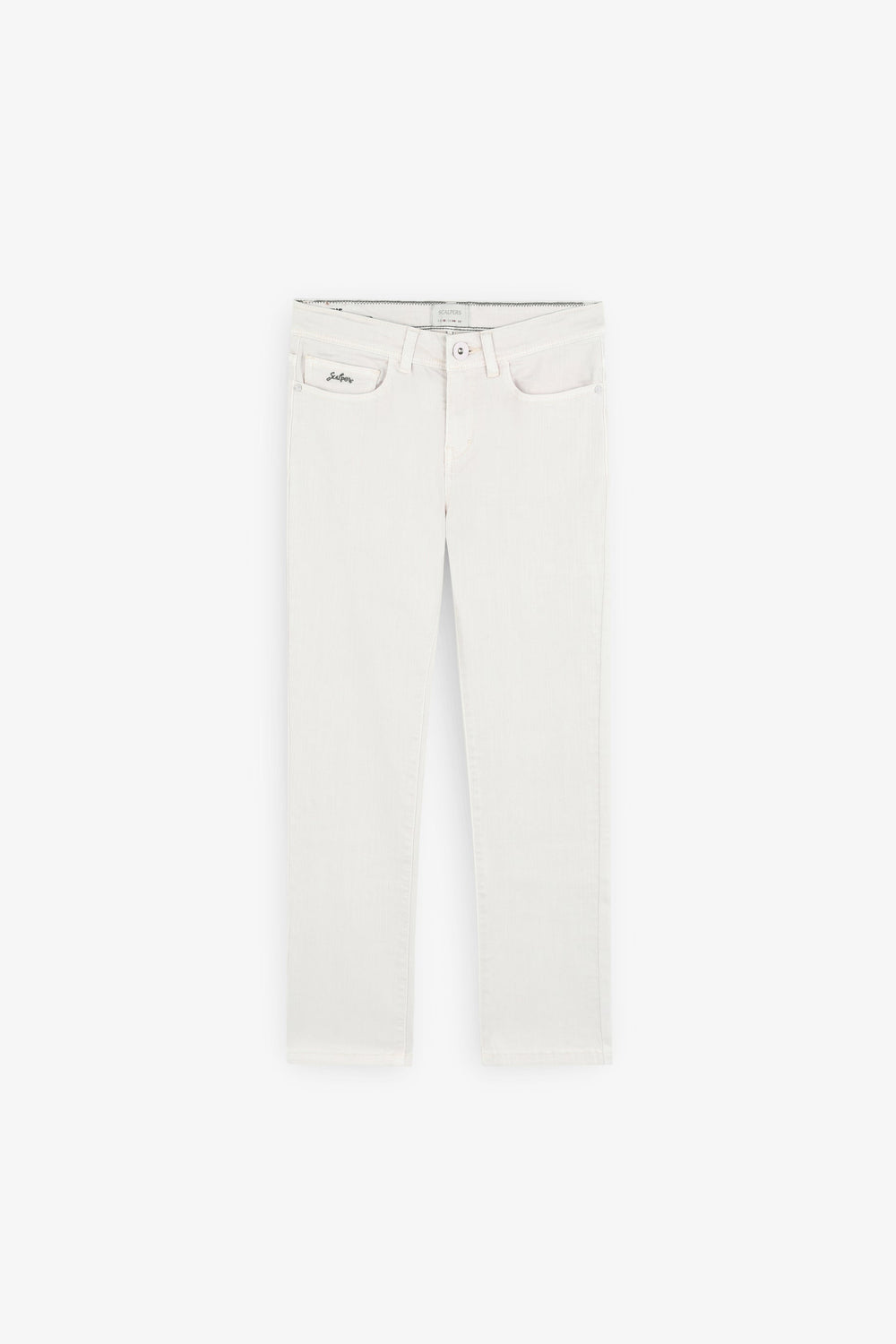 Trousers made of slightly stretchy cotton. Regular fit, button and zip fastening and side and back pockets. Belt loops at the waist and embroidered logo.