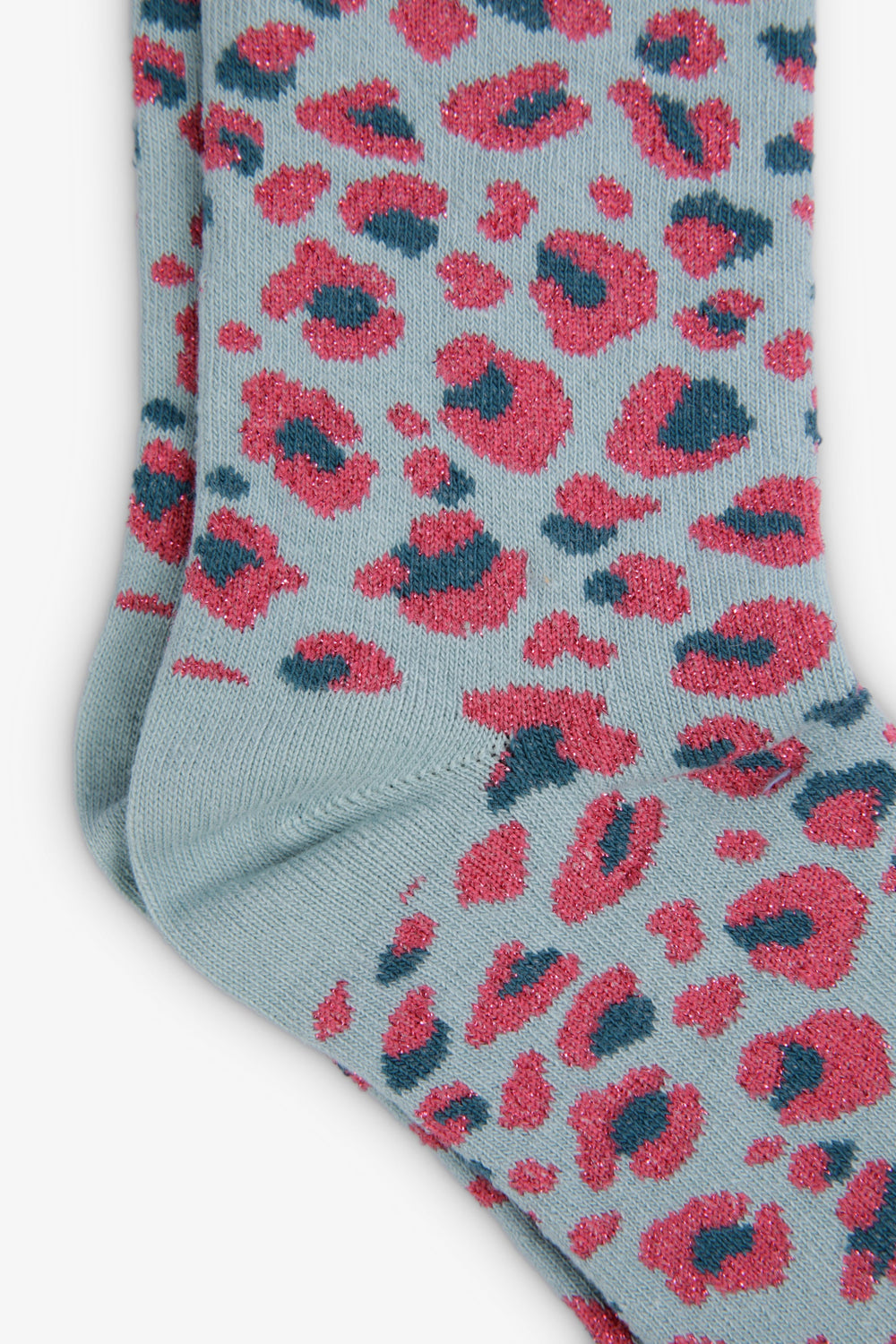 Animal print socks in slightly stretchy fabric with lurex. Mid-calf.