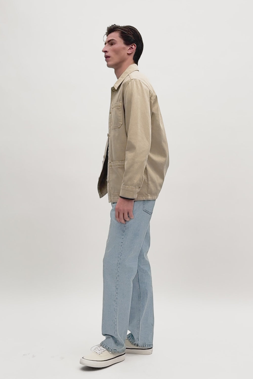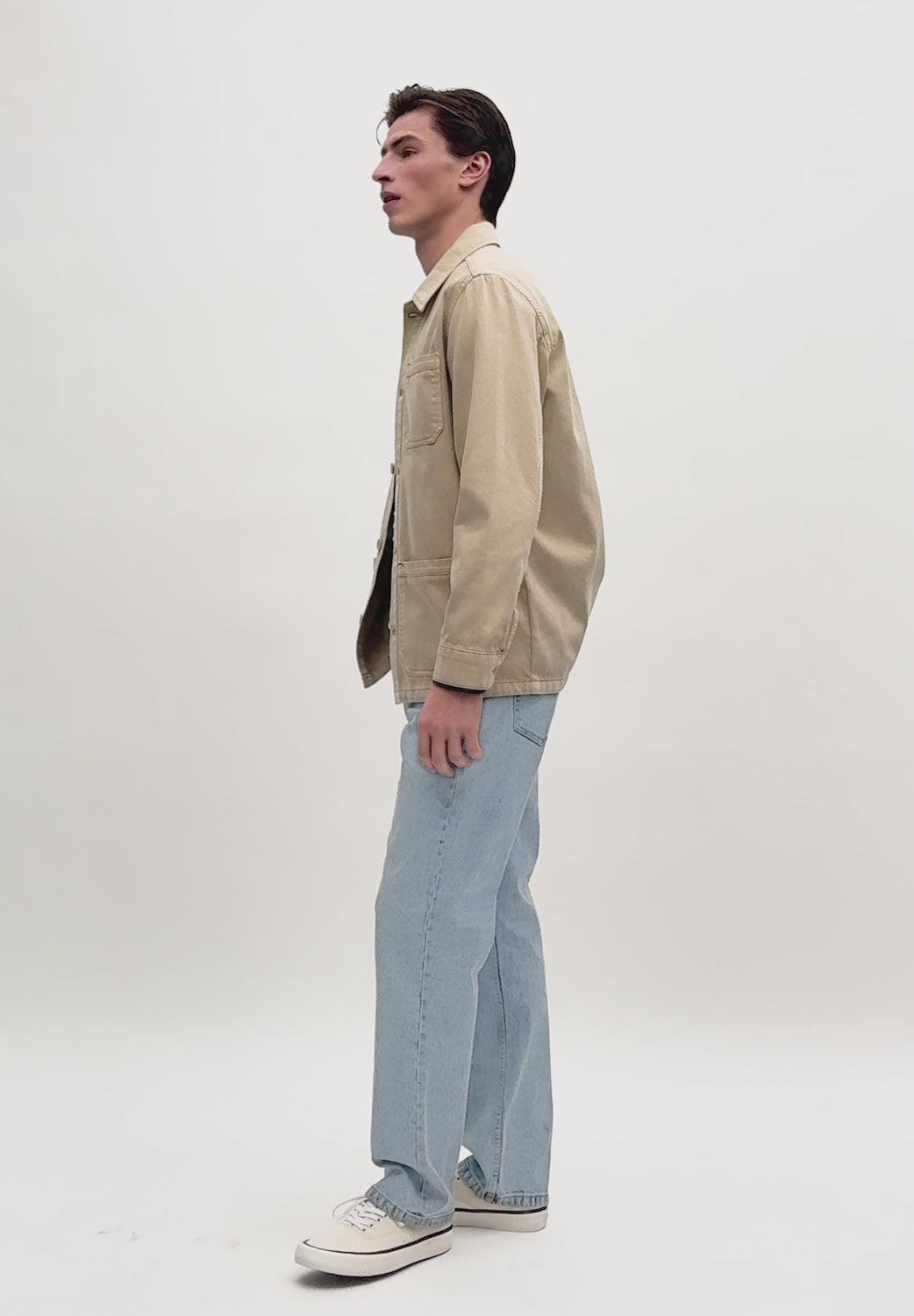 Denim jacket made of a recycled and BCI cotton blend. Regular fit, classic collar and button fastening. Long sleeves with buttoned cuffs and patch pockets.