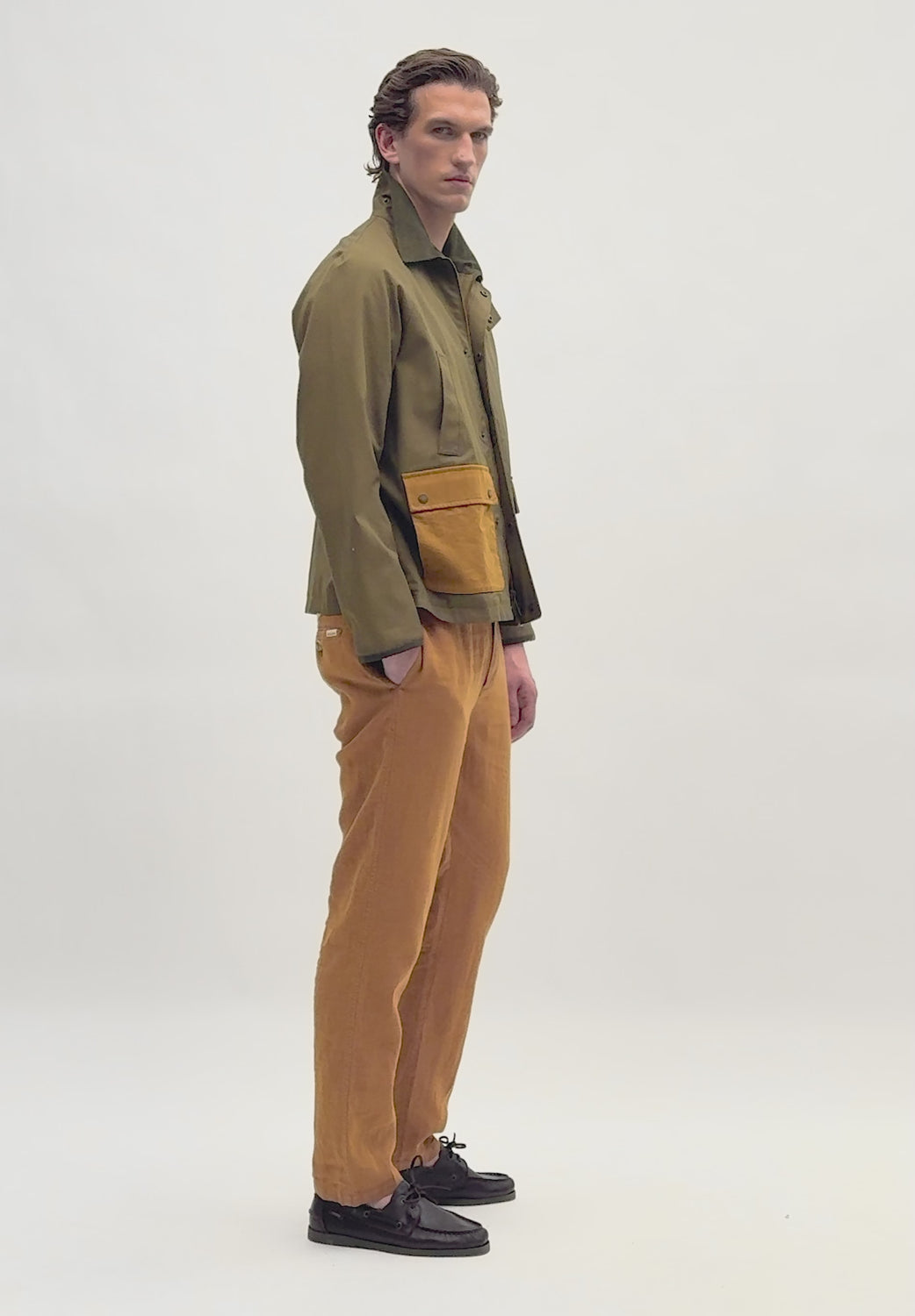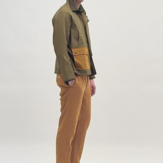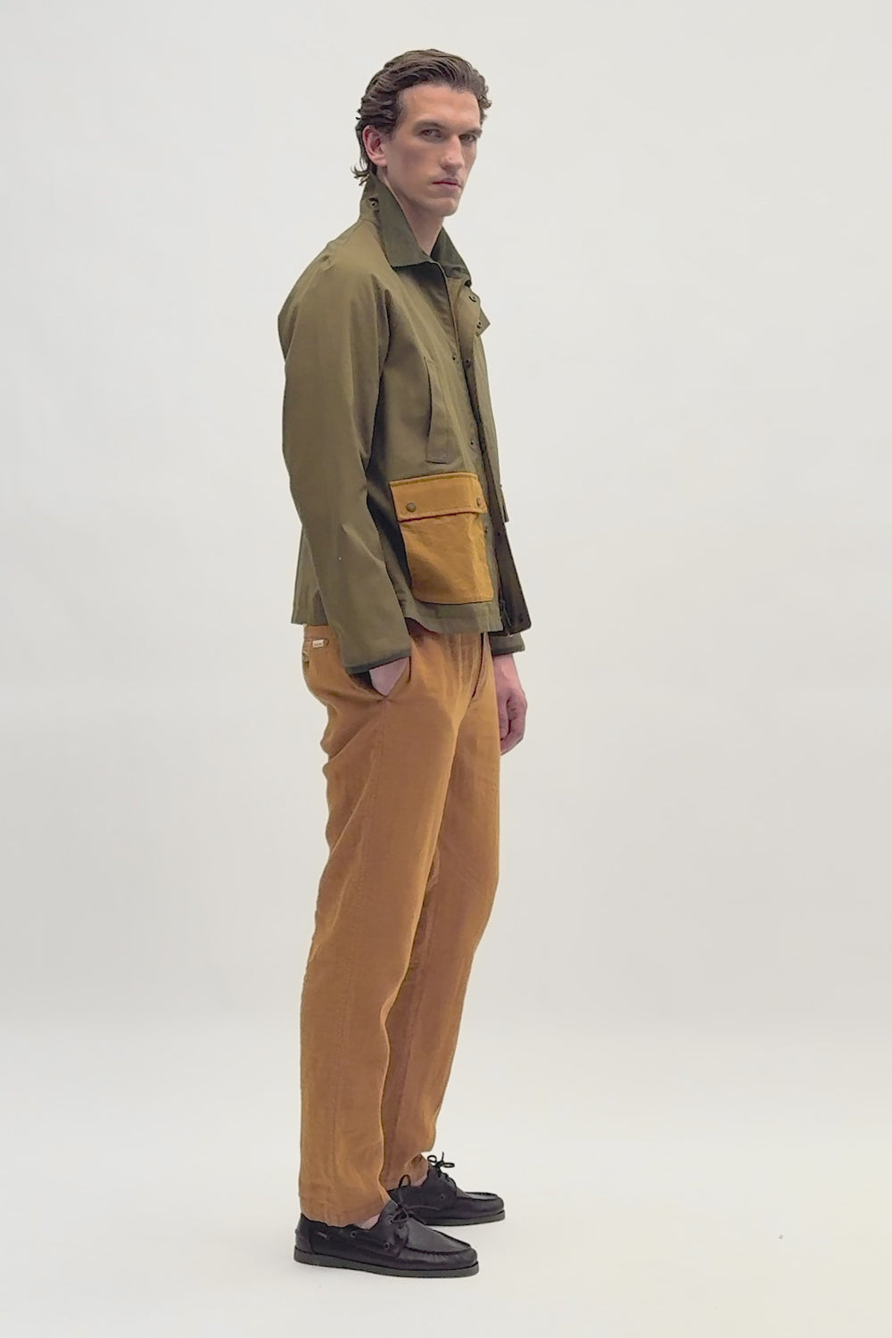 Lightweight parka. Made of 100% BCI cotton with corduroy shirt collar and double carriage zip and placket with snap button fastening. Concealed front pockets and flap pockets with two-tone snap buttons. Ribbed detail on the cuff.