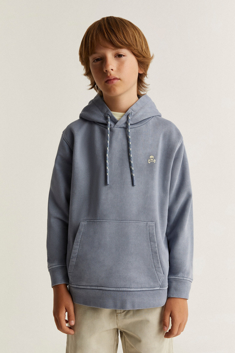Sweatshirt with an embroidered skull. Made of 100% BCI cotton. Regular fit. Collar with hood. Long sleeves. Ribbed trim.