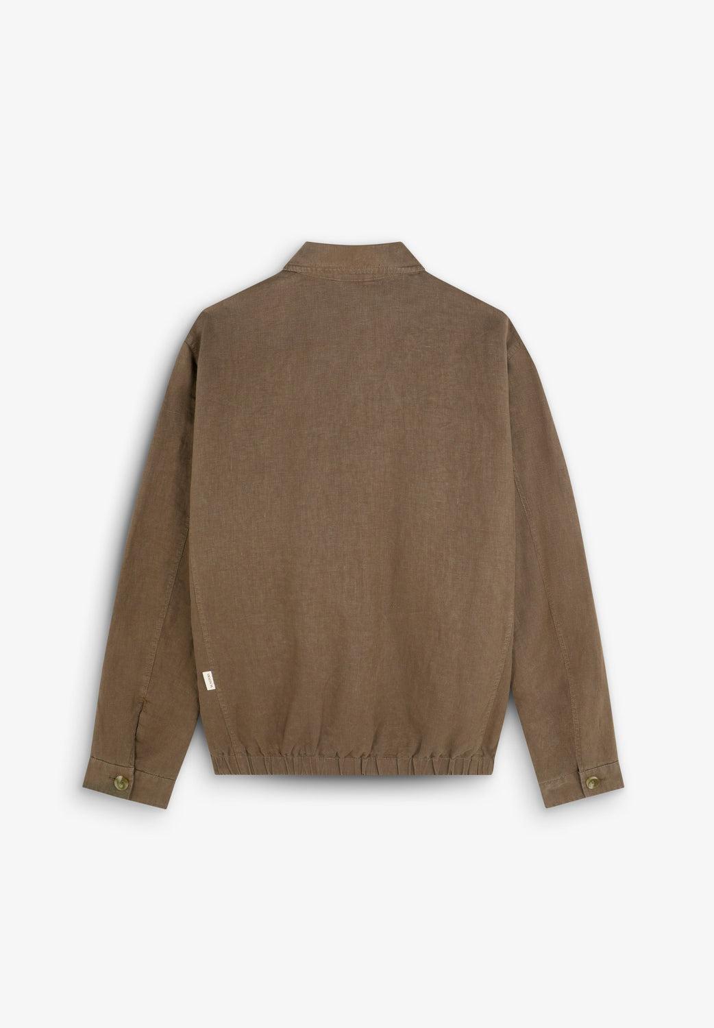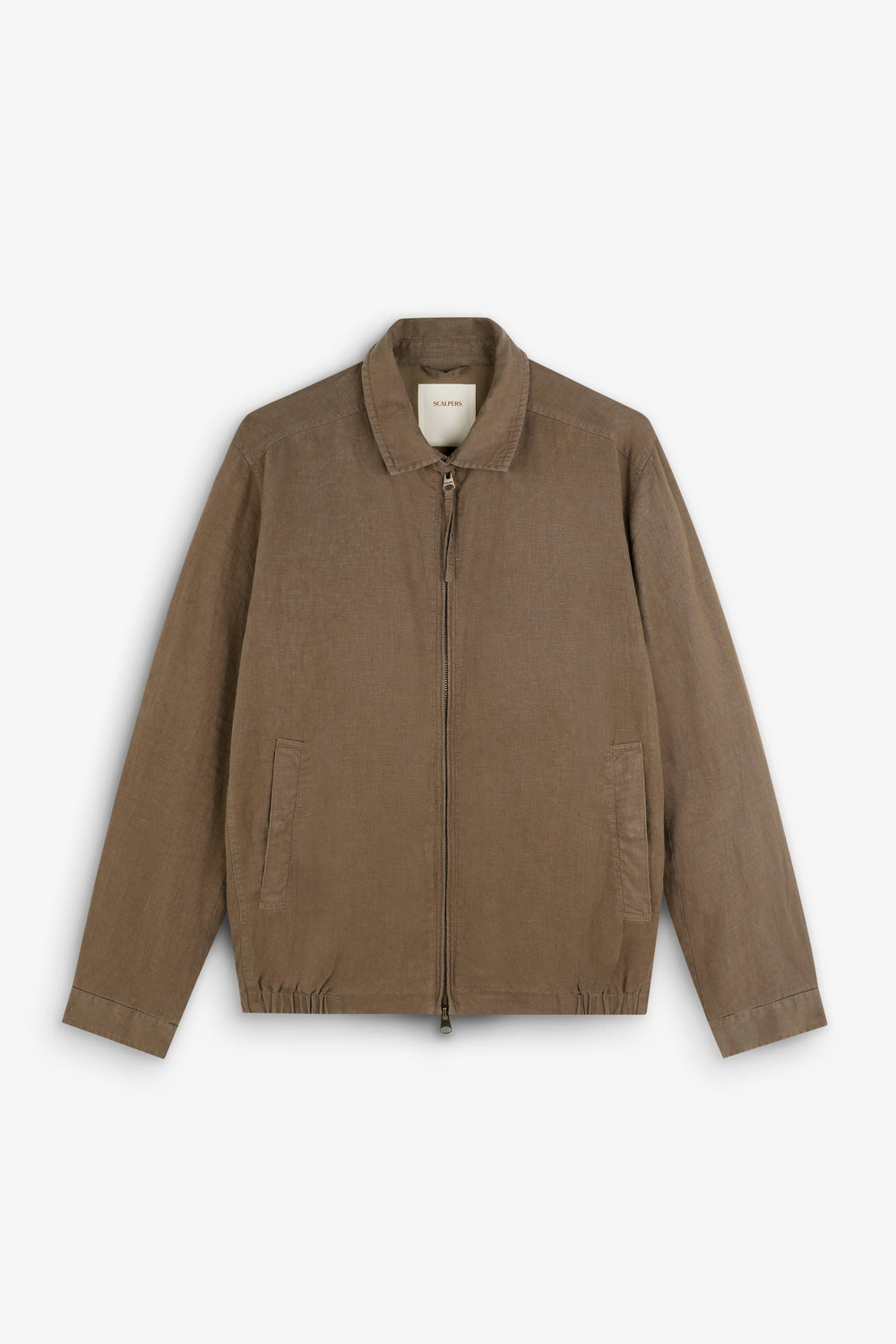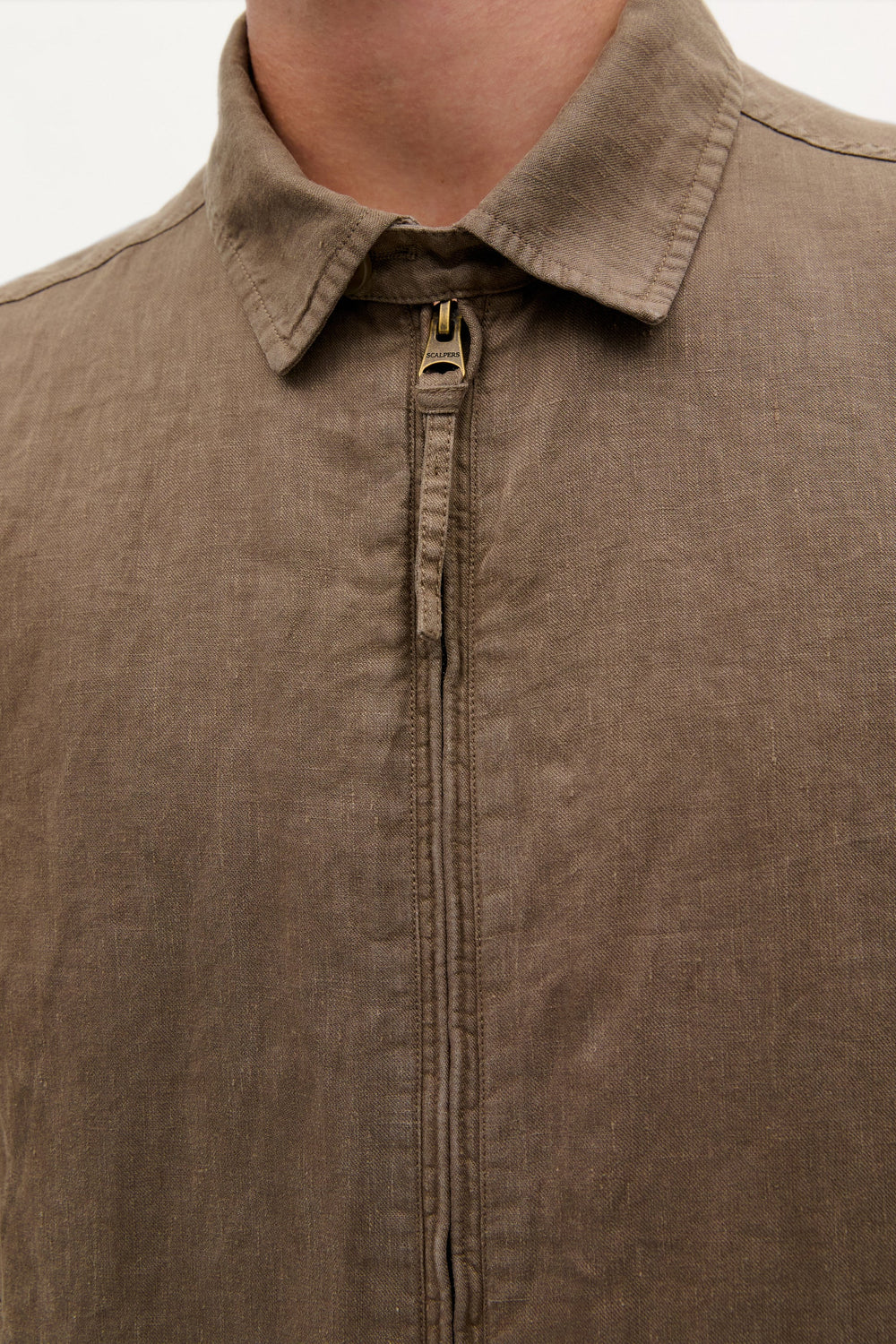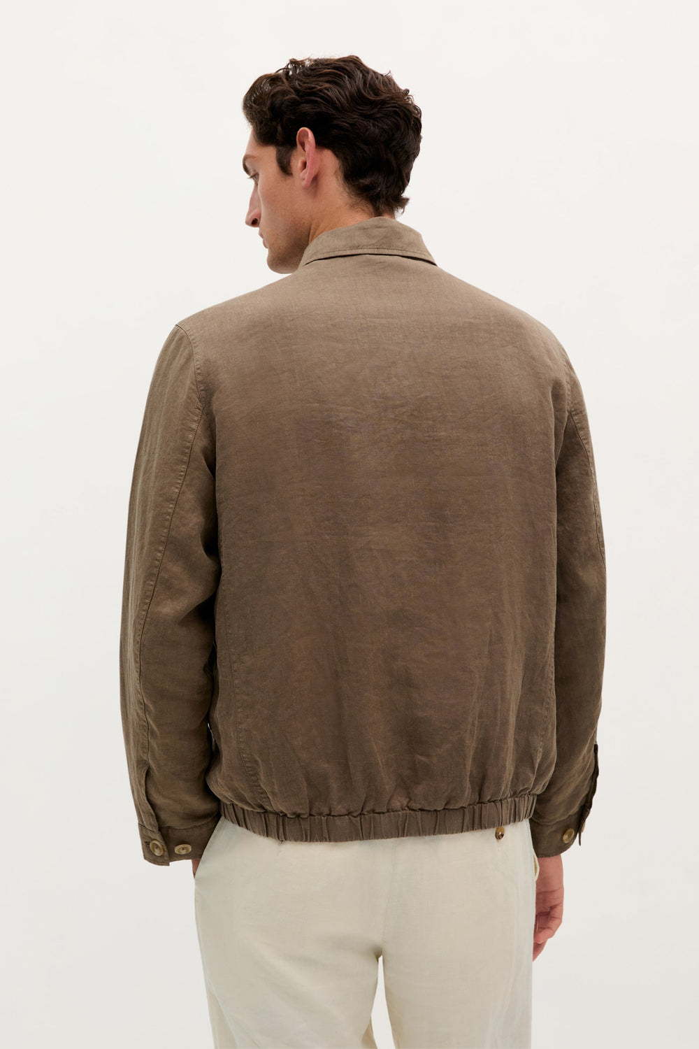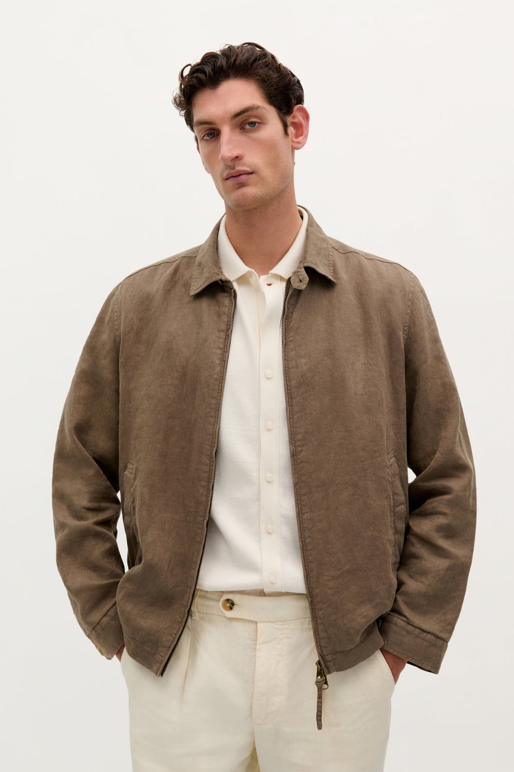 Jacket made of 100% linen. Shirt collar. Long sleeves. Adjustable double buttoned cuffs. Double slider zip fastening. Pockets on the front. Regular fit.