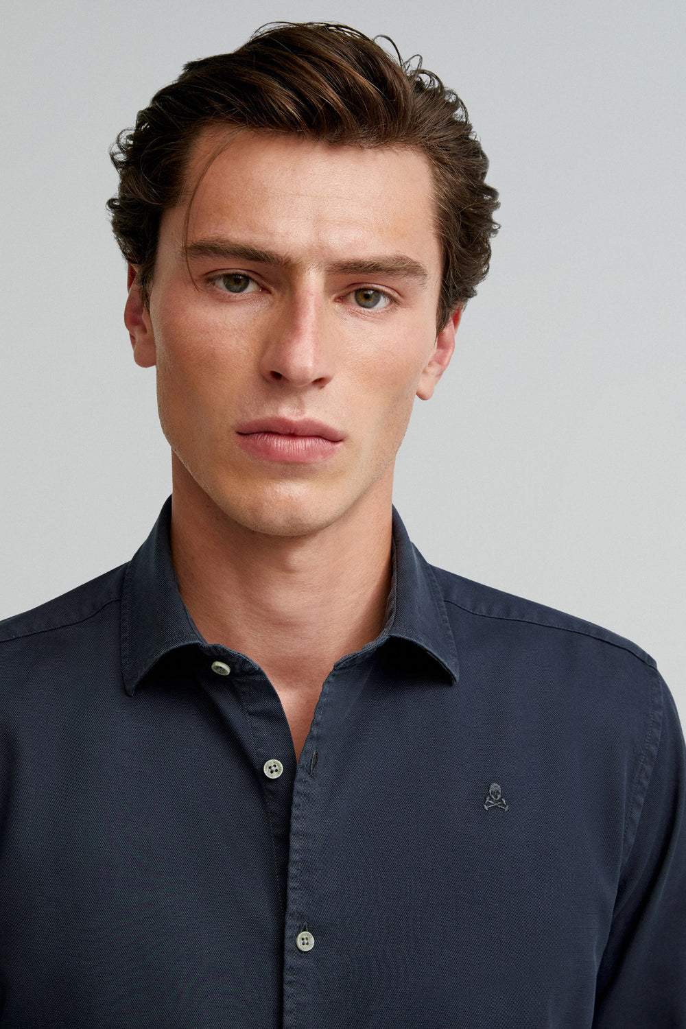 Shirt made of 100% cotton. Regular fit, cutaway collar and button fastening. Long sleeves with buttoned cuffs and matching embroidered skull.