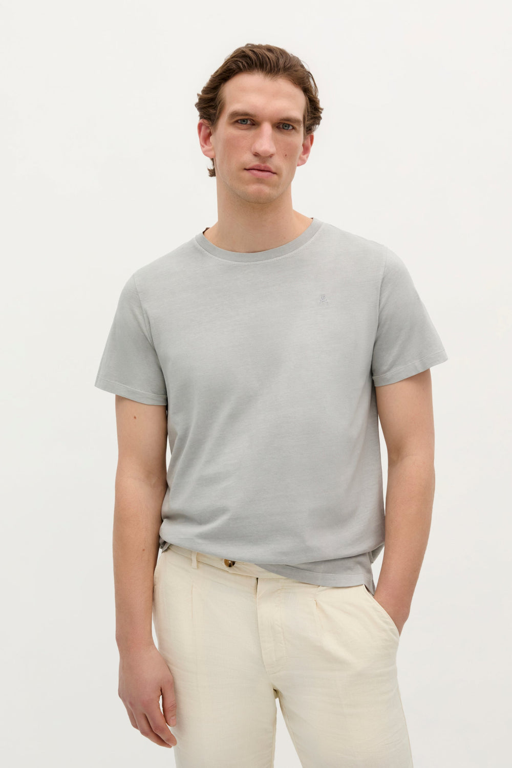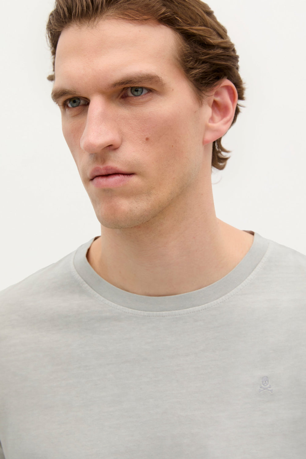 Faded T-shirt made of 100% BCI cotton. Regular fit, round neck and short sleeves. Matching embroidered skull detail.