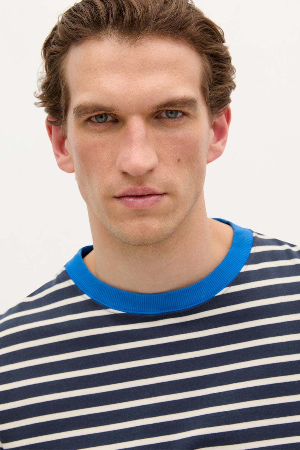 STRIPED T-SHIRT WITH CONTRAST COLLAR