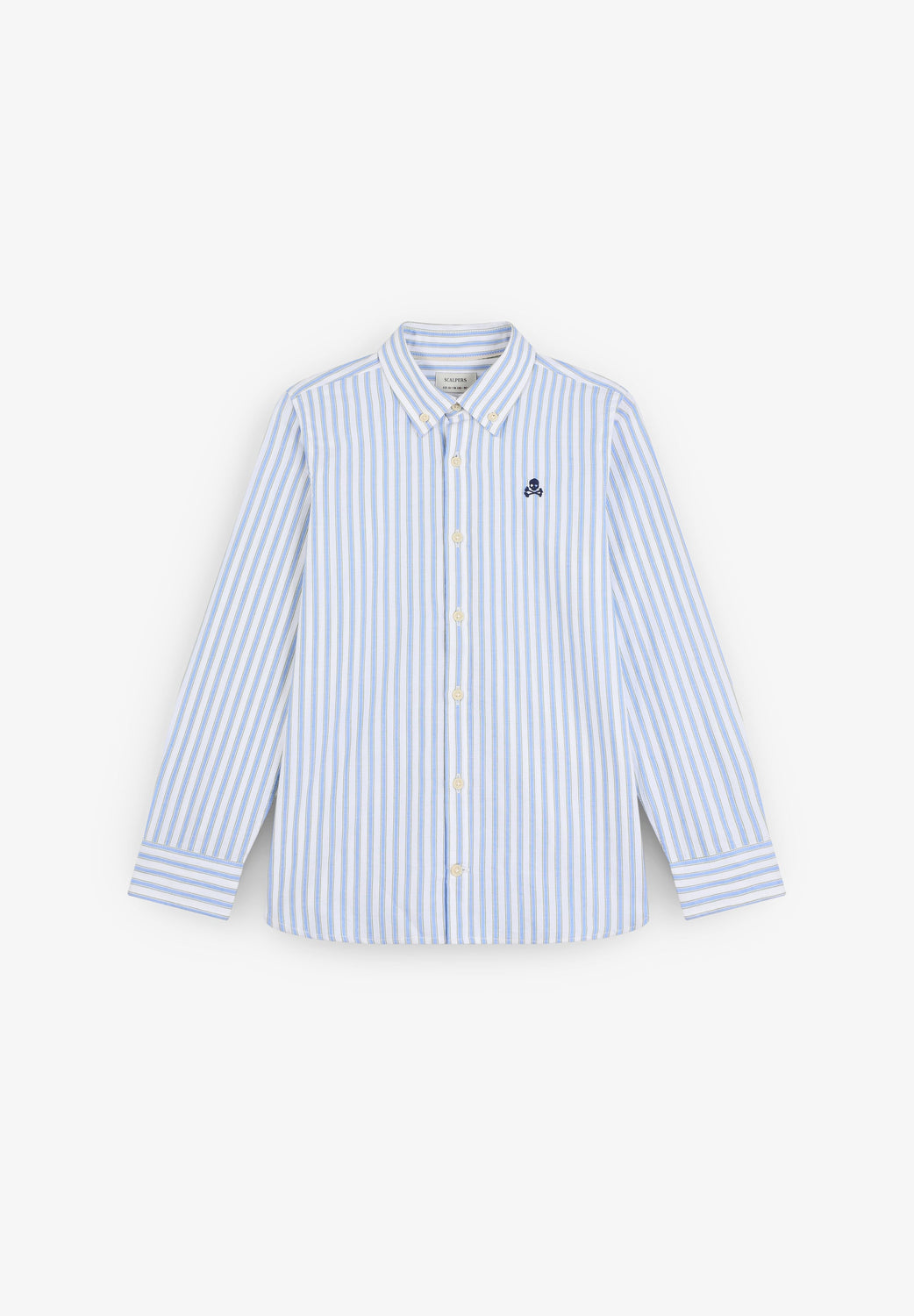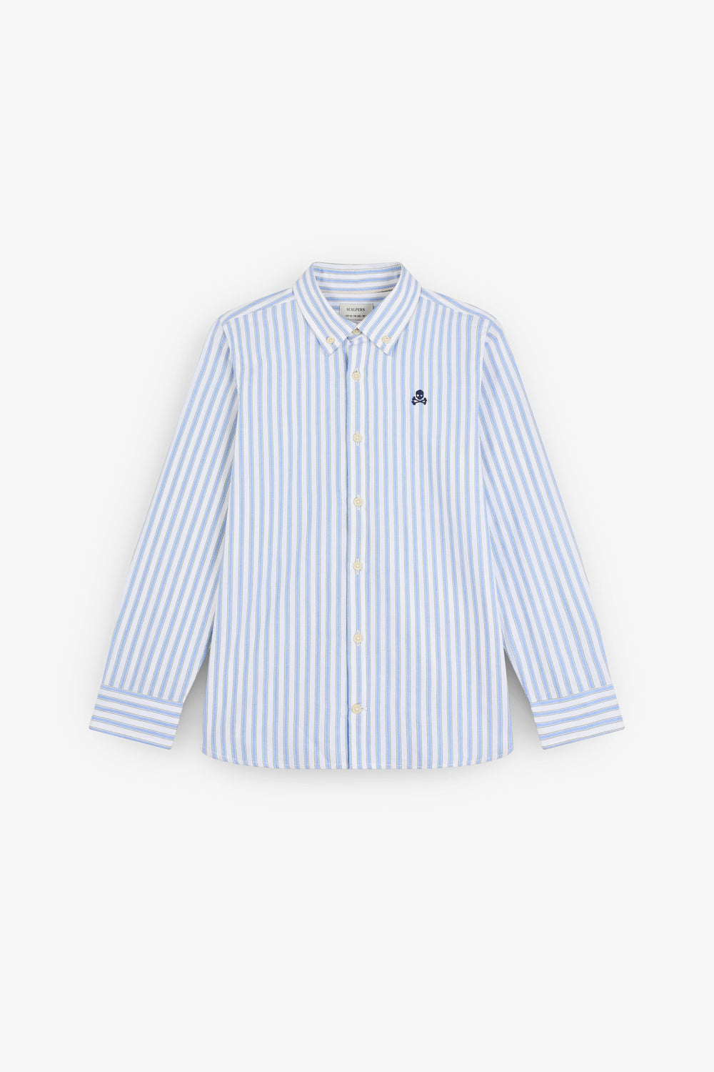Oxford shirt made of 100% BCI cotton. Regular fit. Stripe print. Contrast embroidered skull detail on the chest.