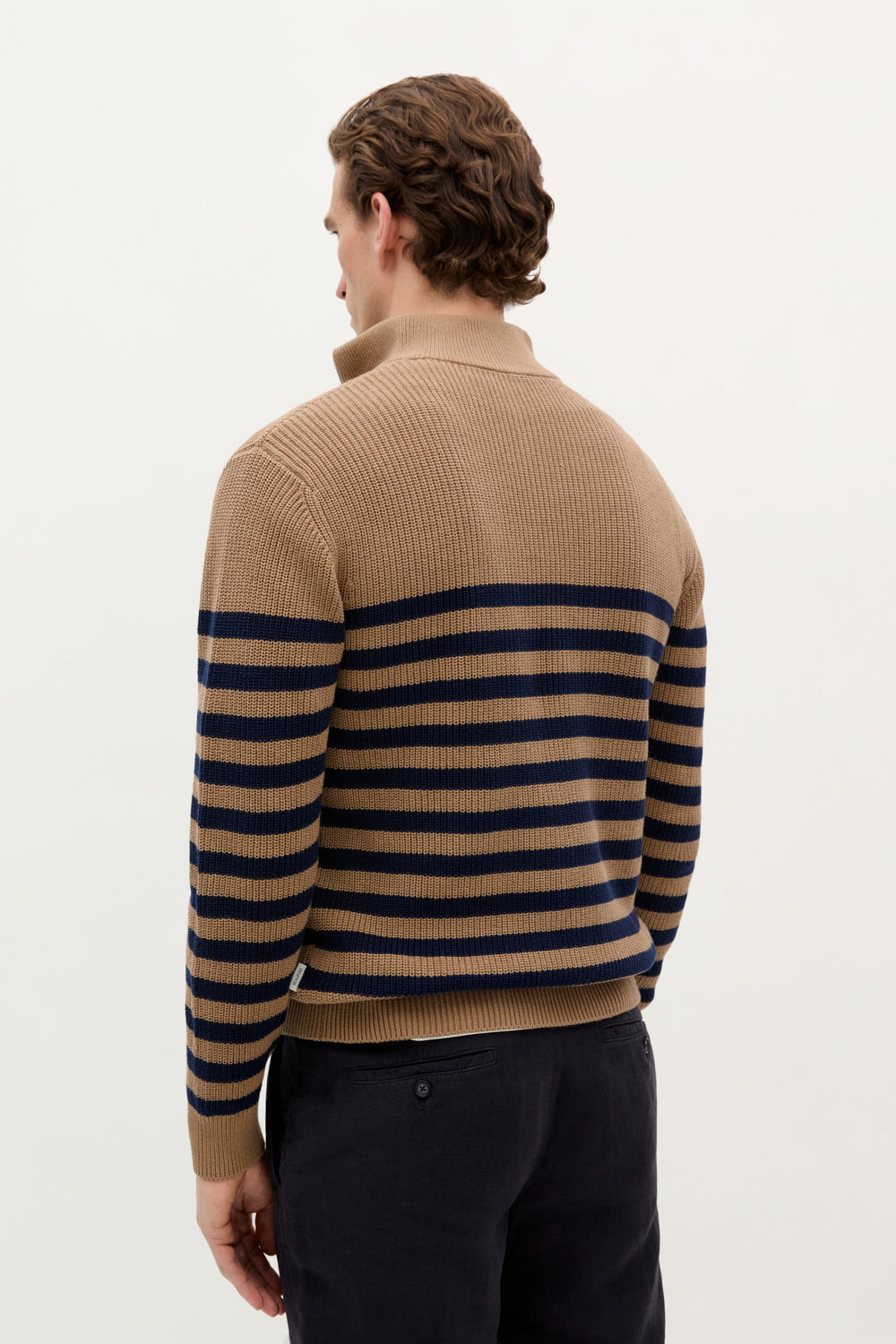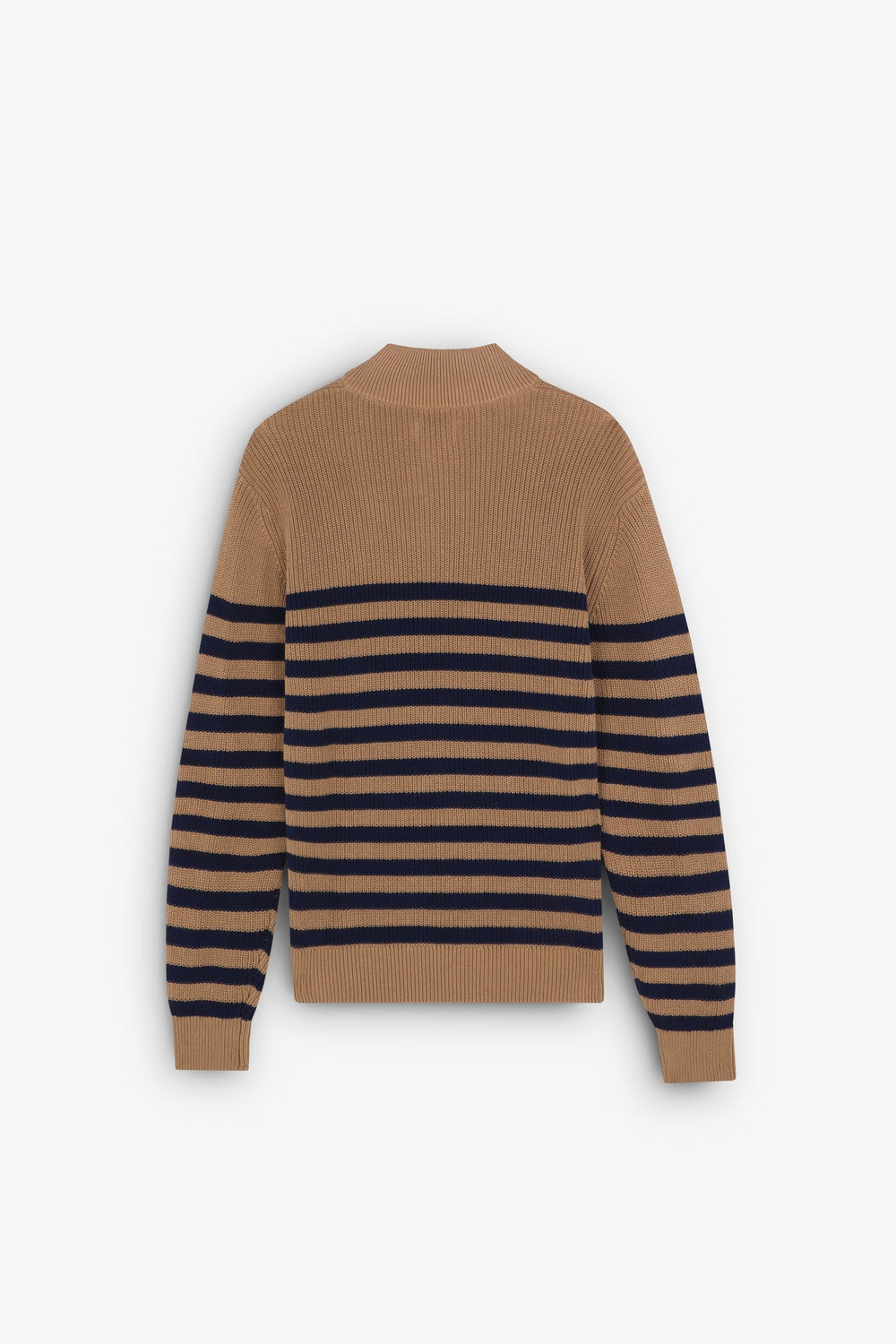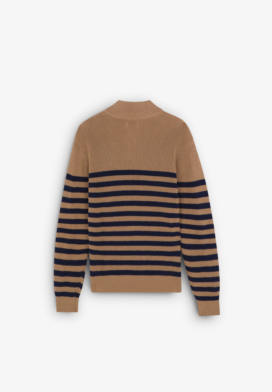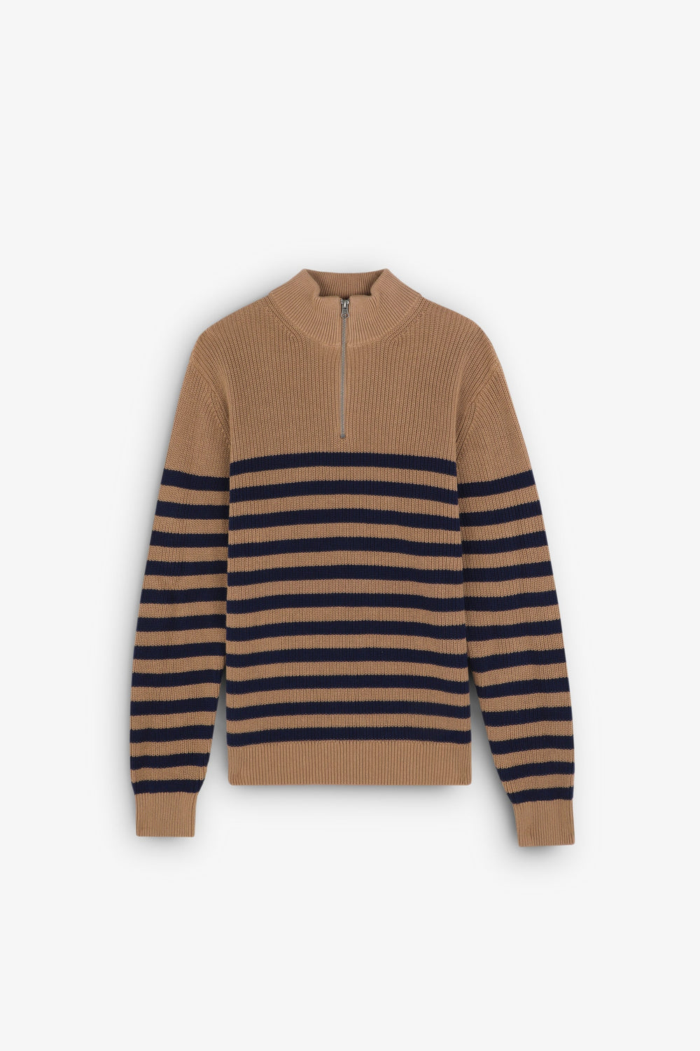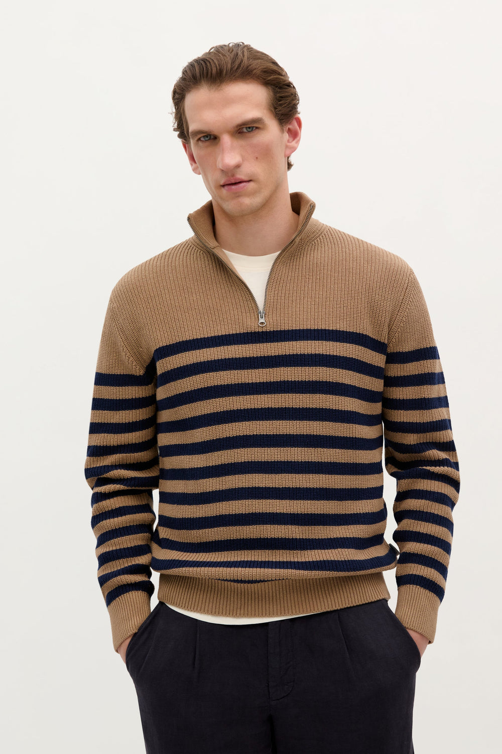 Striped sweater made of 100% BCI cotton. Regular fit, zipped neck and long sleeves