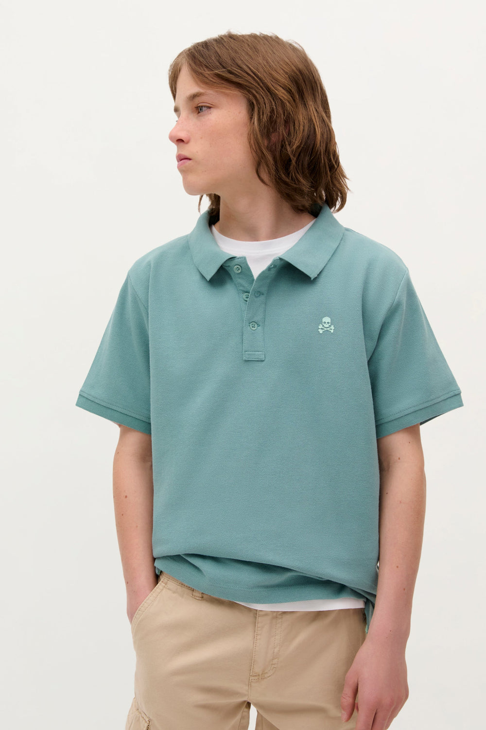 Polo shirt made of 100% cotton. Regular fit, classic collar and button fastening. Embroidered skull detail on the chest.