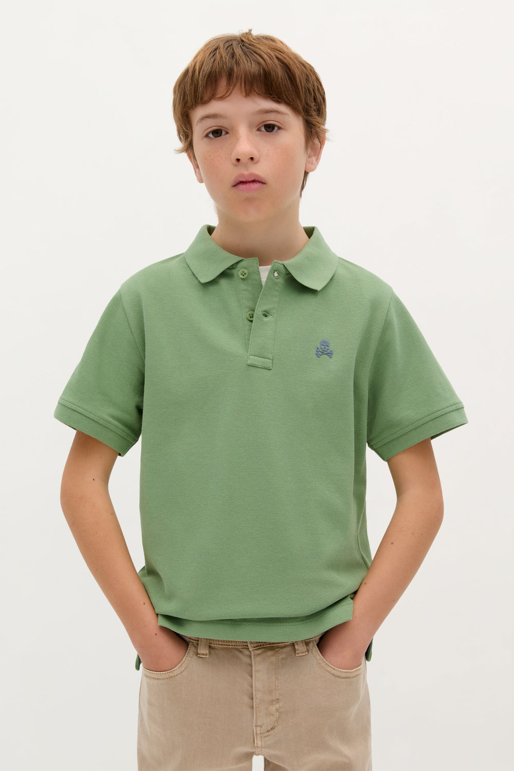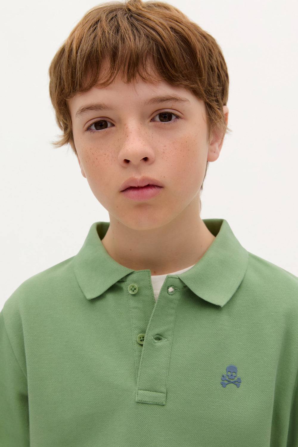 Polo shirt made of 100% cotton. Regular fit, classic collar and button fastening. Embroidered skull detail on the chest.