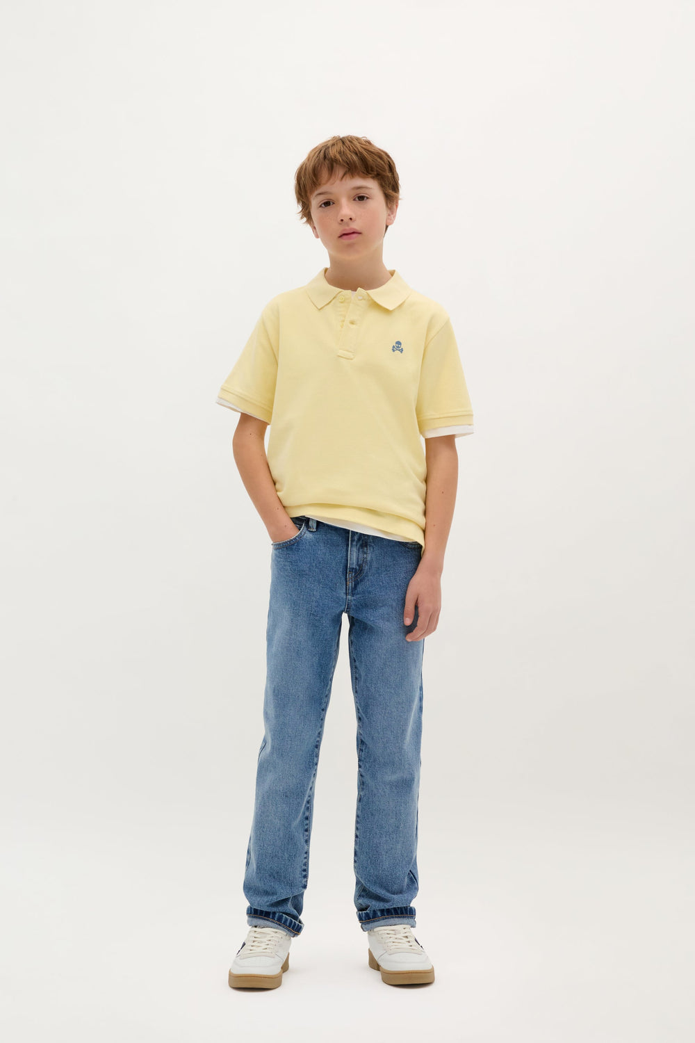 Polo shirt made of 100% cotton. Regular fit, classic collar and button fastening. Embroidered skull detail on the chest.