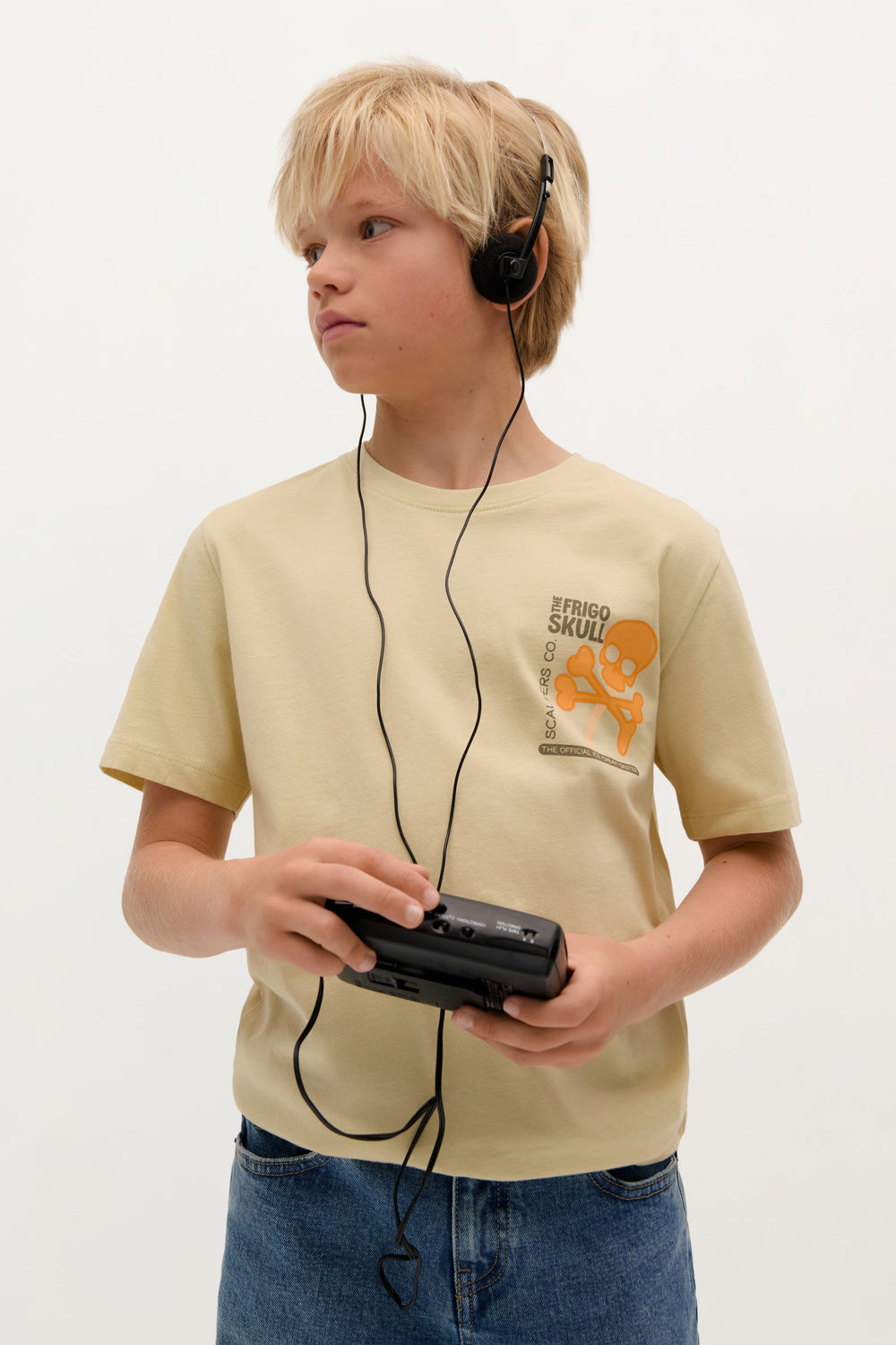 T-shirt made of 100% BCI cotton. Regular fit, short sleeves and round neck. Contrast print with logo on front. Embroidered label on lower right side
