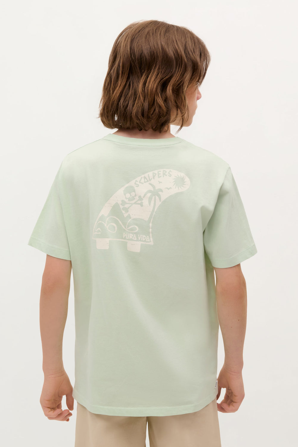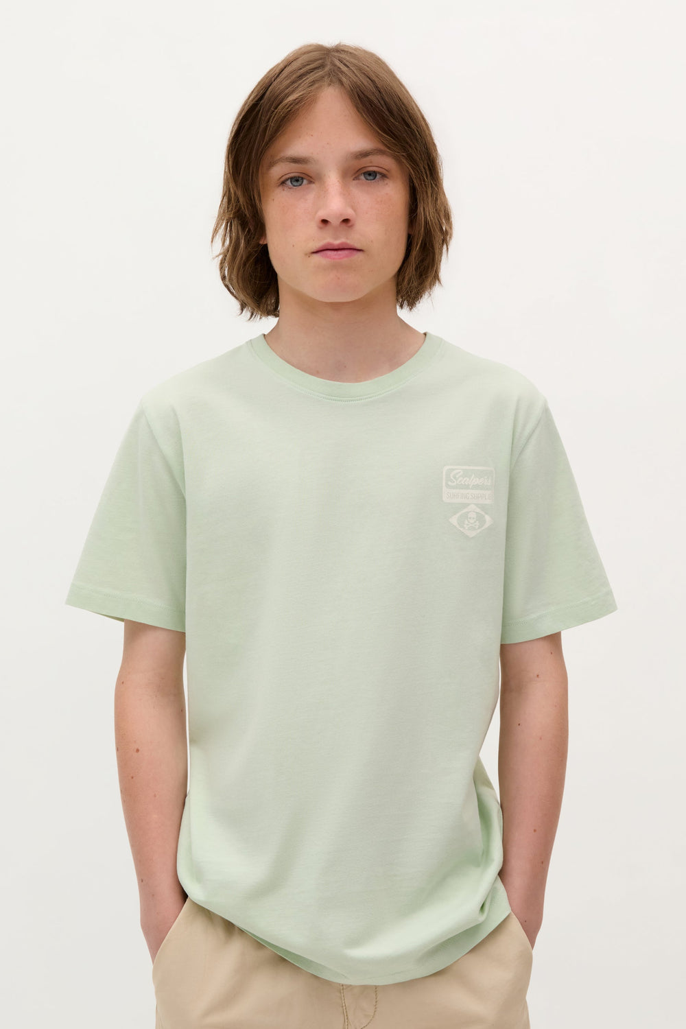 T-shirt made of 100% BCI cotton. Regular fit, short raglan sleeves and round neck with contrast ribbing and faded effect print on front and back with logo