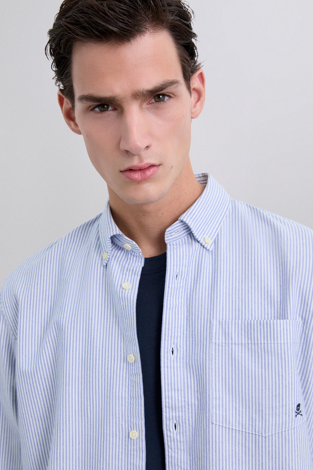 Shirt with matching embroidered skull detail on the chest. Made of 100% BCI cotton. Regular fit. Buttoned collar. Long sleeves with buttoned cuffs. Front button fastening. Patch pocket on the chest.