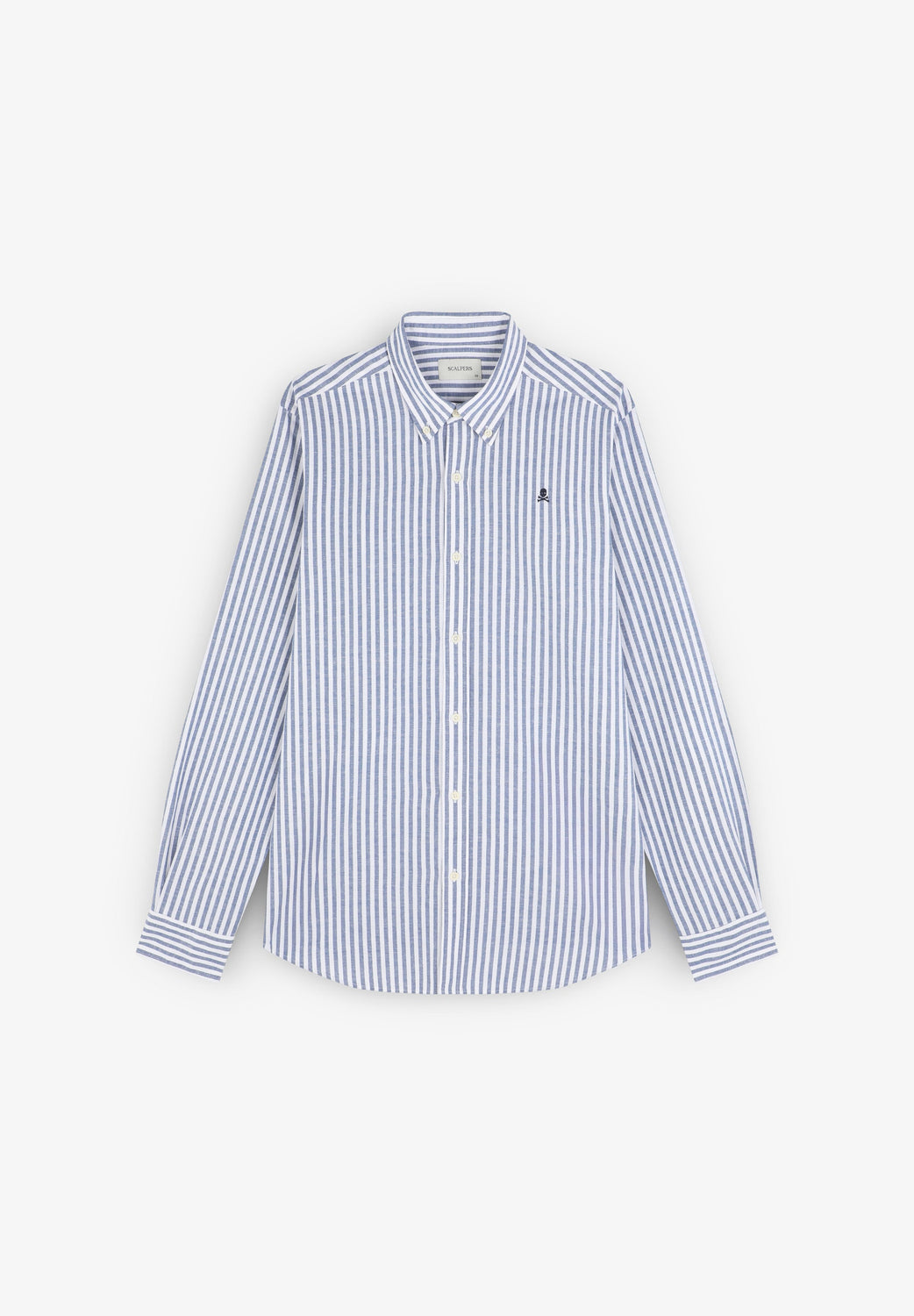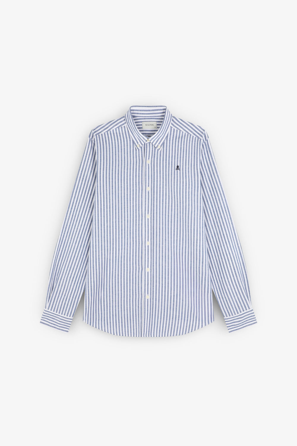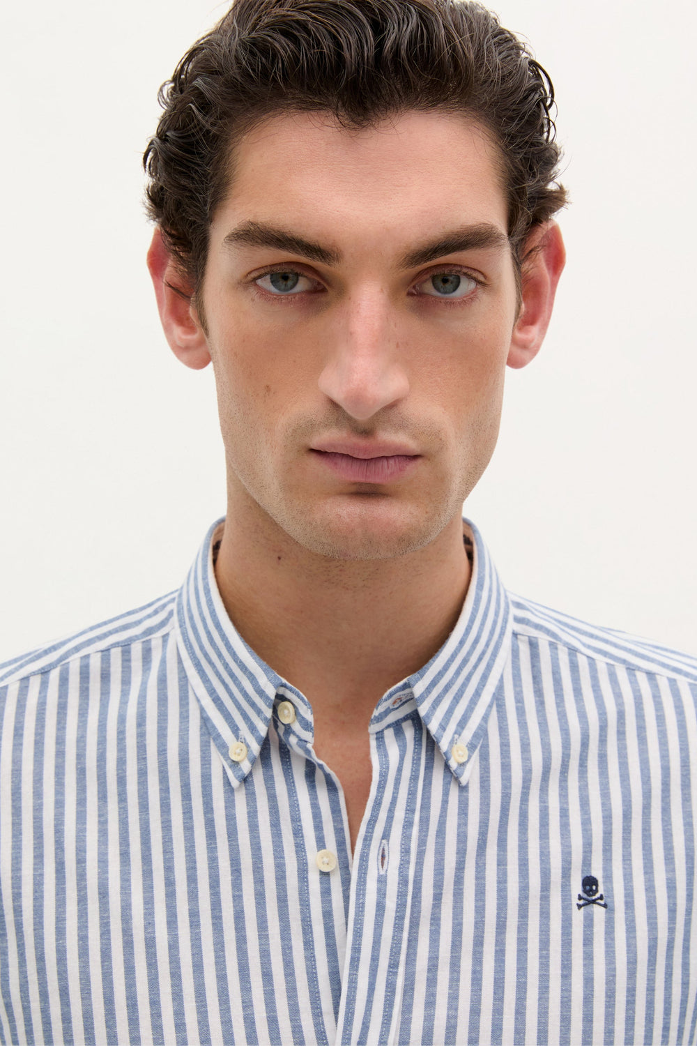 Striped shirt with contrast embroidered skull detail on the chest. Made of a cotton and linen blend. Regular fit. Buttoned collar. Front button fastening. Long sleeves with buttoned cuffs.
