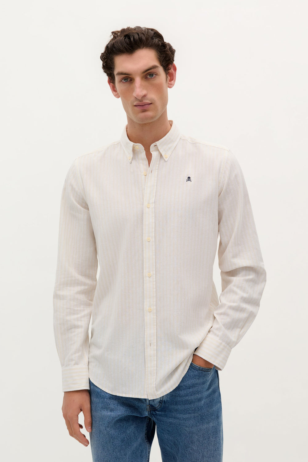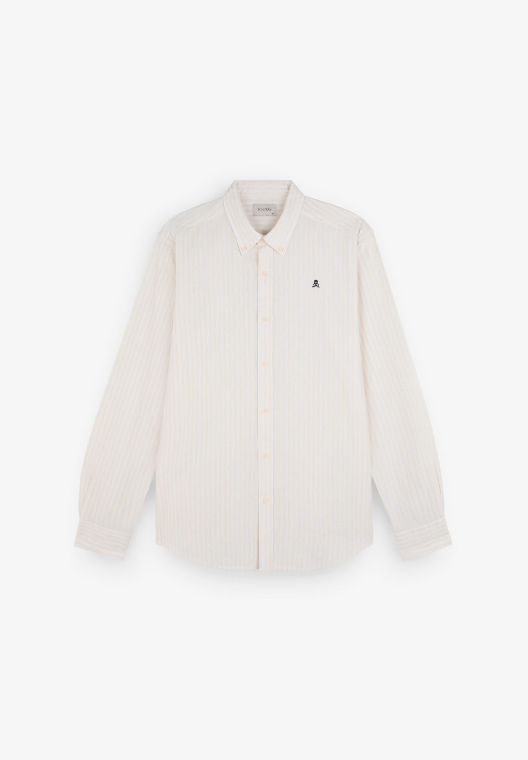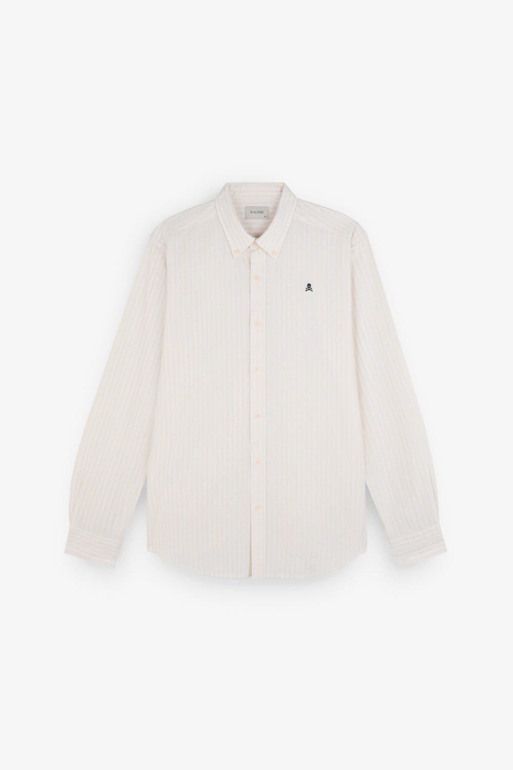 Striped shirt with contrast embroidered skull detail on the chest. Made of a cotton and linen blend. Regular fit. Buttoned collar. Front button fastening. Long sleeves with buttoned cuffs.
