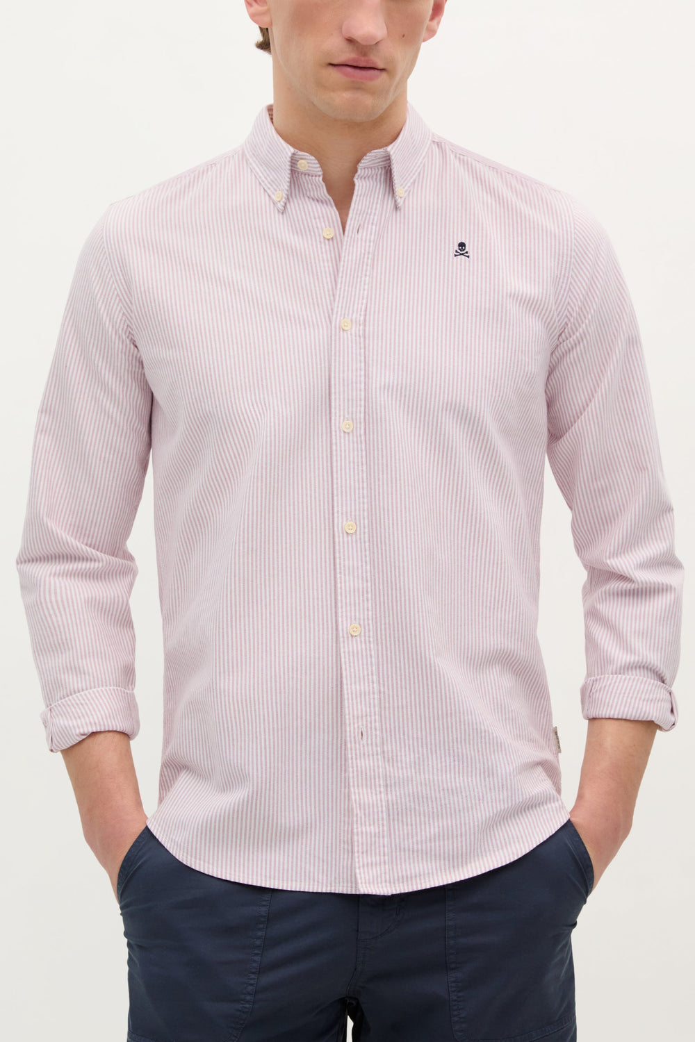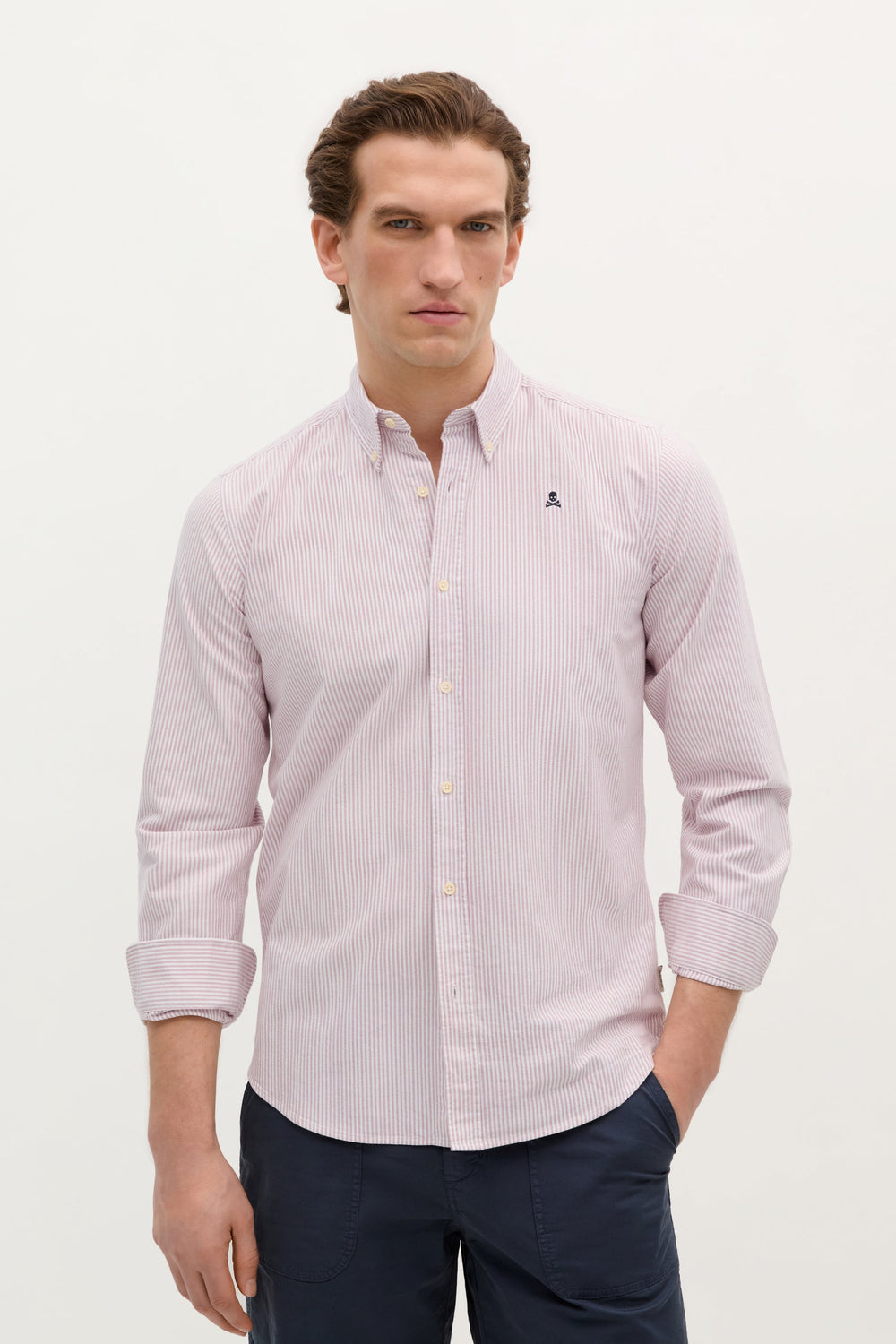 Shirt made of 100% BCI cotton. Regular fit, collar with buttons and button fastening. Long sleeves with buttoned cuffs and contrast embroidered skull.