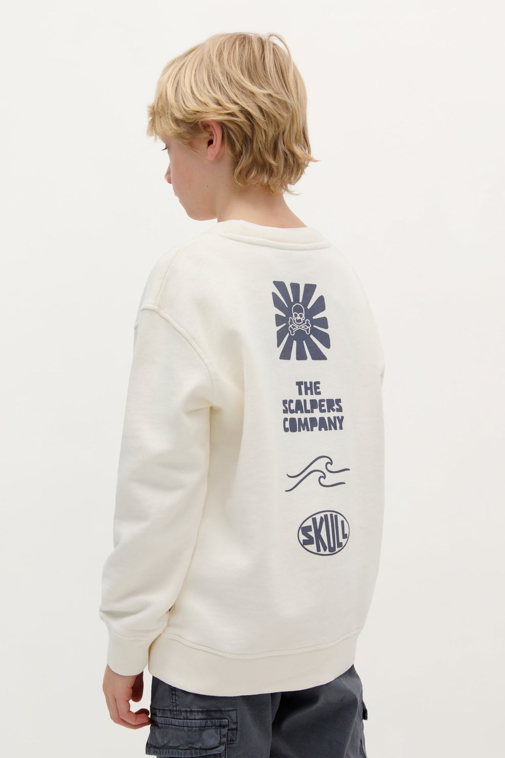 Faded effect sweatshirt with front and back high-density print. Made of 100% BCI cotton. Relaxed fit. Round neck. Long sleeves.