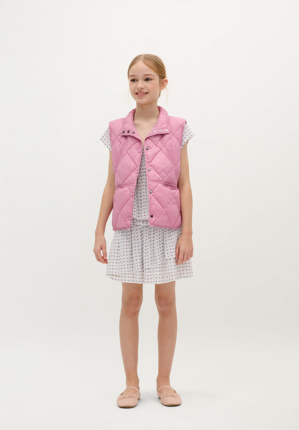 Puffer vest made of polyester. Regular fit with button fastening. Side slits, front magnetised pockets. Rubber patch detail on the back.