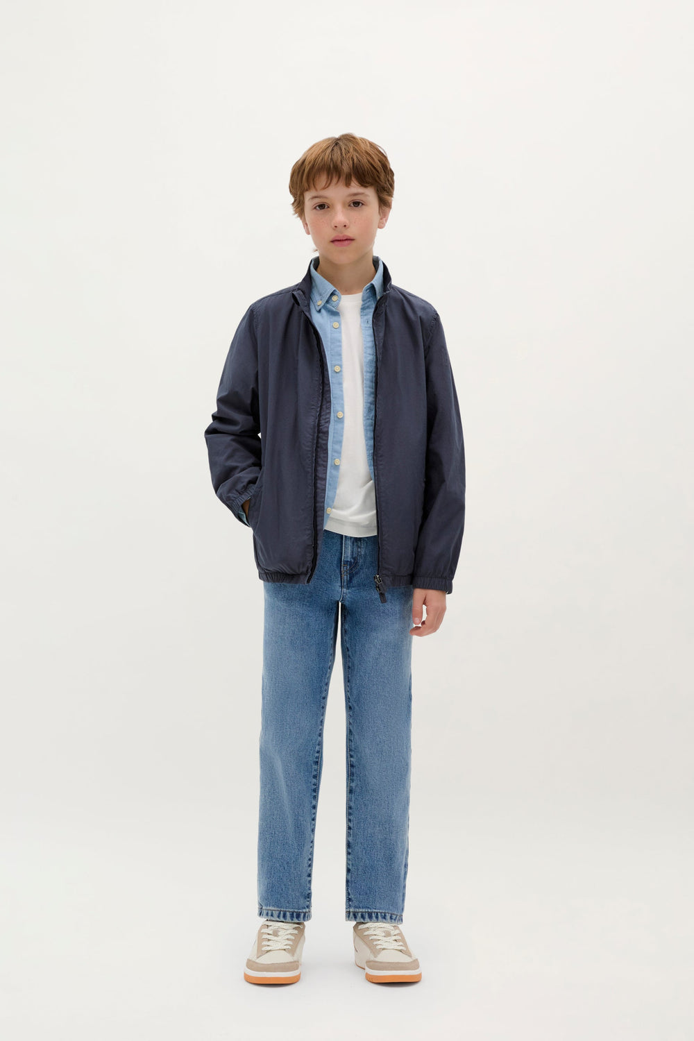 Lightweight faded jacket. Made of 100% BCI cotton. Regular fit. Lapel collar. Zip fastening. Long sleeves with elastic cuffs. Piped slash pockets at the sides.