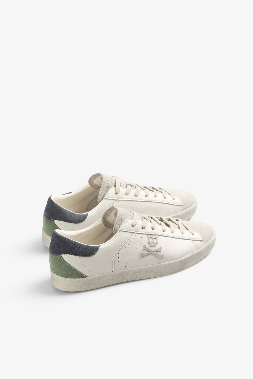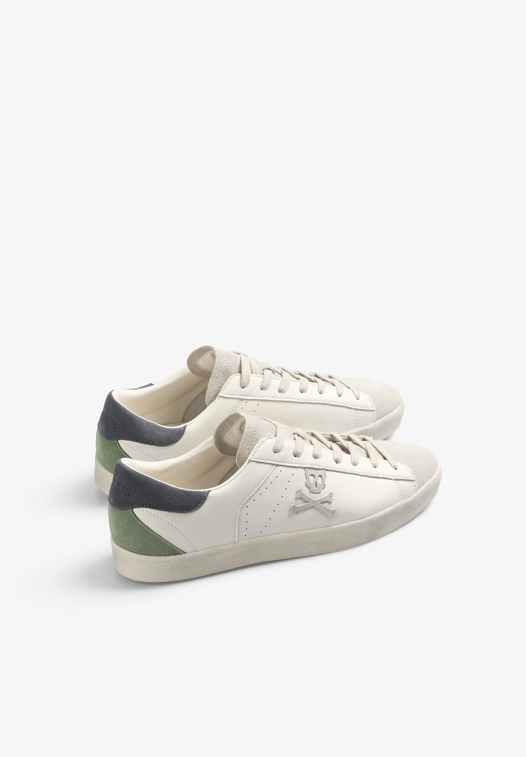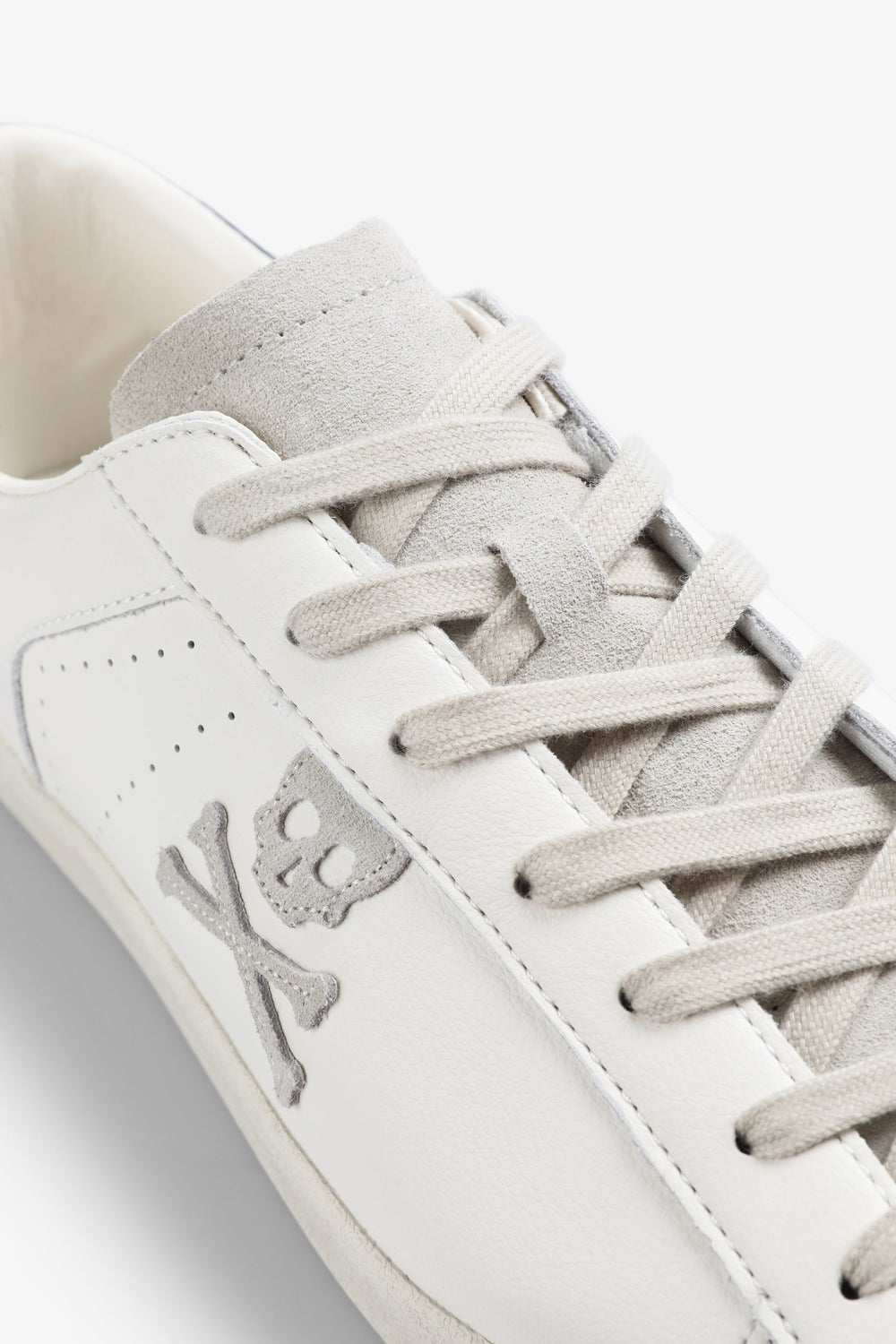 Low top leather and split suede sneakers. Matching lace-up fastening, rubber sole and skull detail on the side. Contrast back detail.