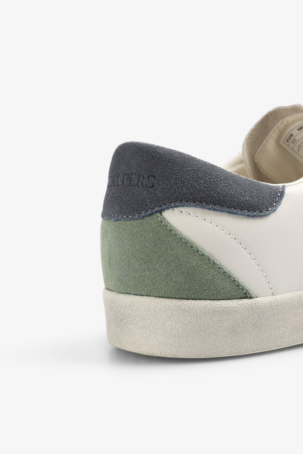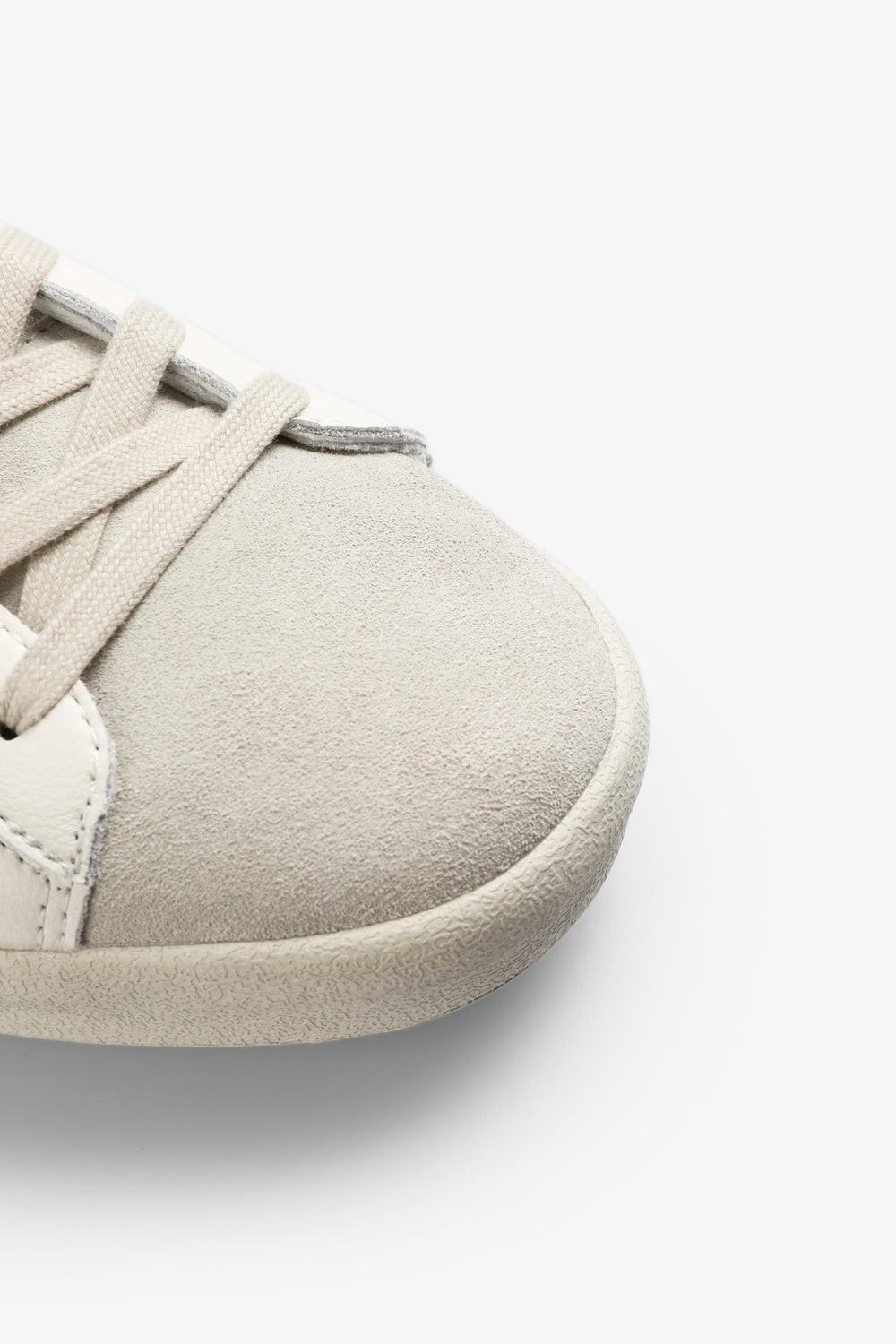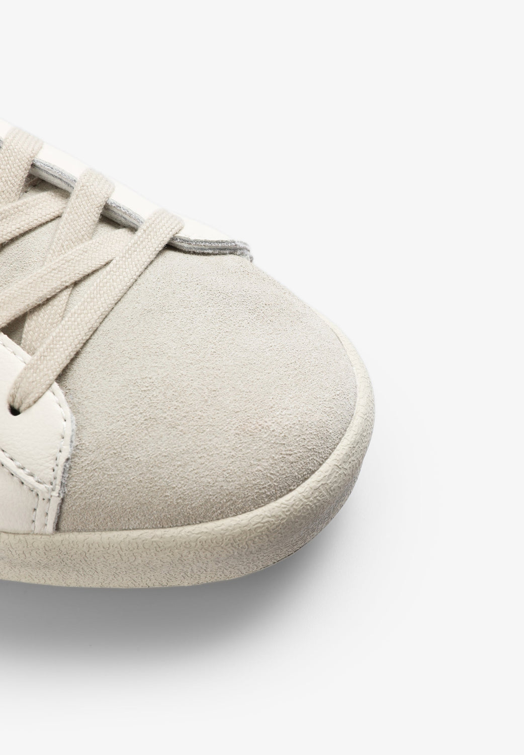 Low top leather and split suede sneakers. Matching lace-up fastening, rubber sole and skull detail on the side. Contrast back detail.