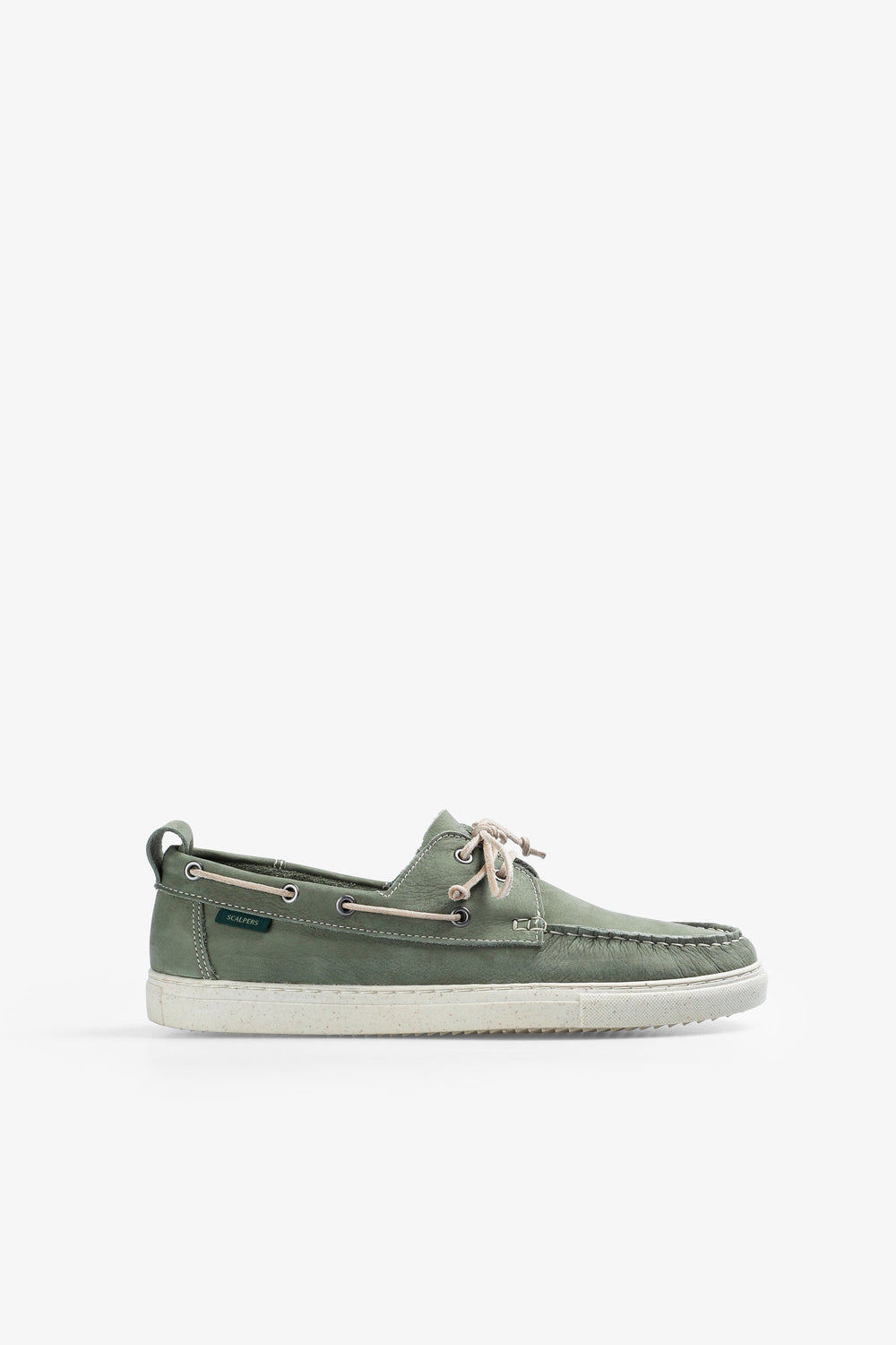 Deck shoes. Made of 100% leather. Contrasting lace-up fastening. Recycled rubber sole. Side skull logo label detail.
