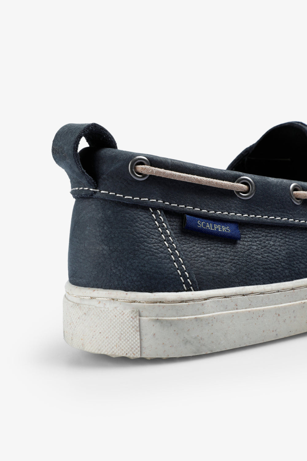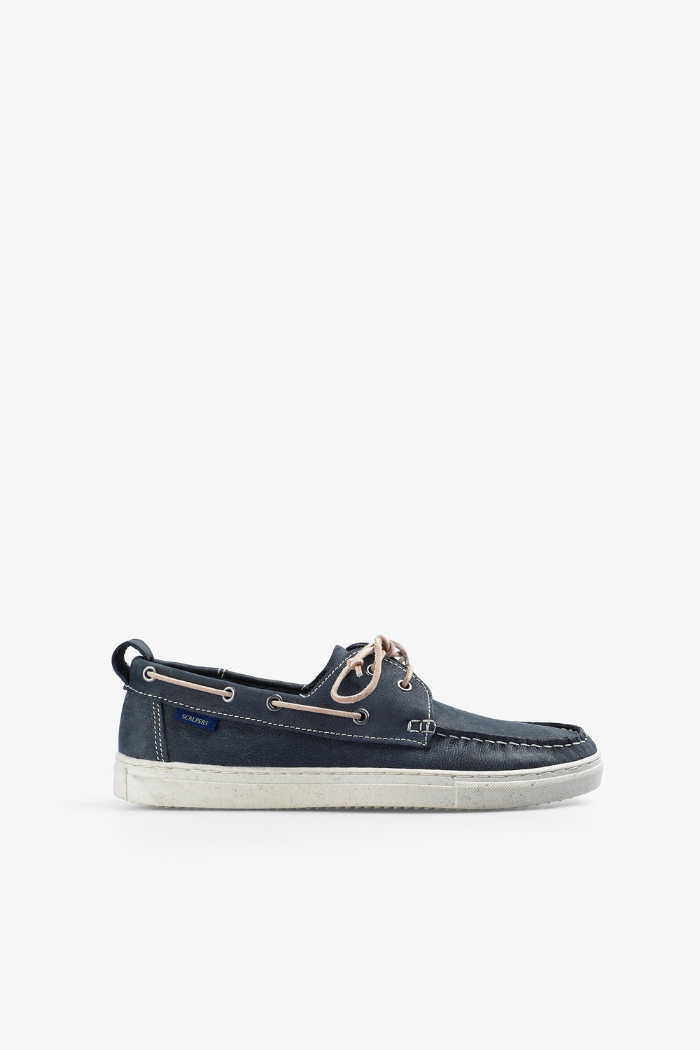 Deck shoes. Made of 100% leather. Contrasting lace-up fastening. Recycled rubber sole. Side skull logo label detail.
