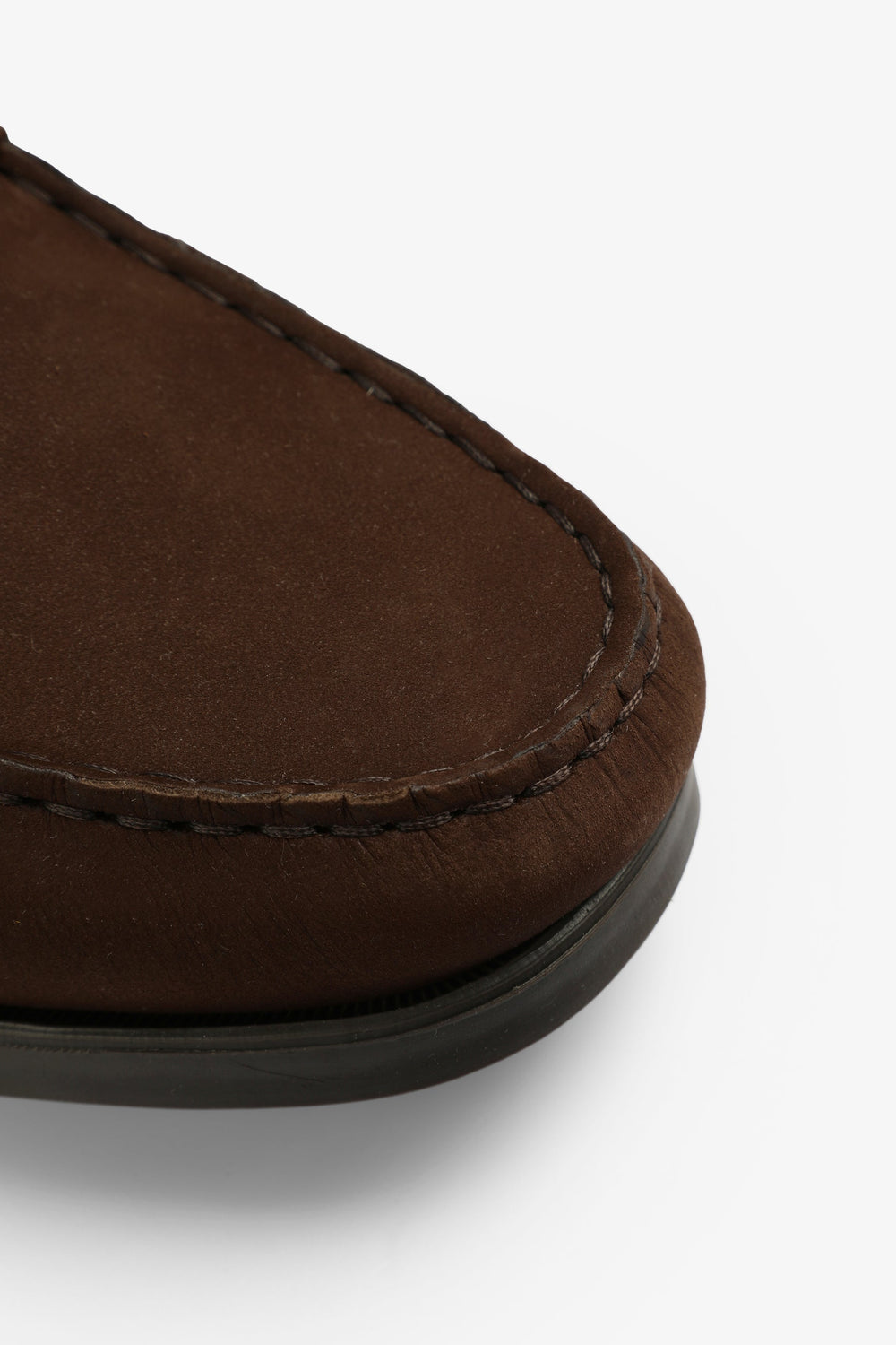 Mocasín de vestir con antifaz. Confeccionado en 100% Piel. Detalle de antifaz cosido al empeine. Plantilla interior en piel. Horma redonda. Suela cosida al corte. Detalle de logo en parte lateral.