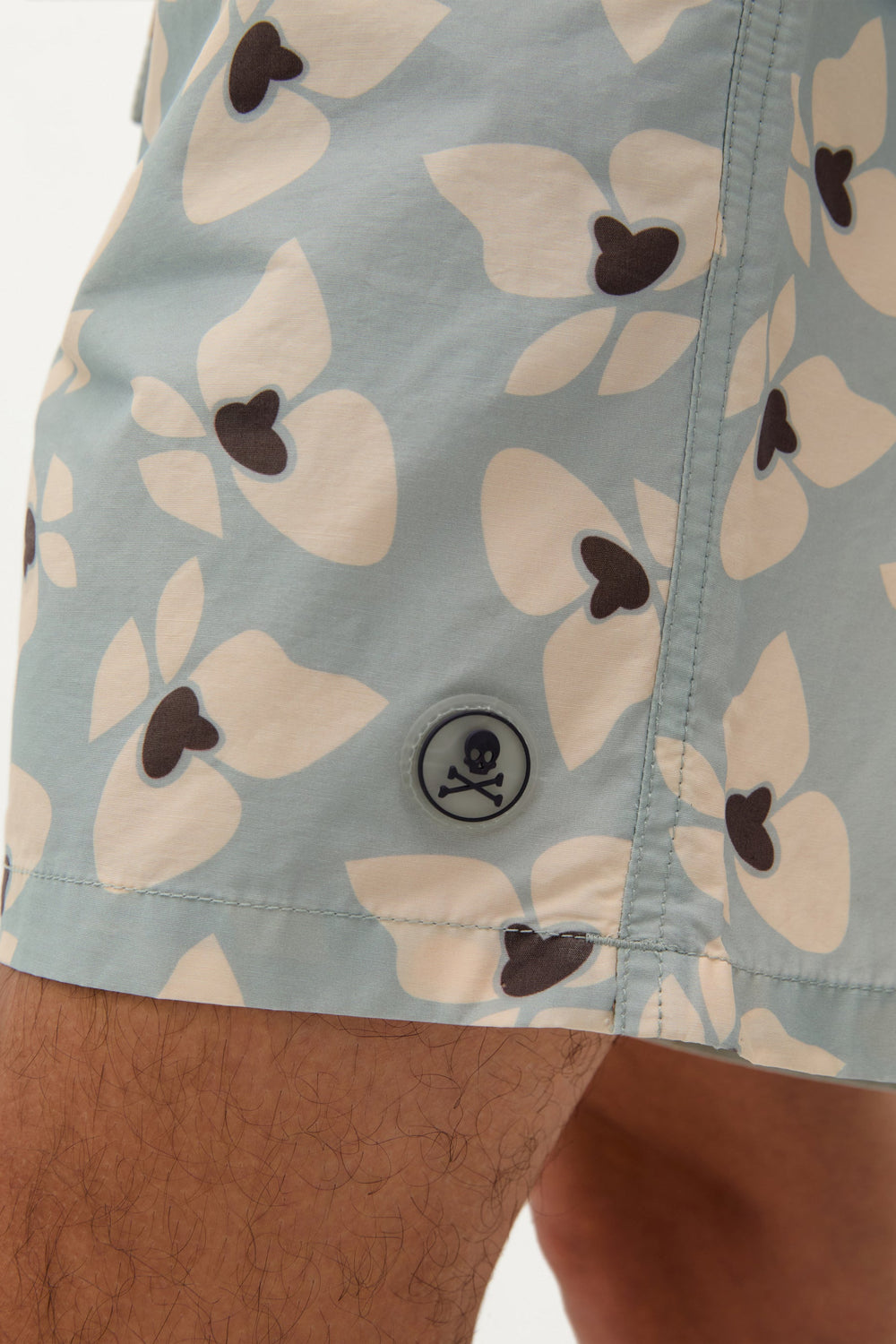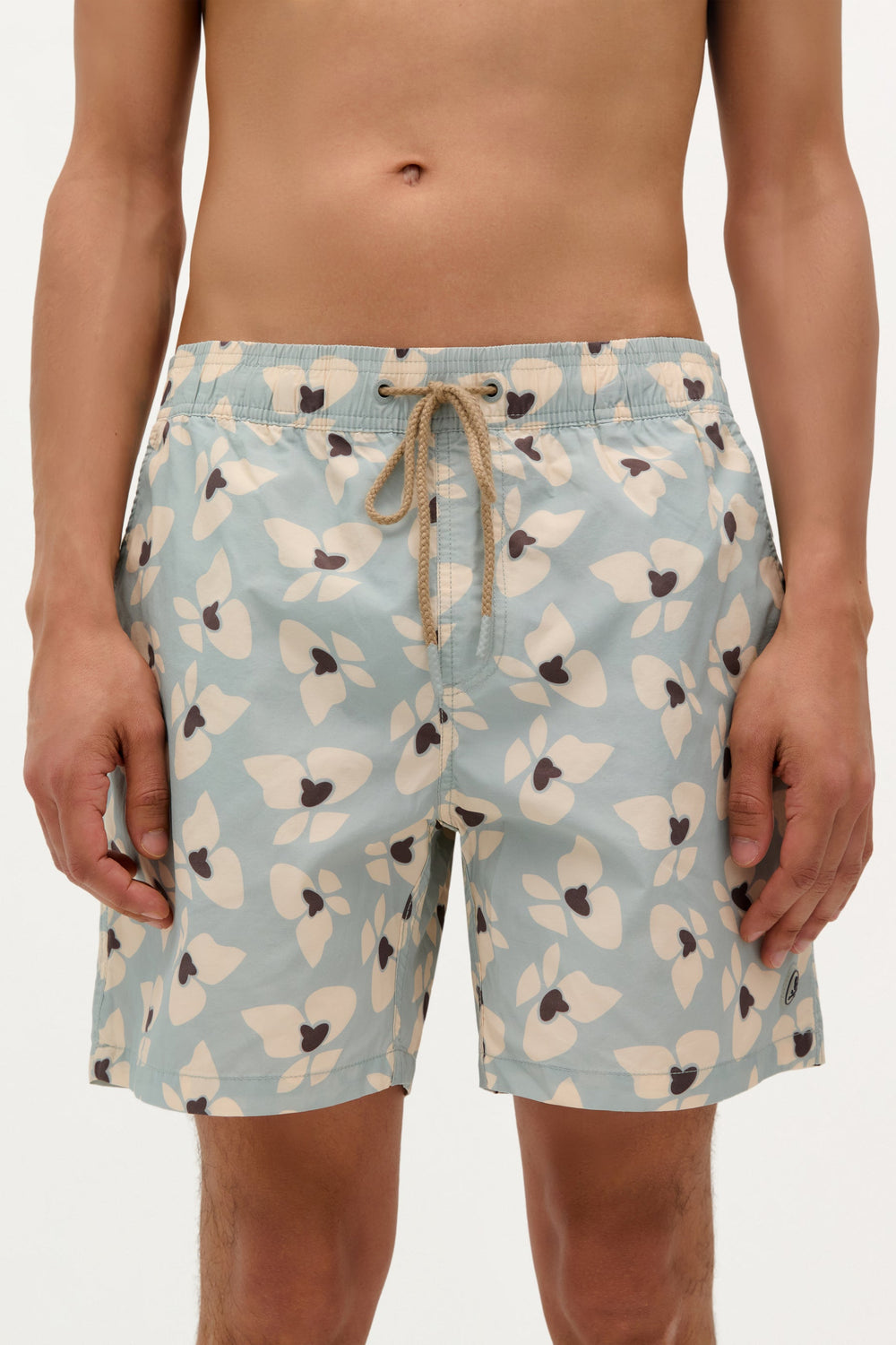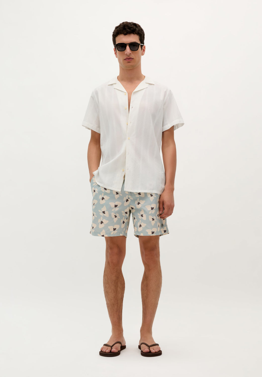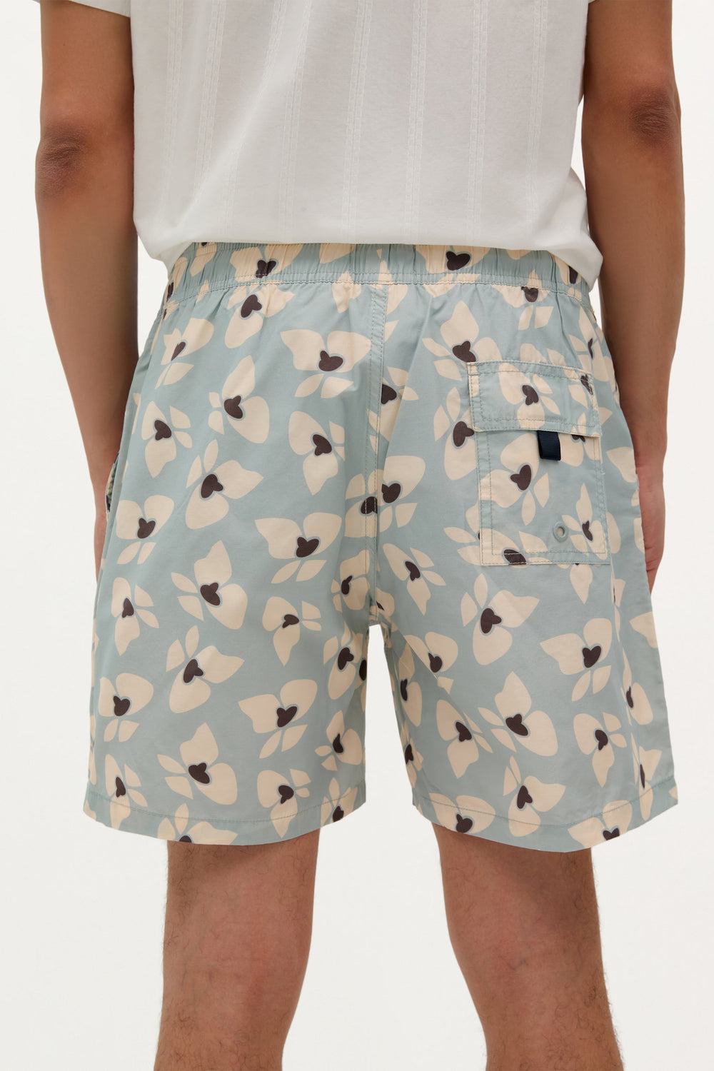 Swimming trunks made of technical fabric. Elasticated adjustable drawstring waistband. Side pockets and back patch pocket detail. Lined.