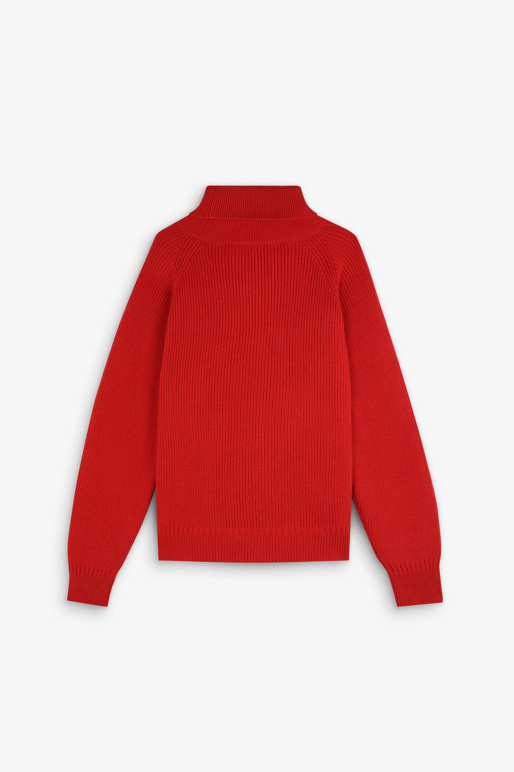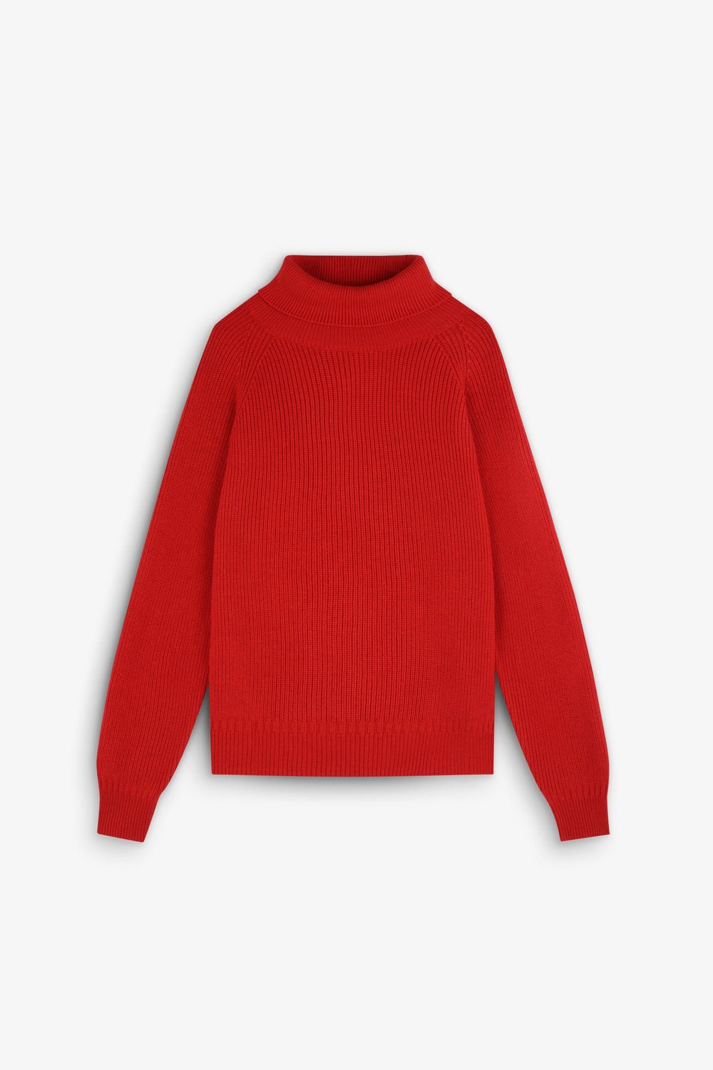 Ribbed sweater made of a wool blend. Regular fit, turn-up neck and raglan long sleeves.