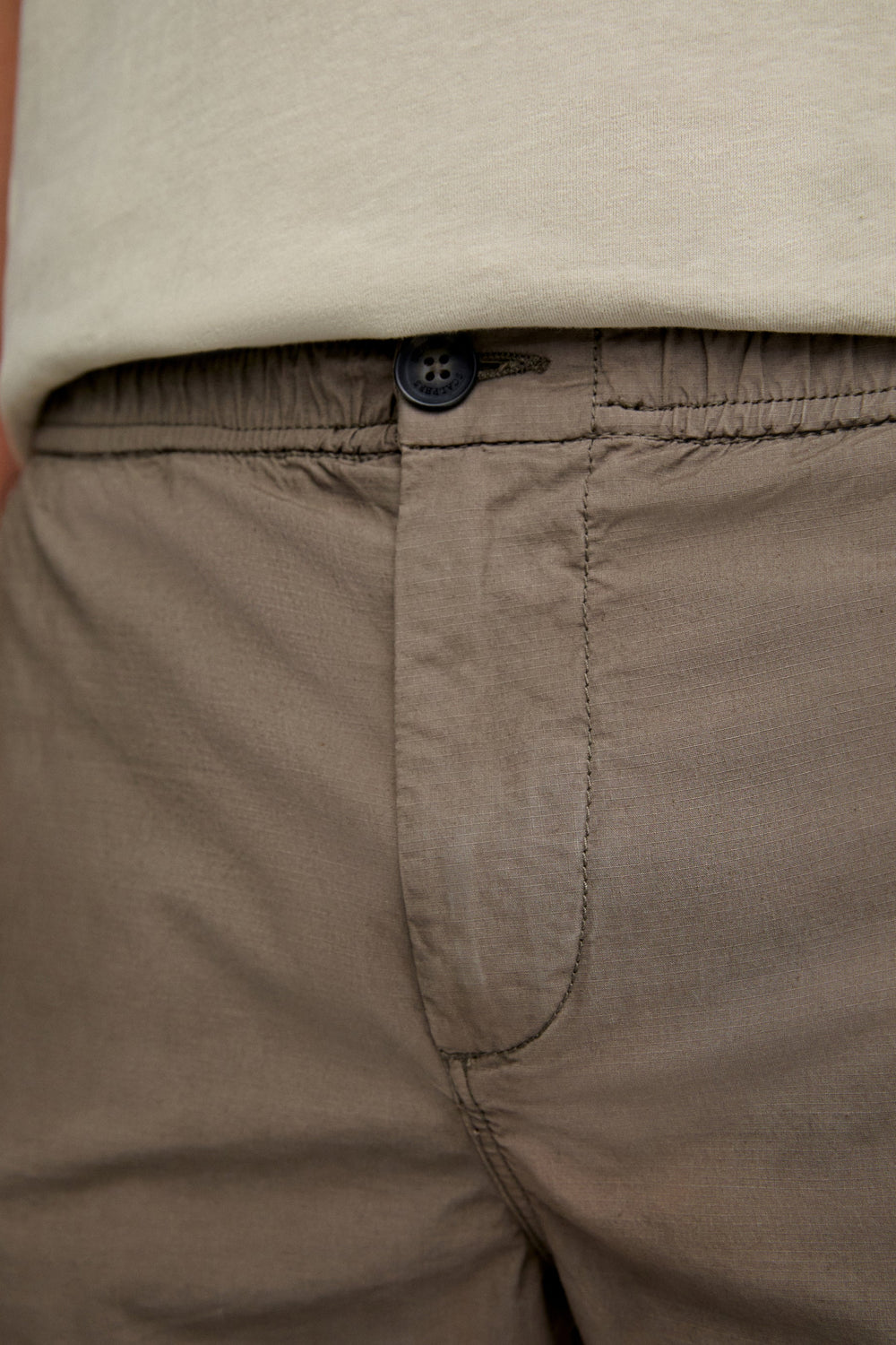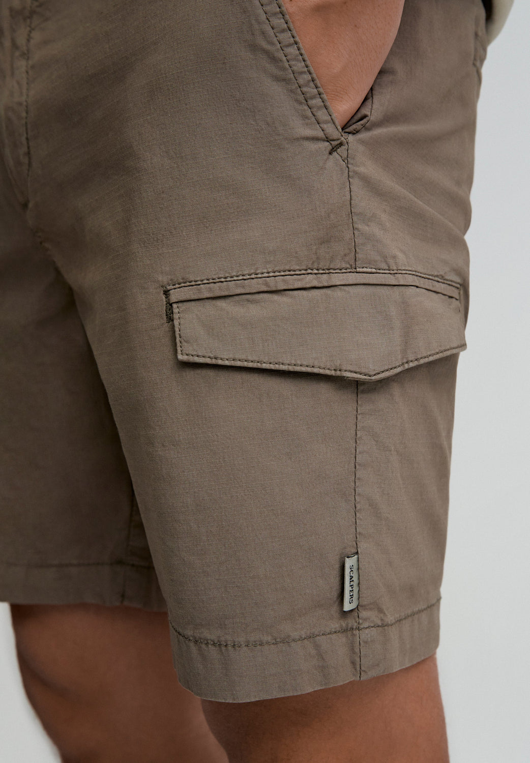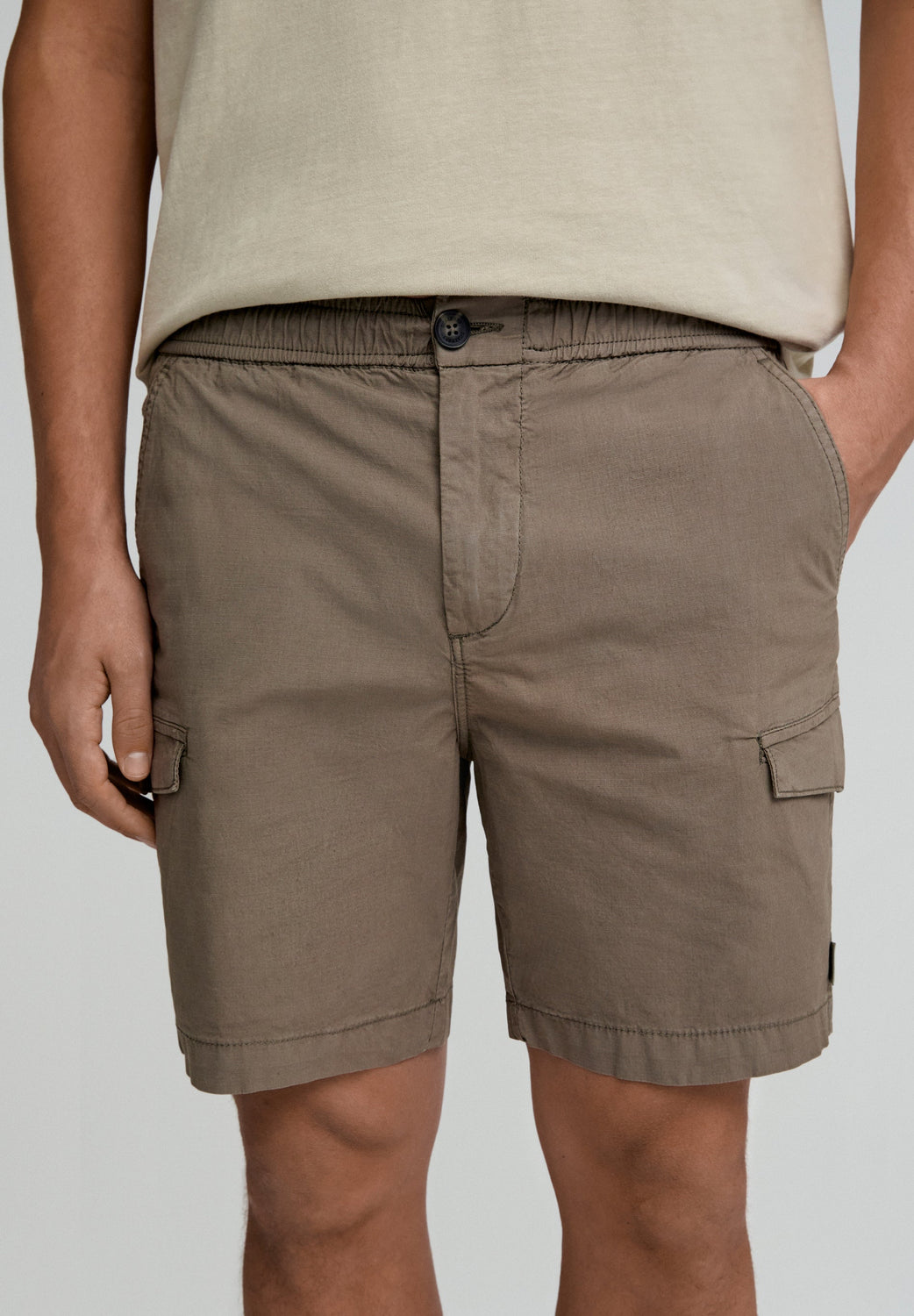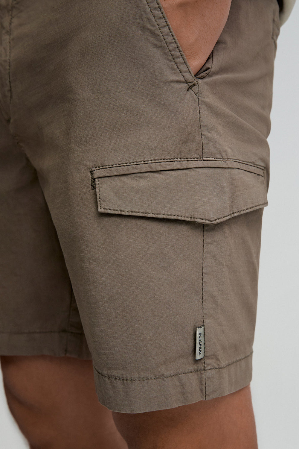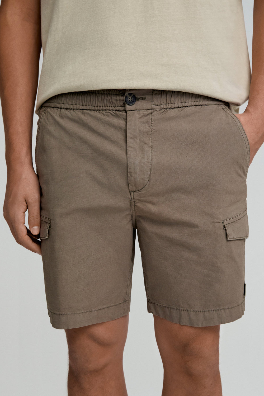 Bermuda cargo efecto lavado. Confeccionada en algodón orgánico. Corte Regular fit. Cierre con botón y cremallera. Bolsillos laterales. Bolsillos en pernera de parche con solapa y cierre con snaps. Bolsillos trasero de parche. Trabillas en cintura. Detalle de calavera bordada a tono.