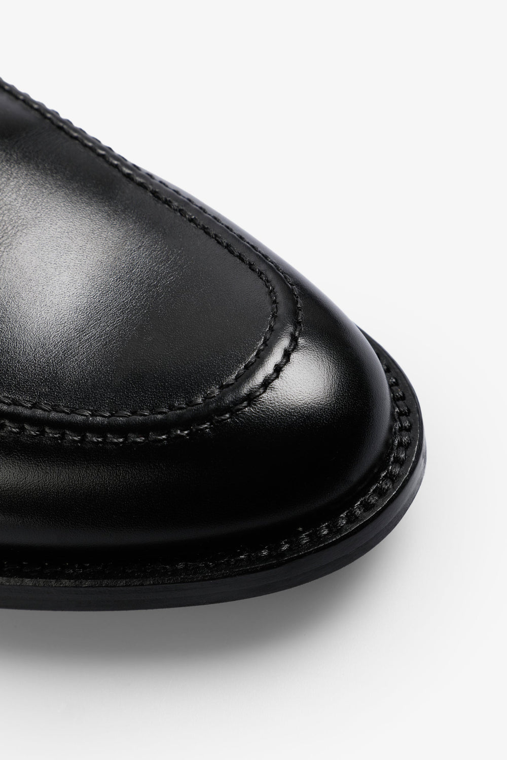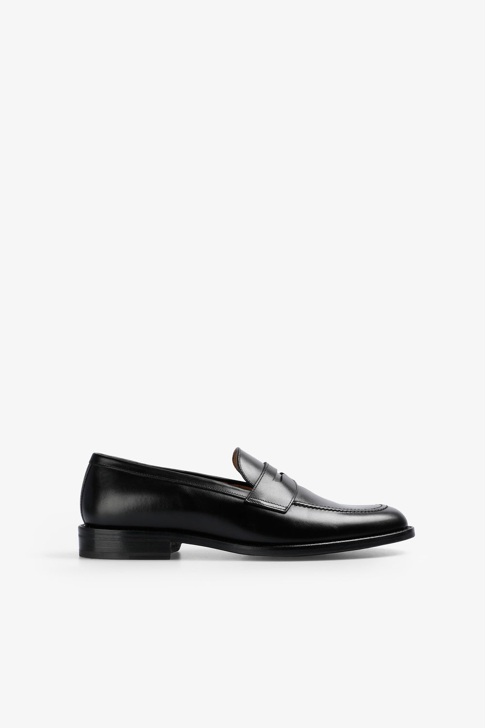 Formal loafers in black leather.Upper crafted from 100% high-quality leather with a polished finish. Leather insole. Rounded almond toe. Leather sole stitched to the upper.