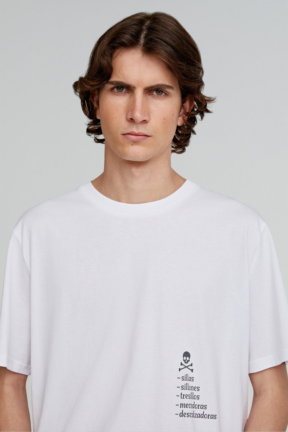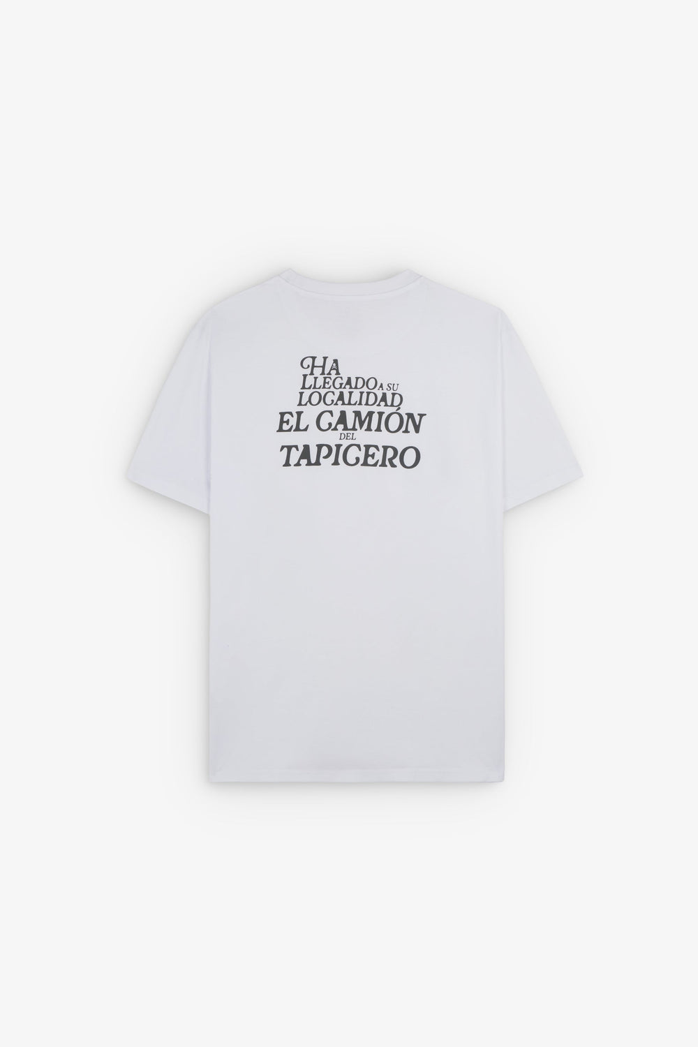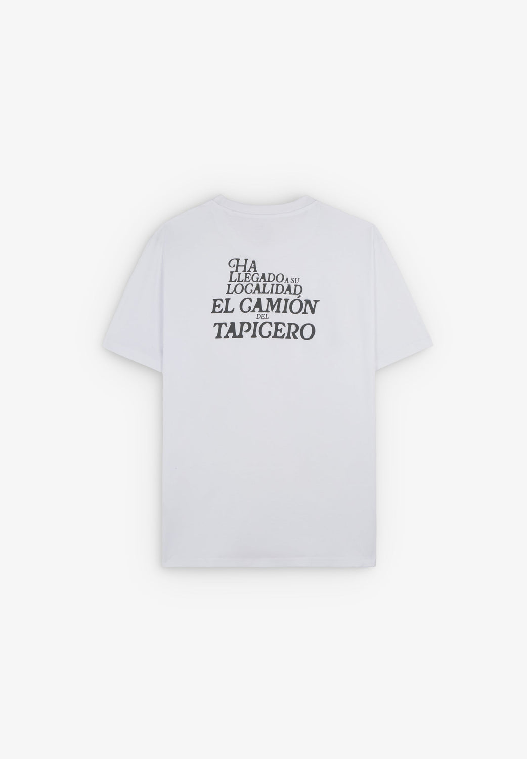 T-shirt with a back "Ha llegado a su localidad el camión del tapicero" print made of 100% cotton. Regular fit, round neck and short sleeves. Front print.