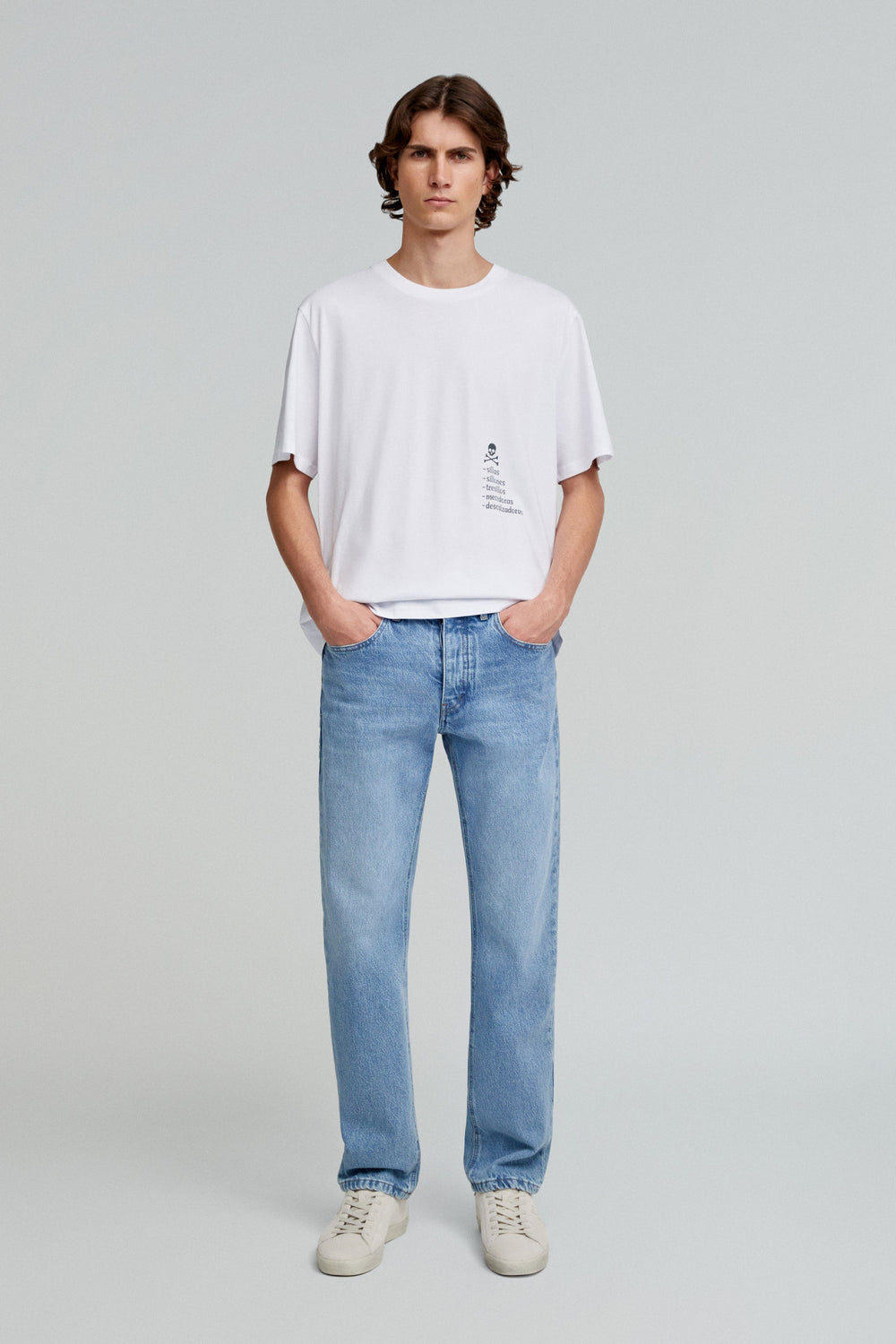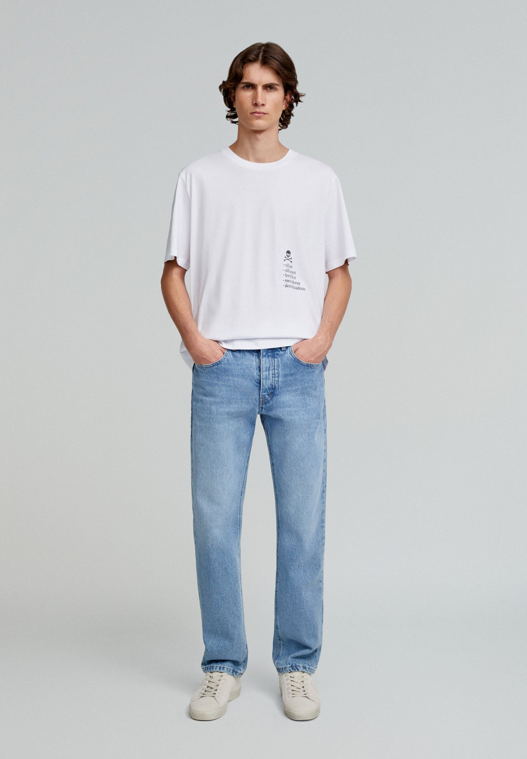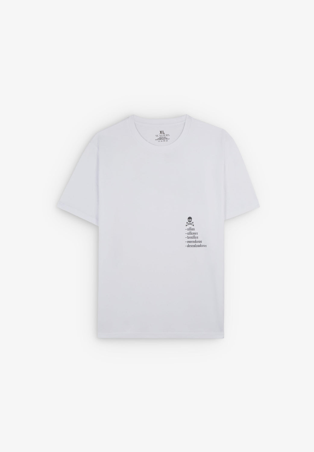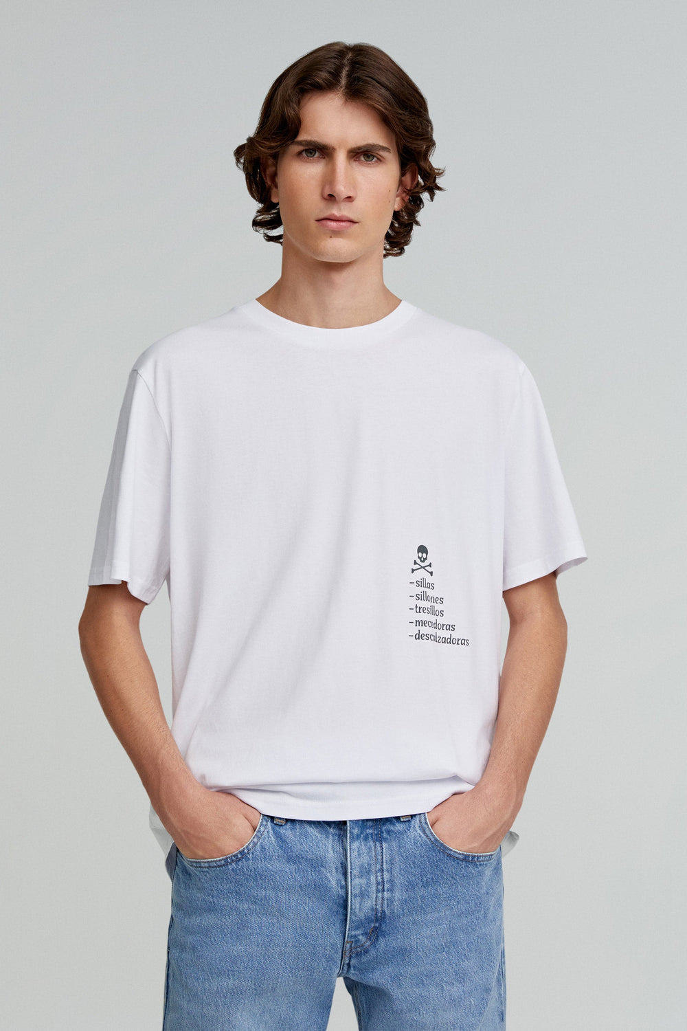 T-shirt with a back "Ha llegado a su localidad el camión del tapicero" print made of 100% cotton. Regular fit, round neck and short sleeves. Front print.