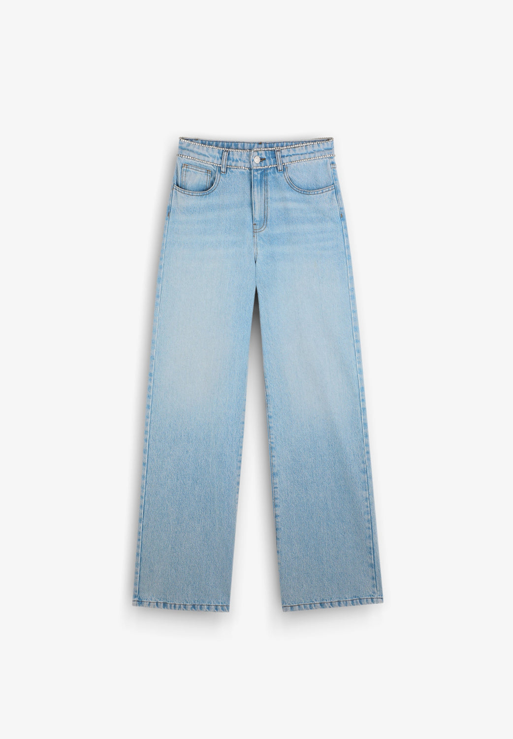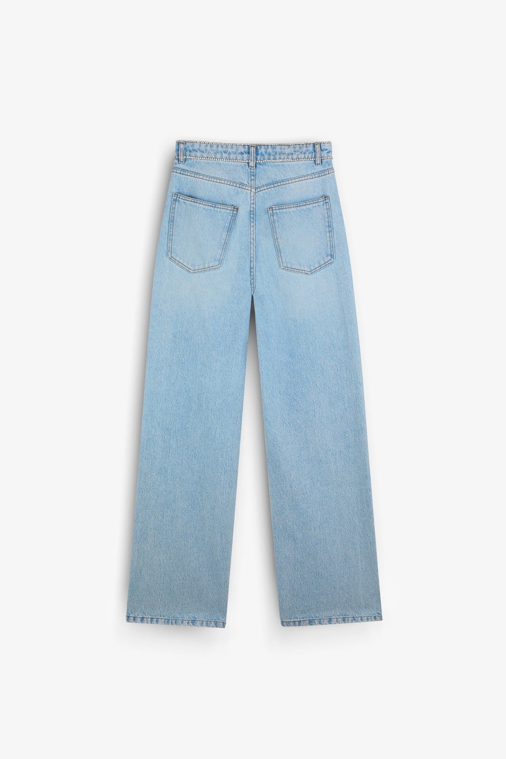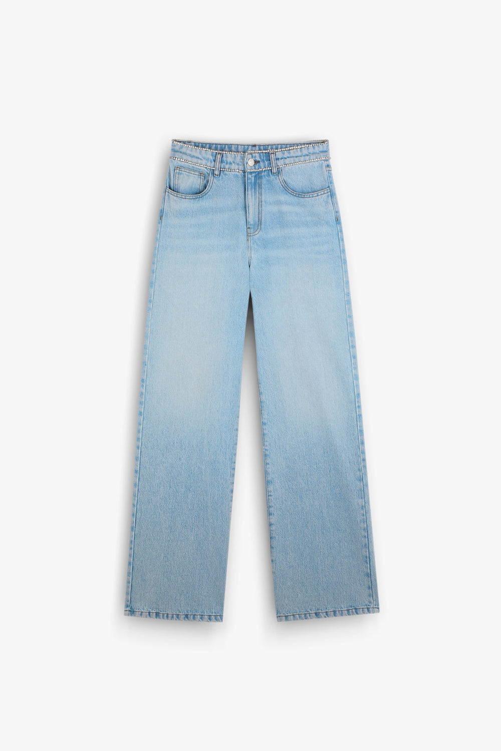 Jeans made of 100% cotton. Full length fit, button and zip fly fastening. Front and back pockets and belt loops. Crystal details at the waist.