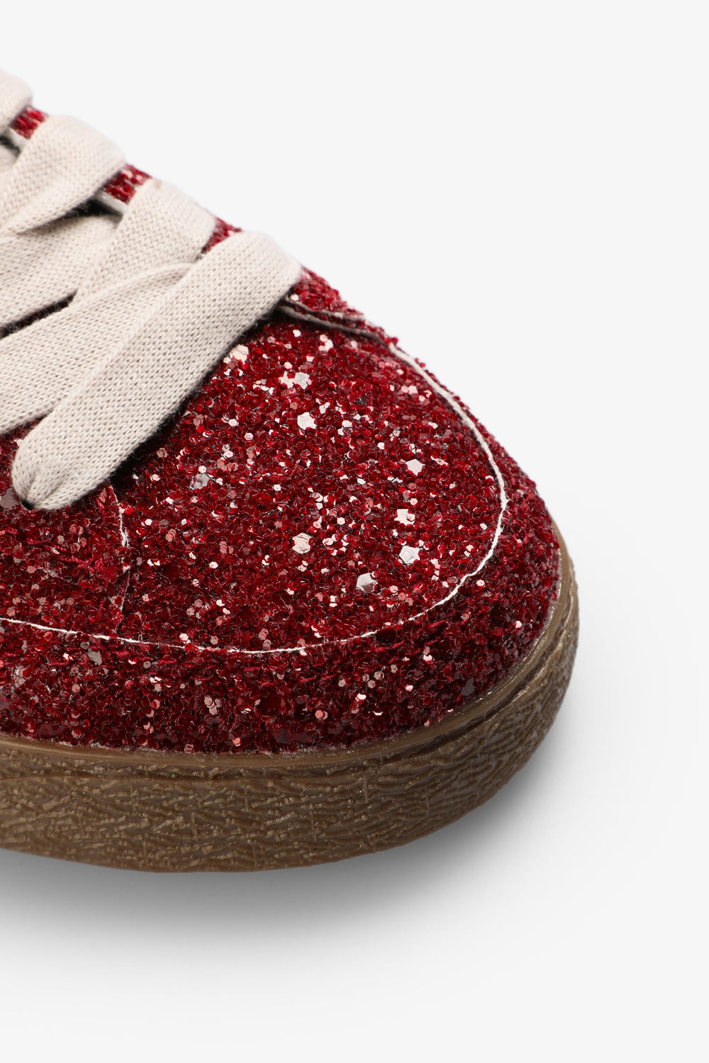 Glitter sneakers made of 100% leather. Lace-up fastening, rubber soles and contrast skull.