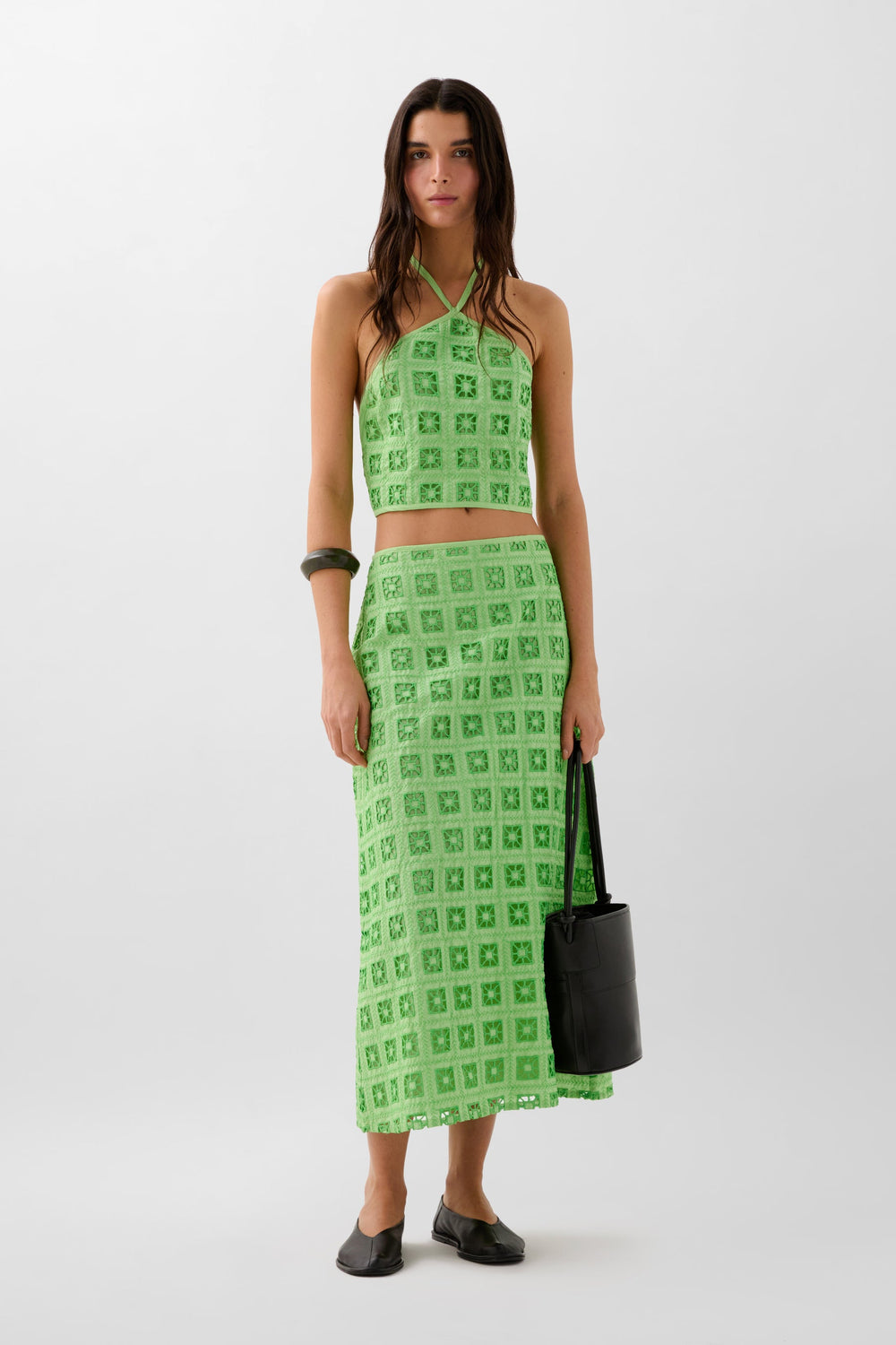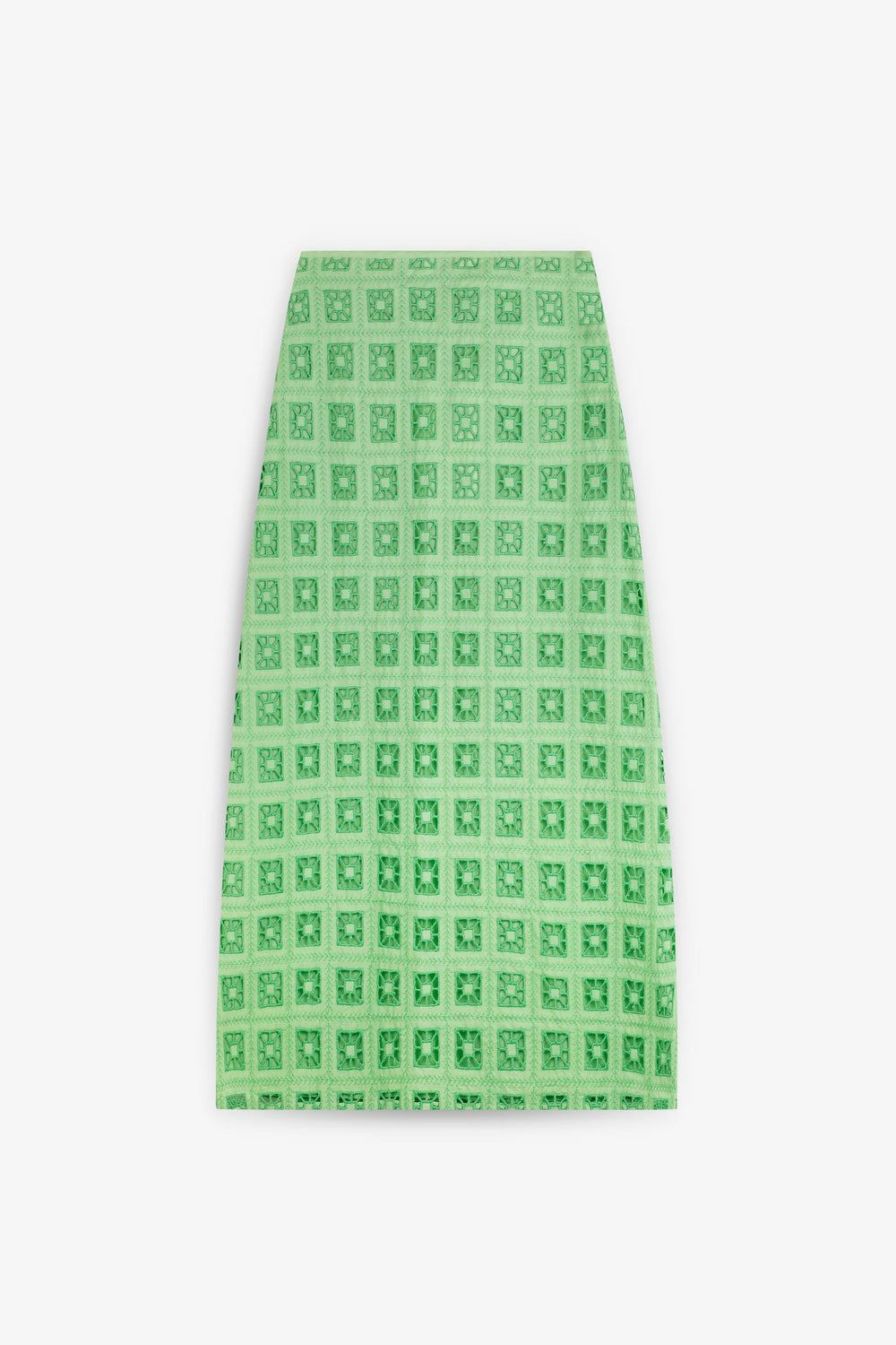 Skirt made of 100% cotton with embroidery. Midi fit with concealed zip fastening.