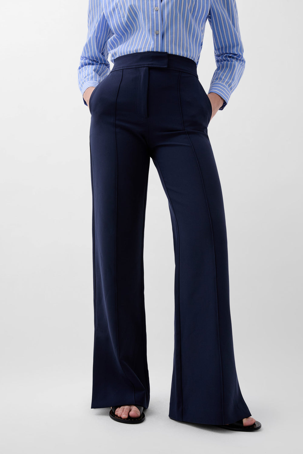Culottes with seam detail. Made of slightly stretchy flowing fabric. Regular fit with high waist. Expandable zip and hook fastening. Side slant pockets. Piped back pockets.