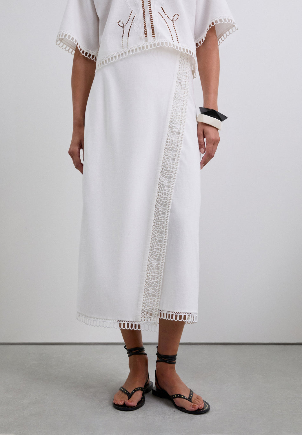 Sarong style skirt with lace details. Made of a cotton and linen blend. Regular fit. Side zip.