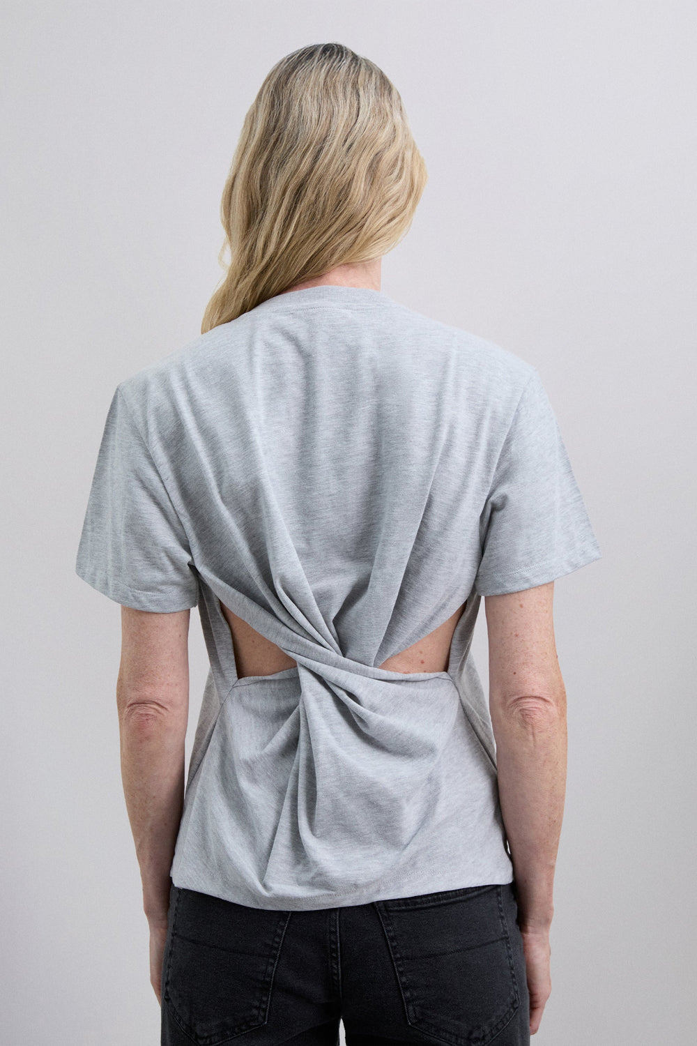 T-shirt made of 100% cotton. Regular fit, round neck and short sleeves. Back knot detail and slits.