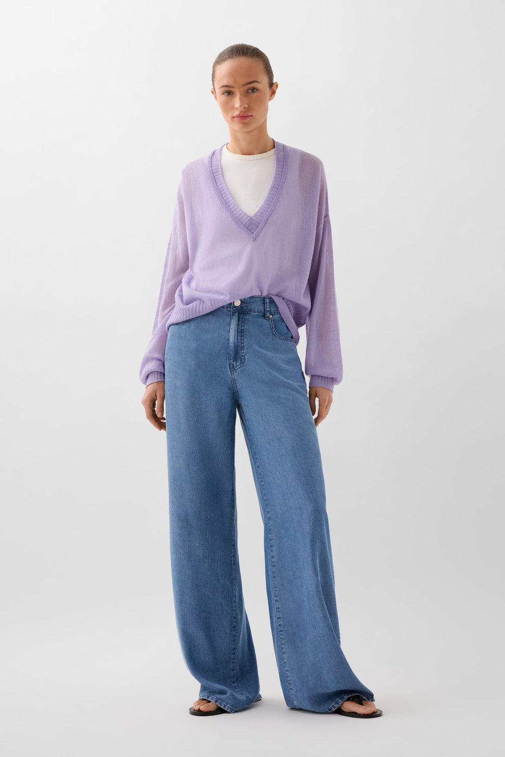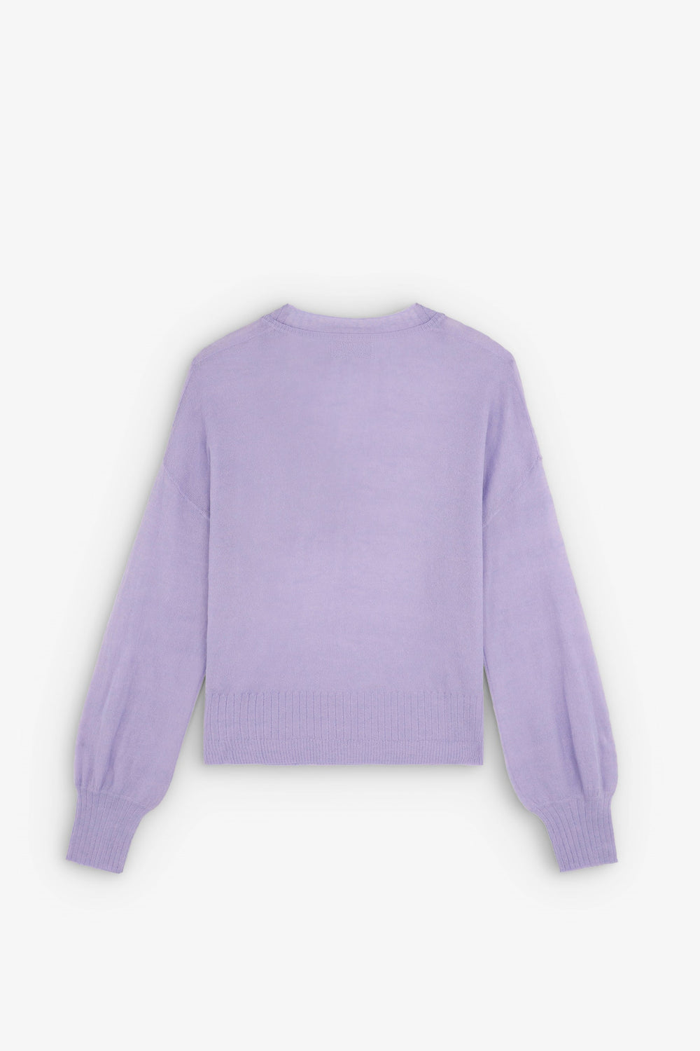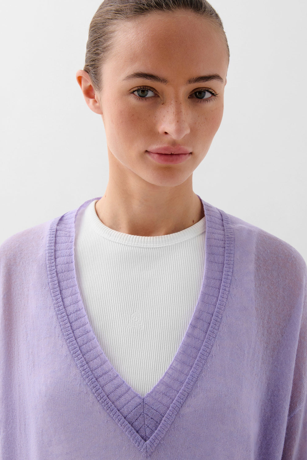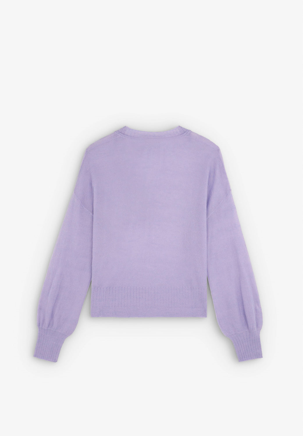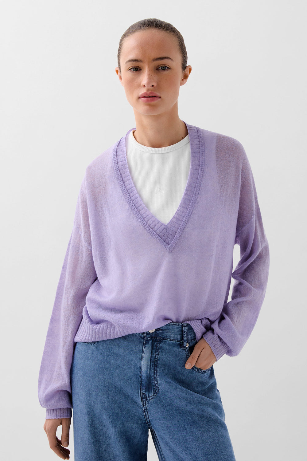 Sweater with detailing on the neckline. Made of a wool blend. Regular fit. V-neck. Long sleeves with ribbed trim.