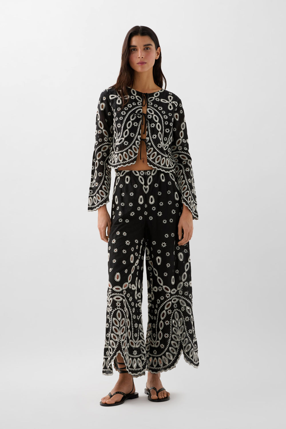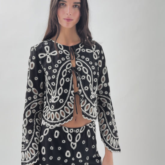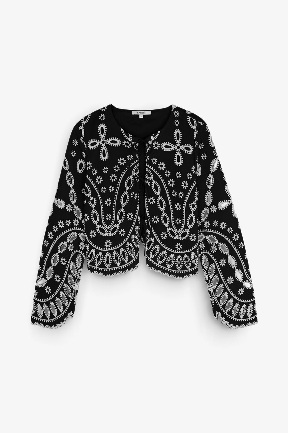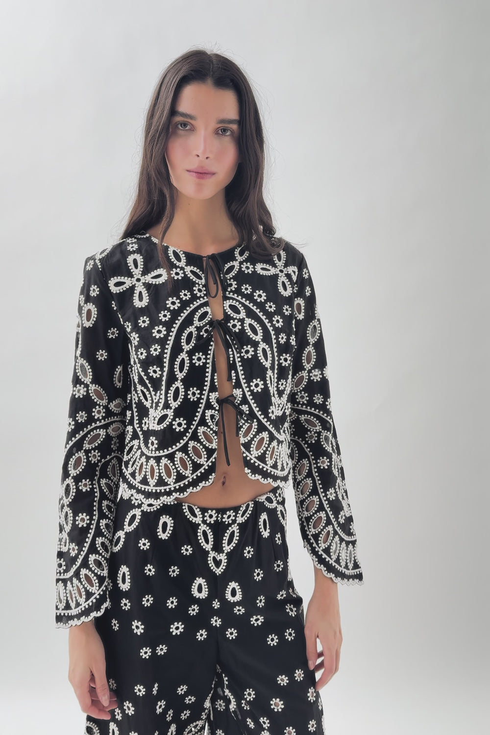 Shirt made of 100% cotton with contrast embroidery. Regular fit, round neck and long slightly flared sleeves. Fastens at front with ties.