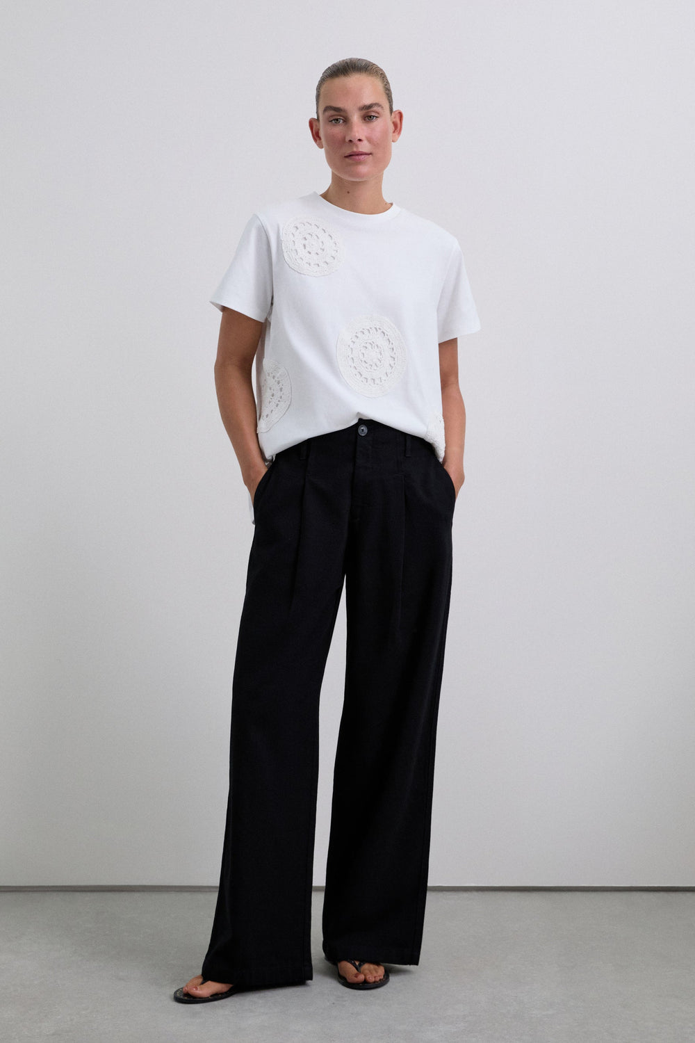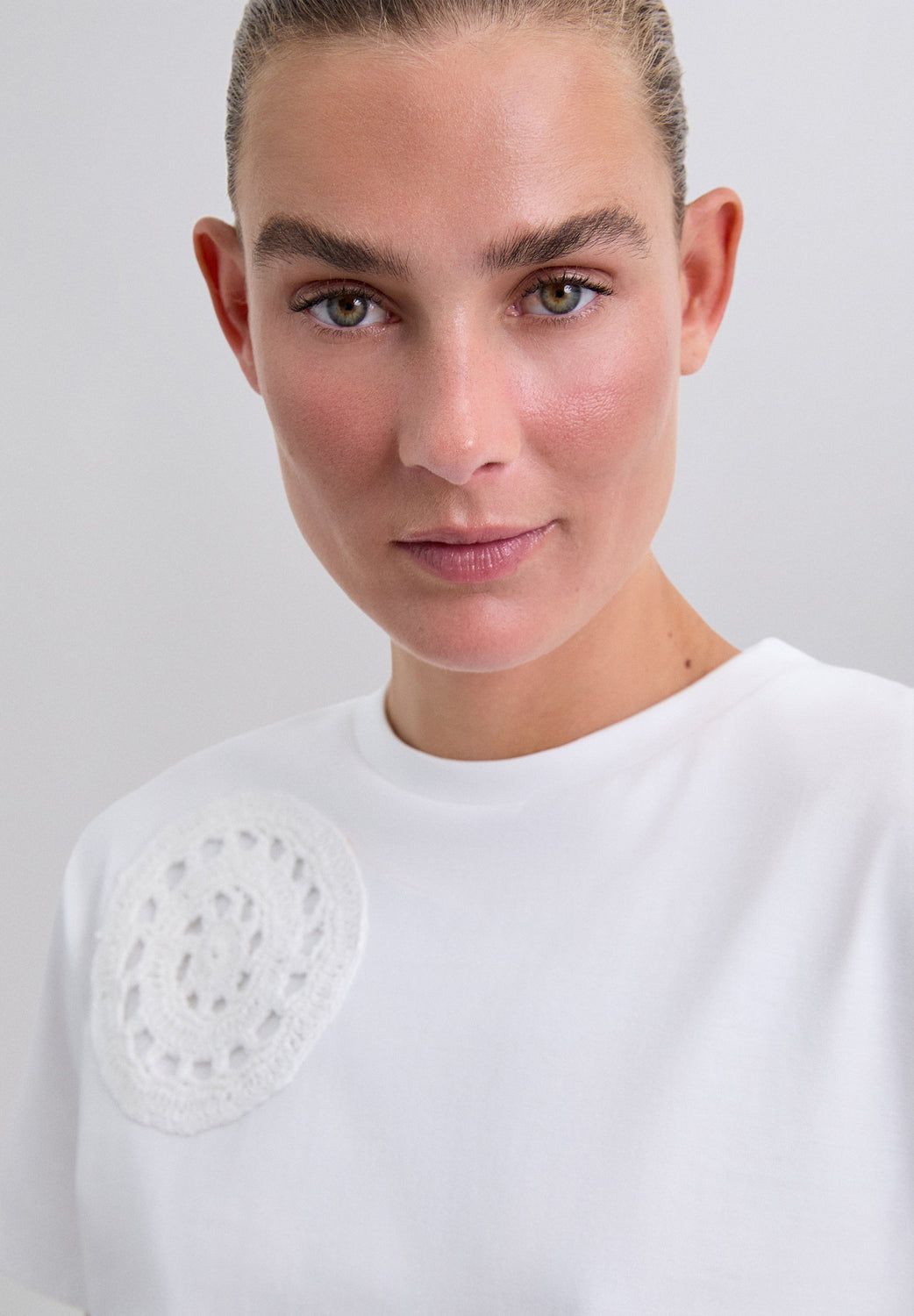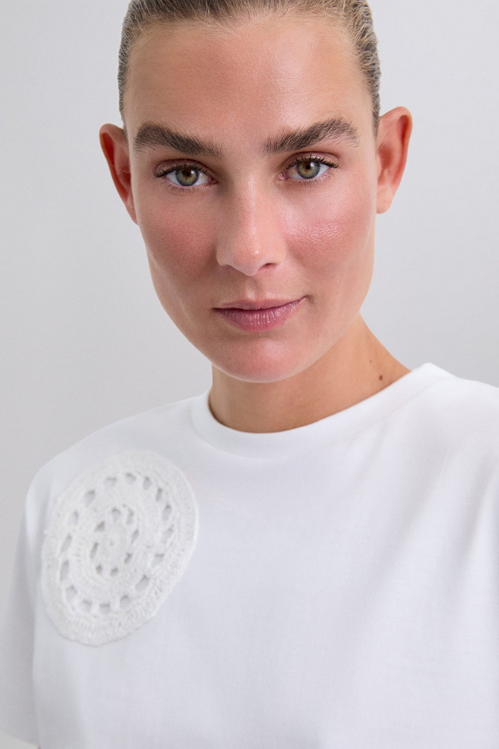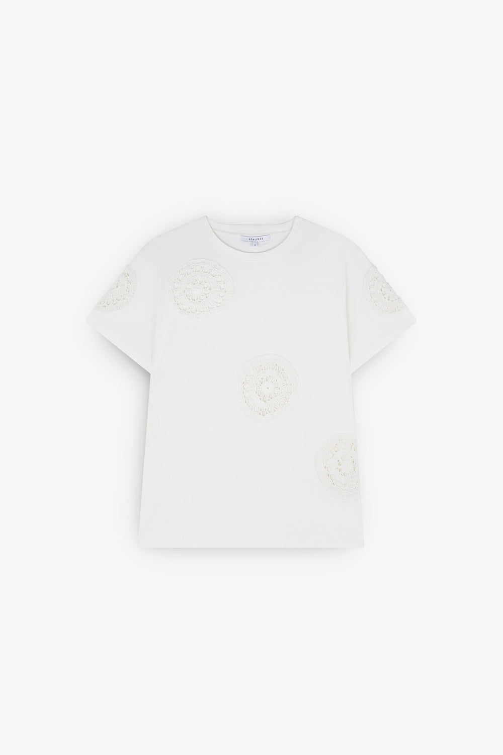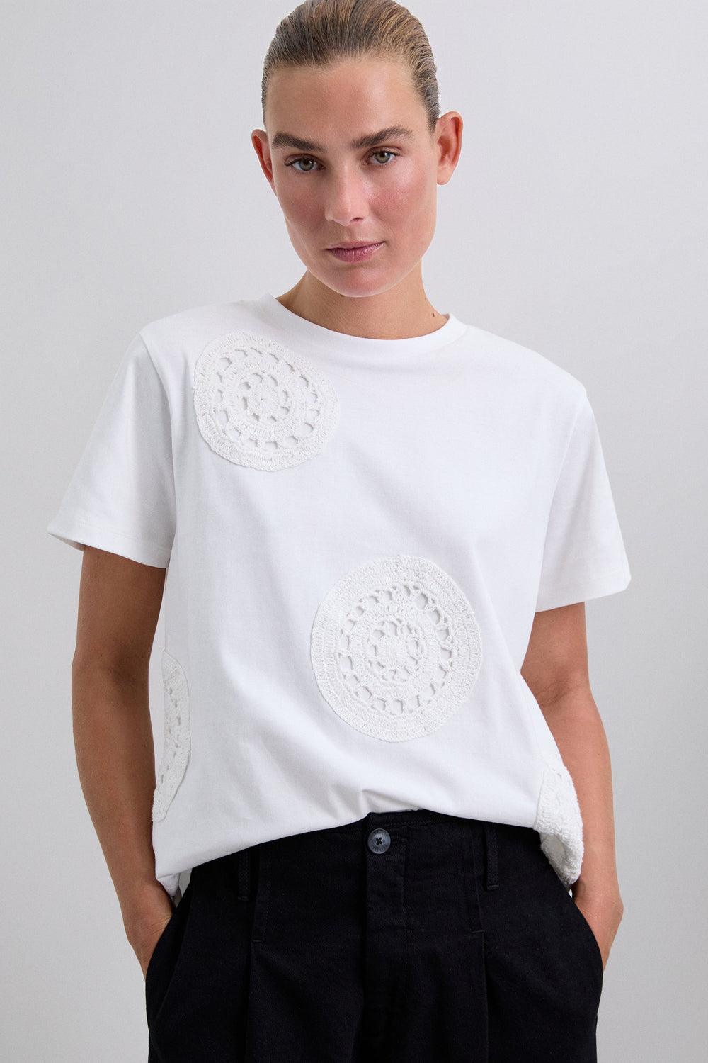 T-shirt made of 100% cotton with embroidered crochet details. Regular fit, round neck and short sleeves.