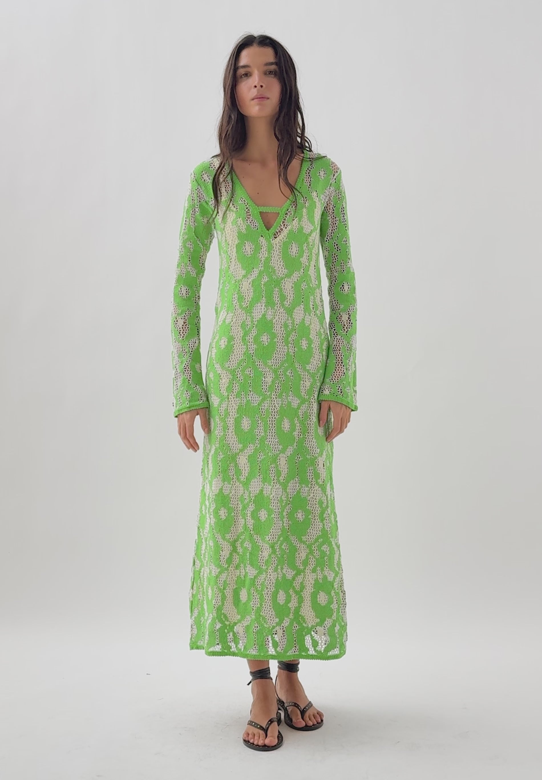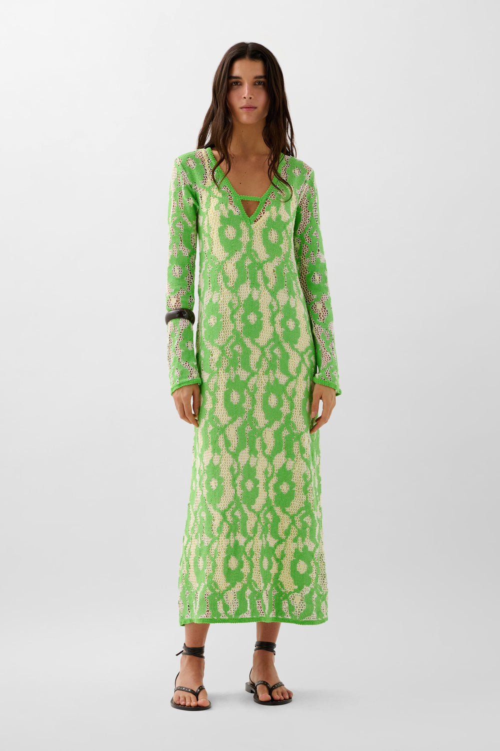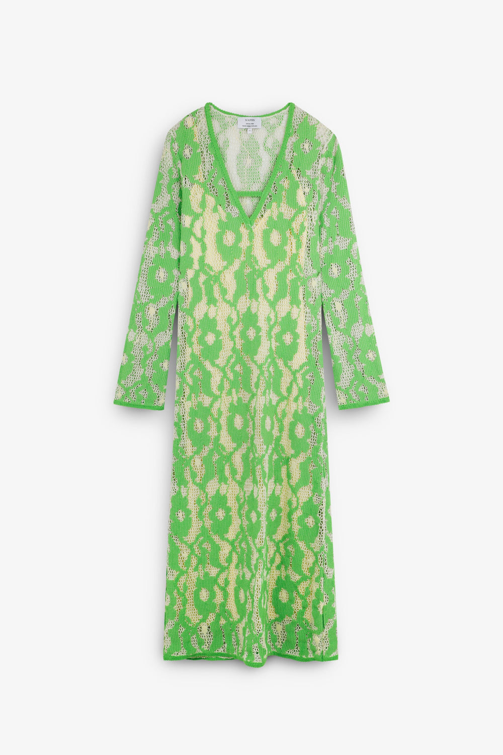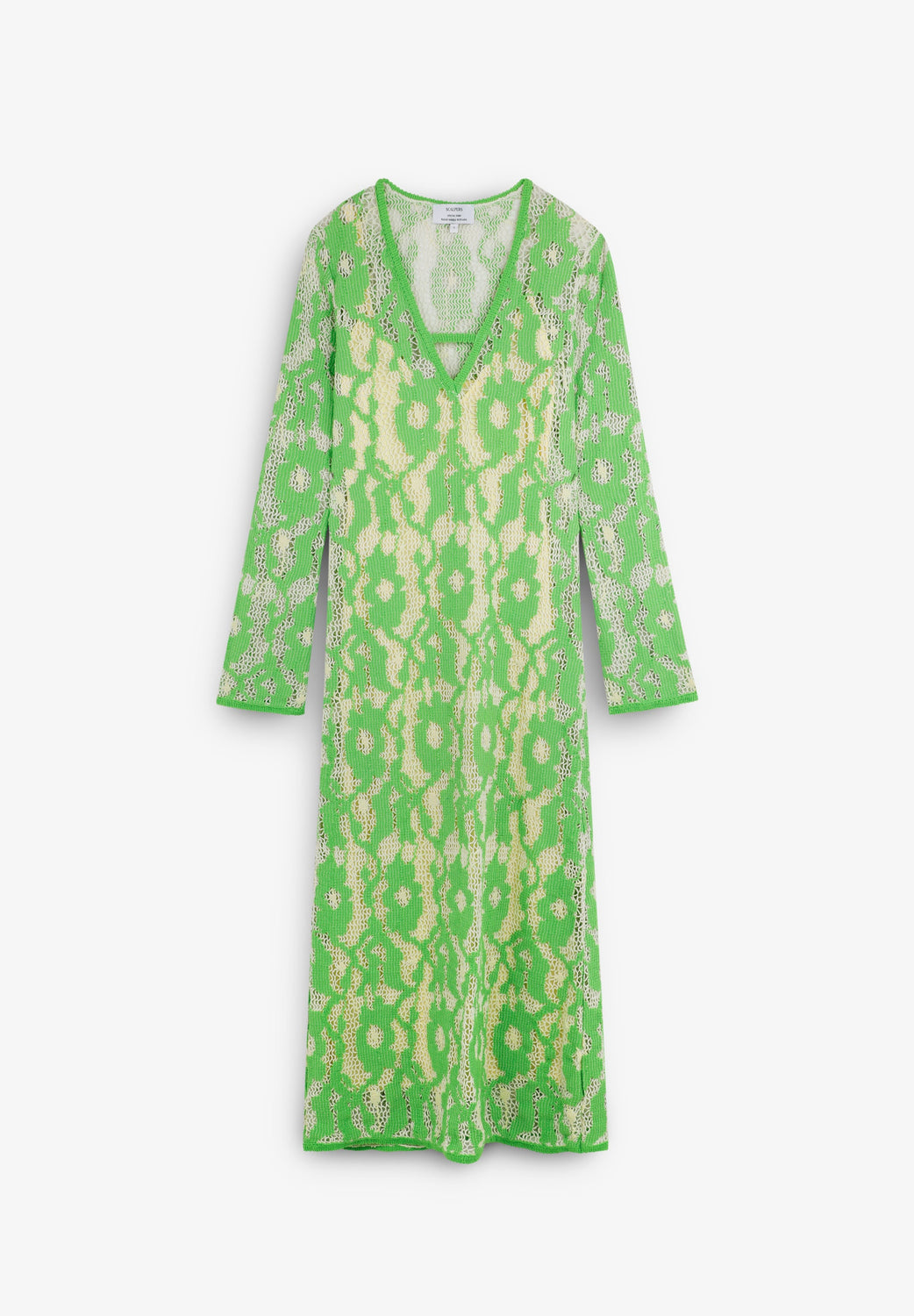 Dress made of a slightly stretchy cotton blend. Regular fit, midi cut with long sleeves and V-neckline detail. With removable inner lining.